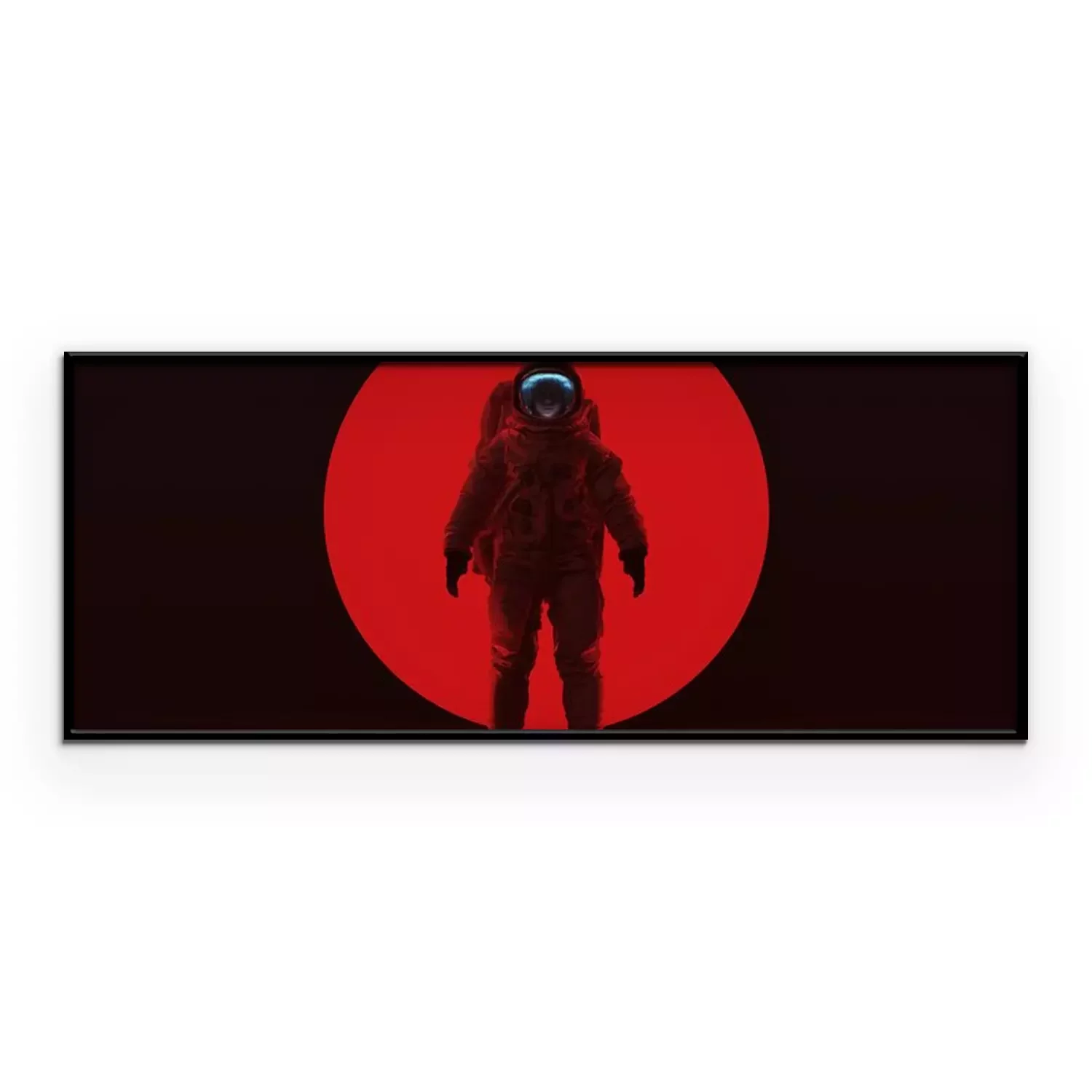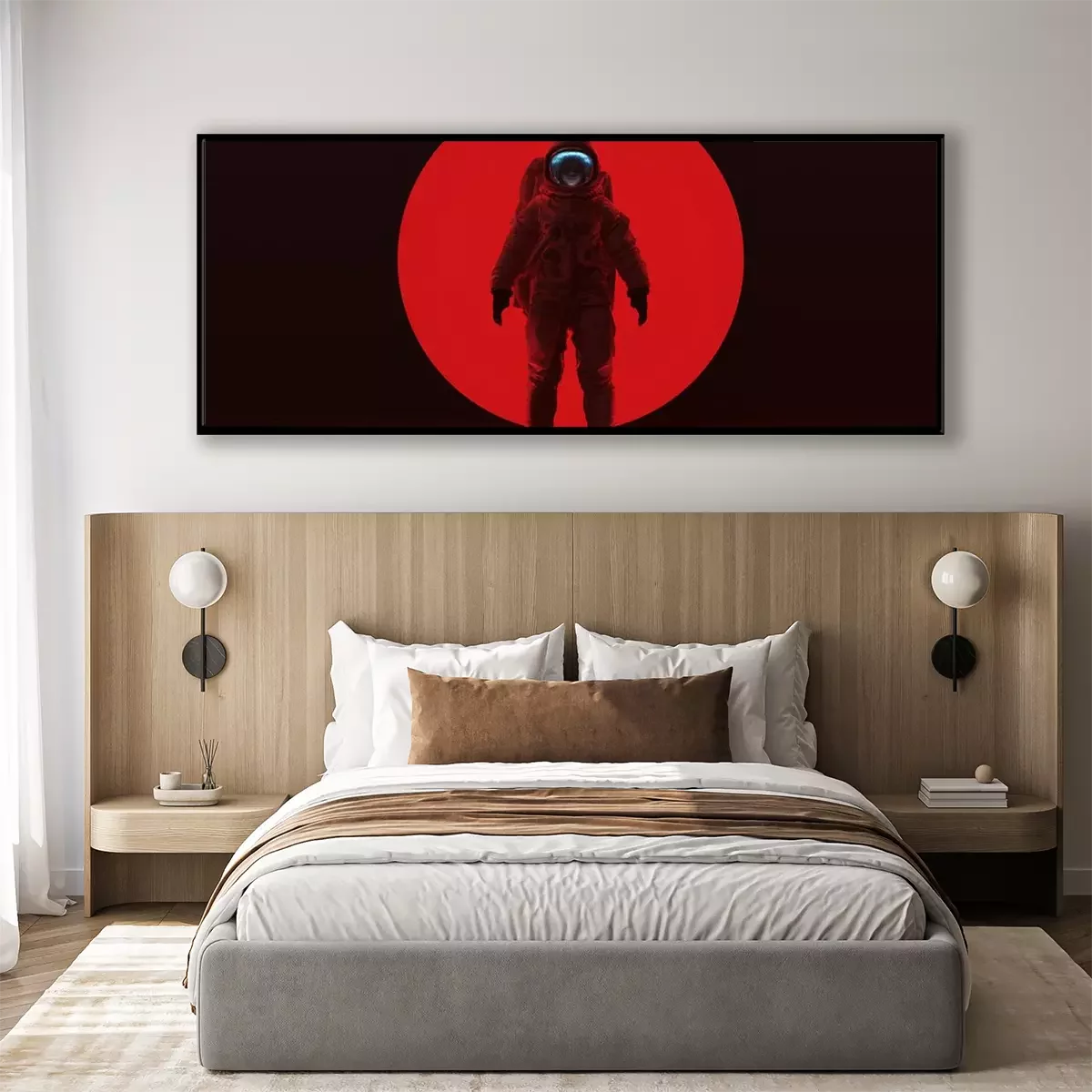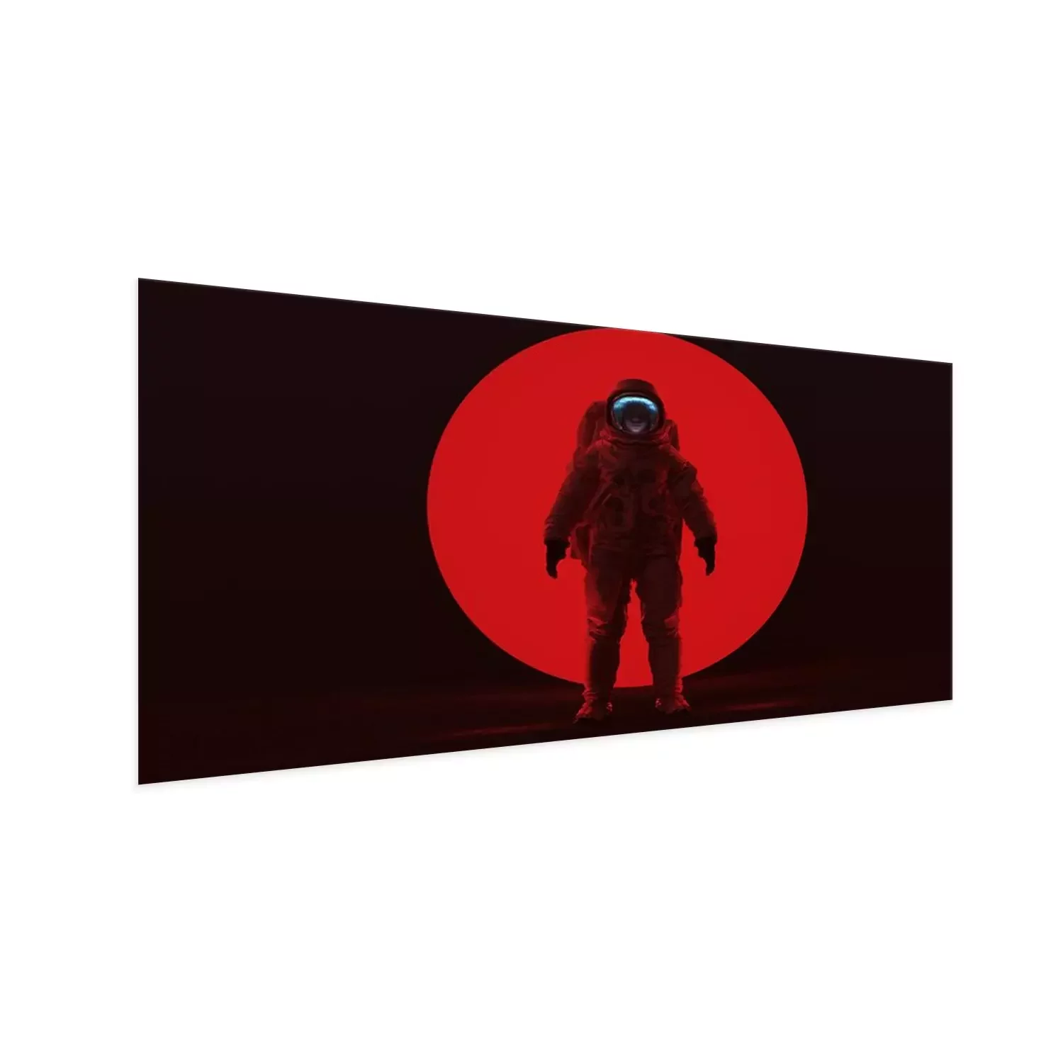 Astronaut in einem roten Anzug, umgeben von Lichtern