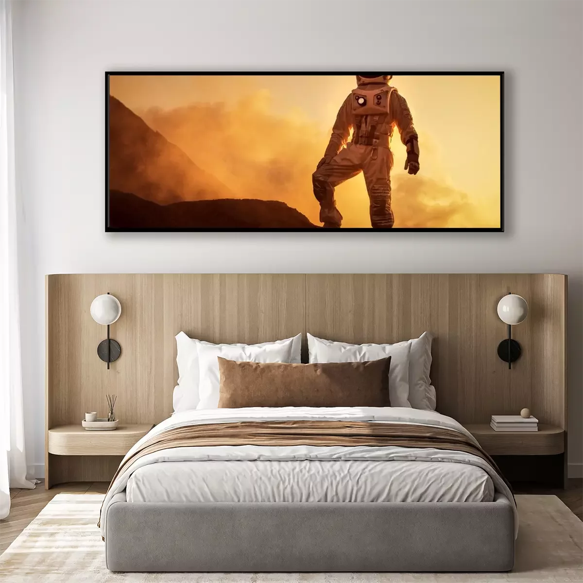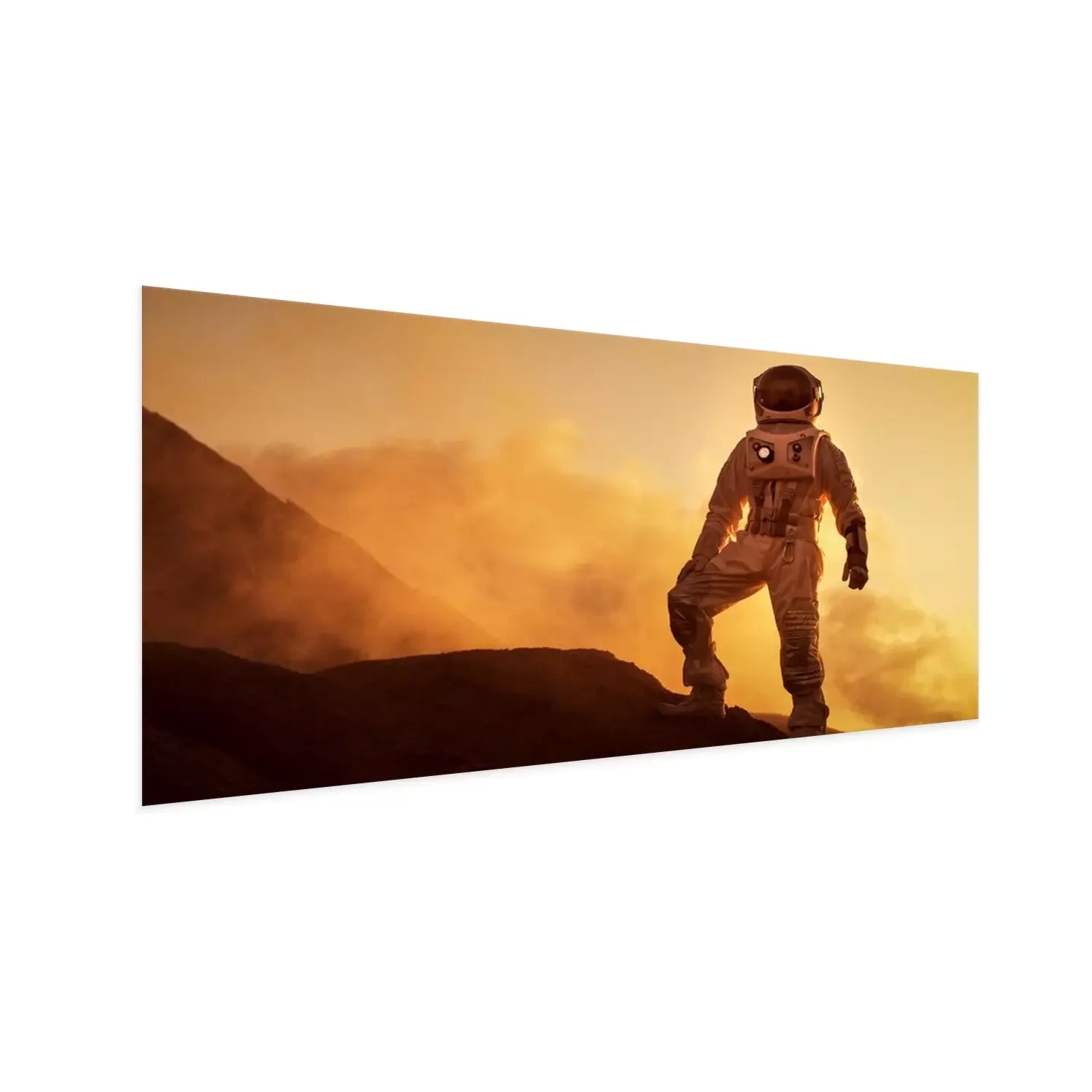 Poster: Astronaut, der einen unbekannten Planeten durchquert