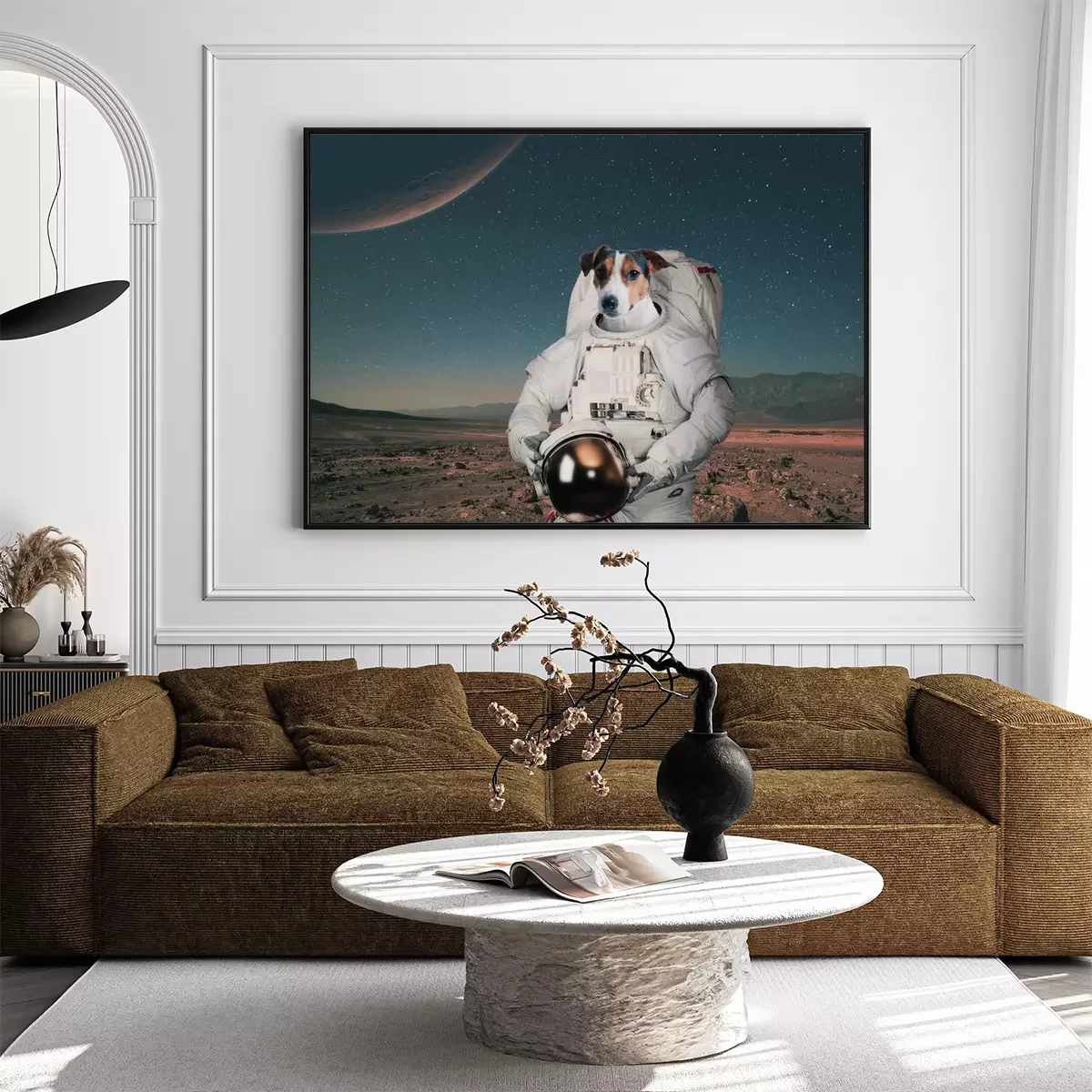 Poster: Astronautenhund auf einem unbekannten Planeten