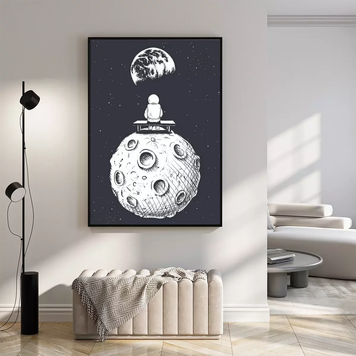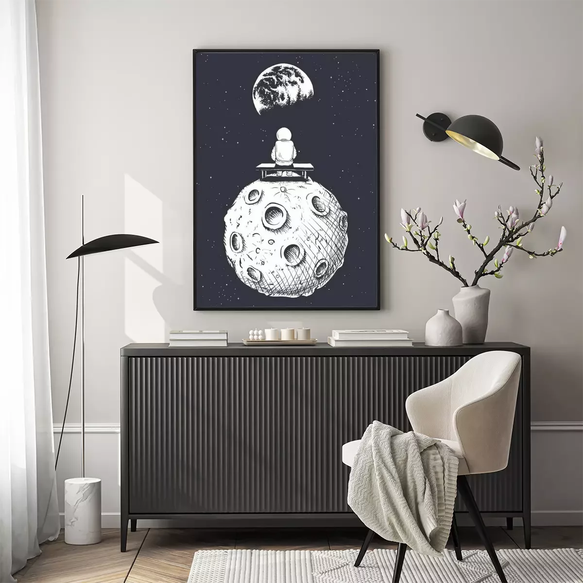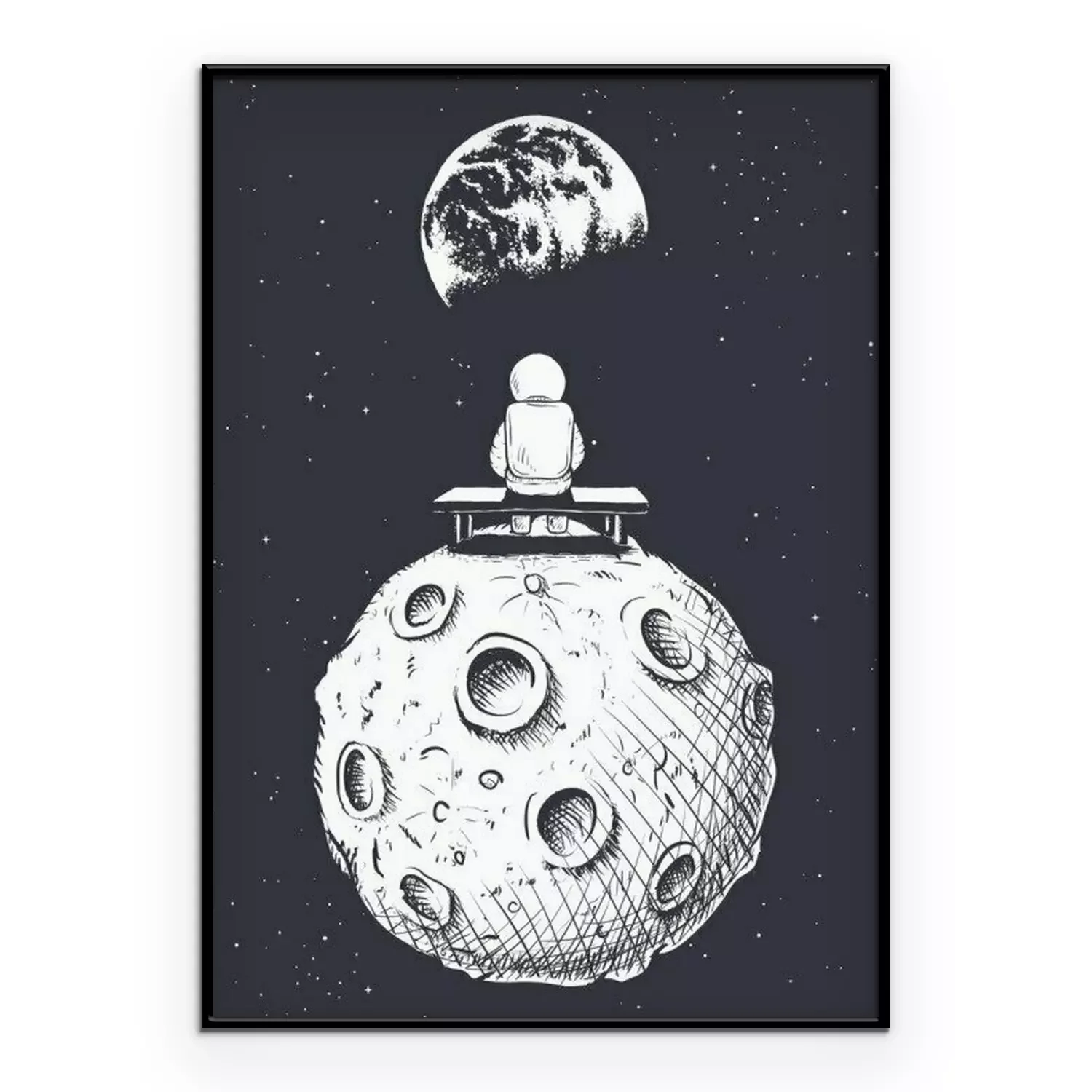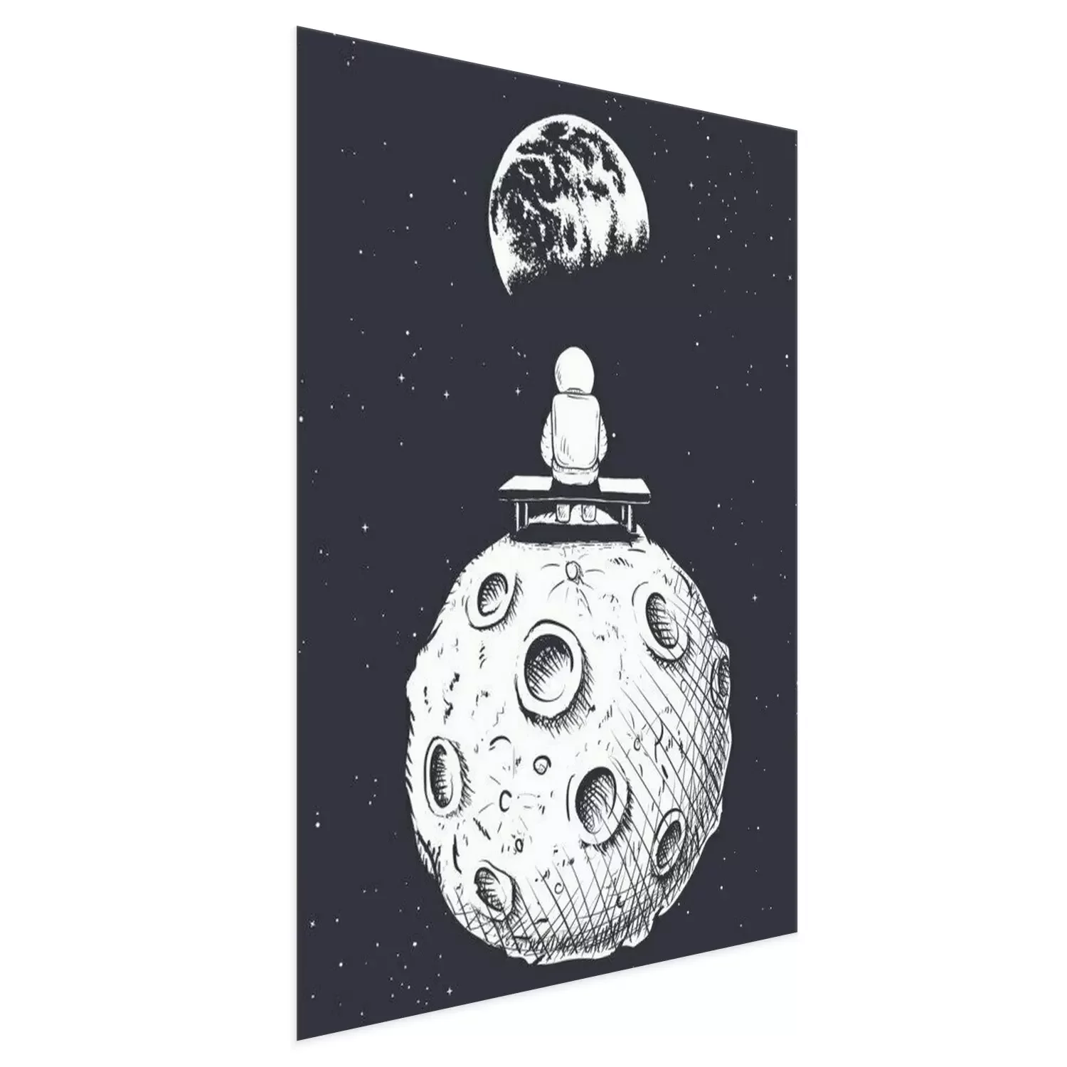 Poster: Auf dem Mond sitzender Kosmonaut und die Erde