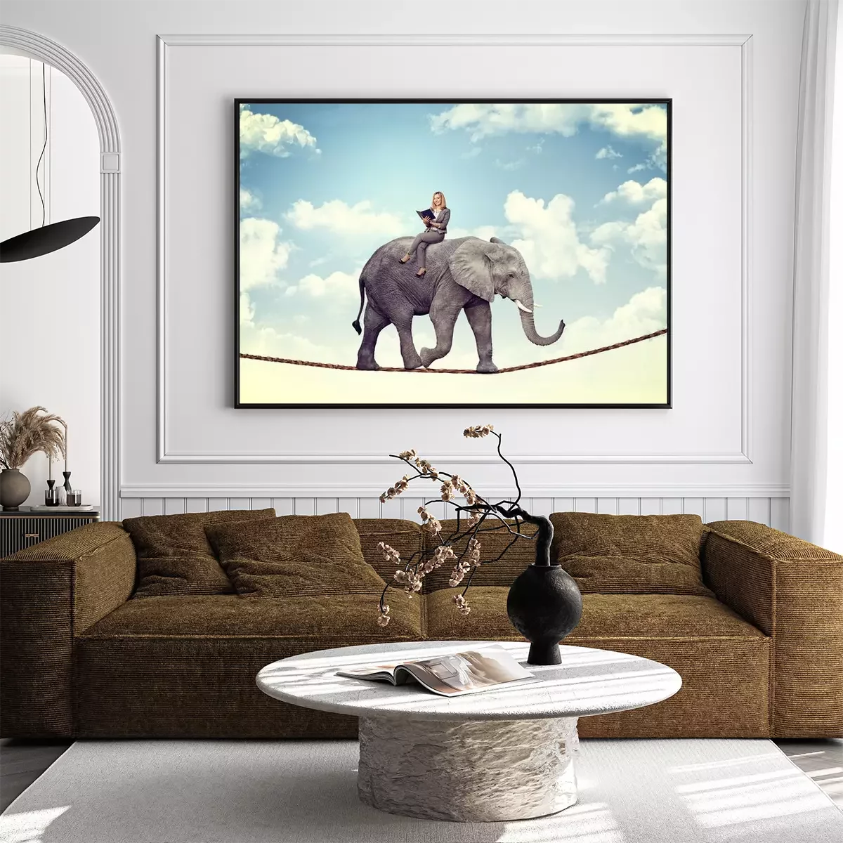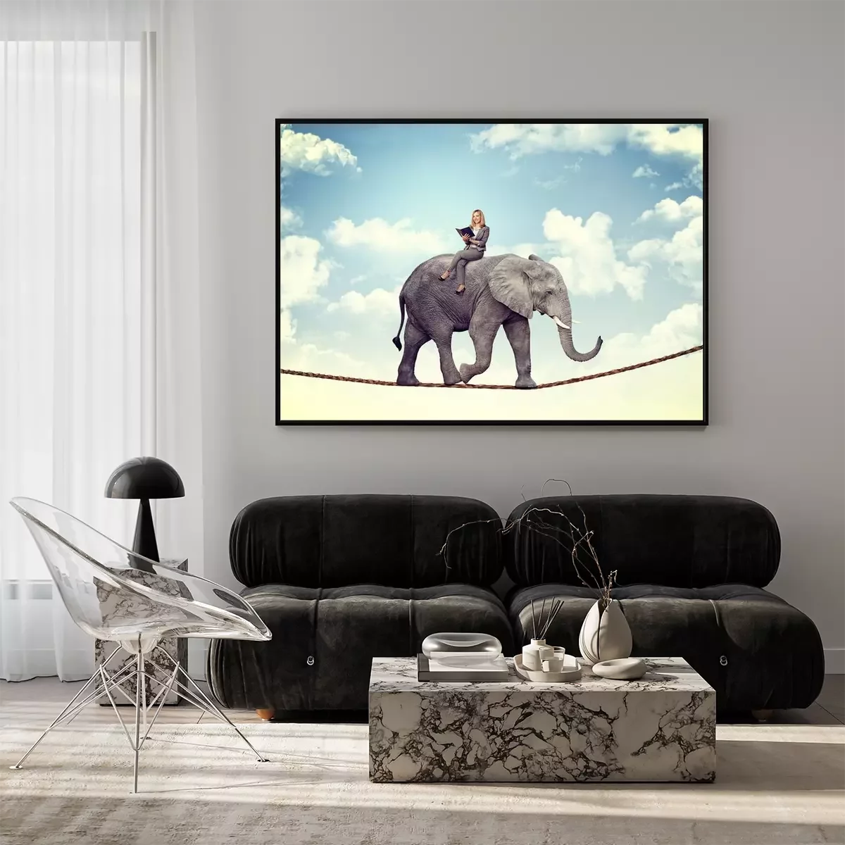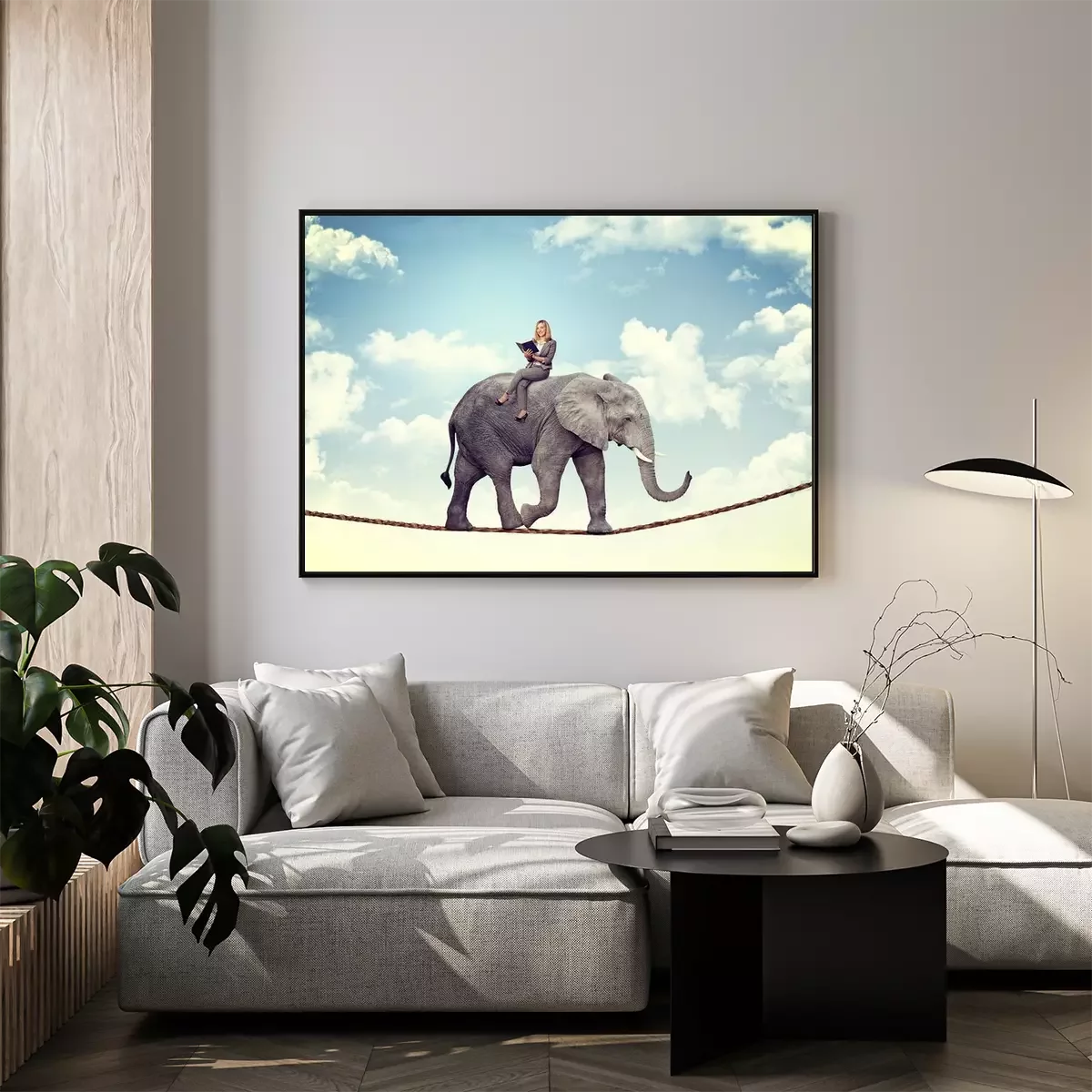 Poster: Auf einem Seil balancierender Elefant