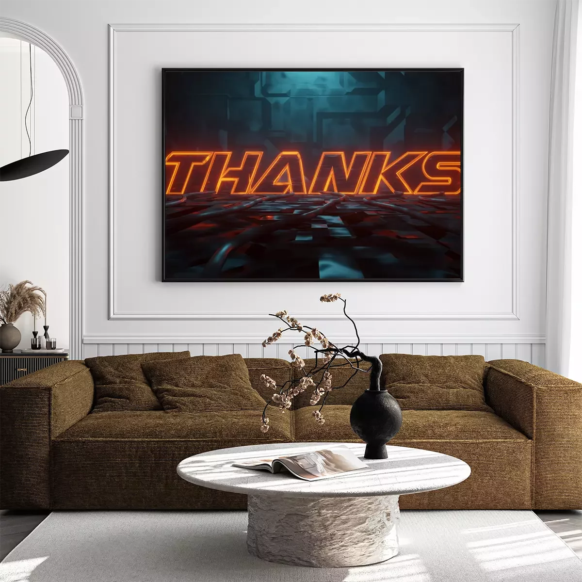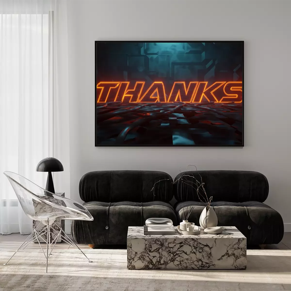 Poster Aufschrift Thanks im Cyberpunk-Stil