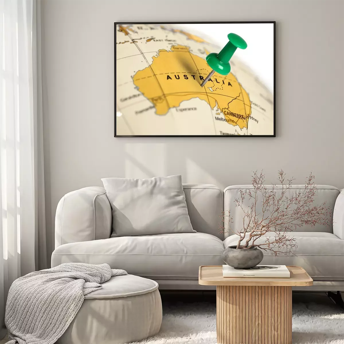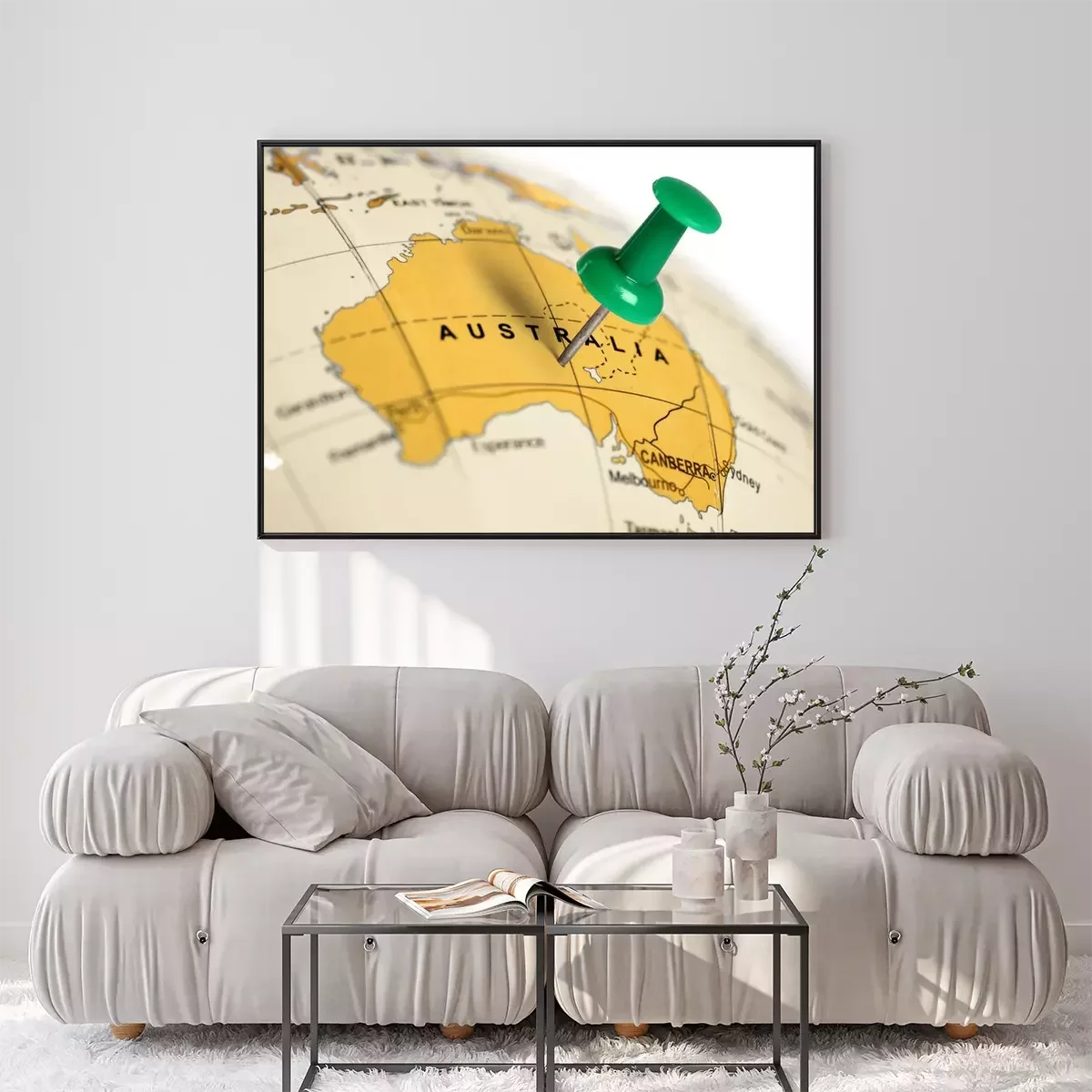 Poster Australien Karte Stecknadel auf dem Globus markiert