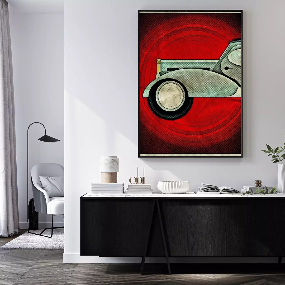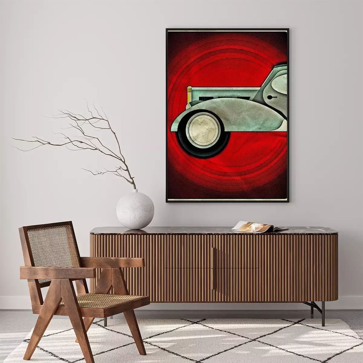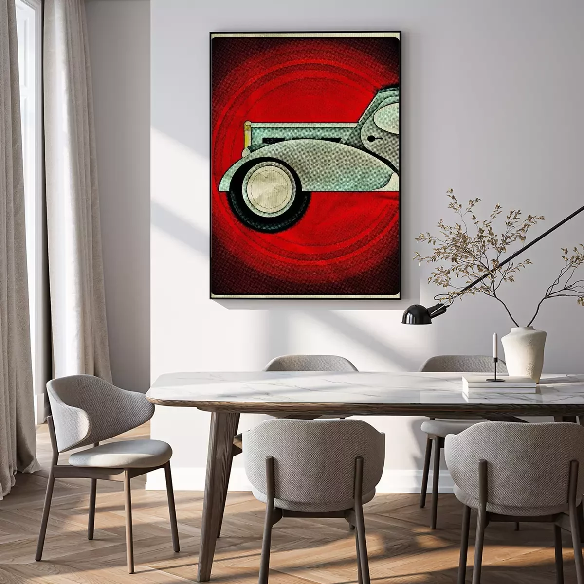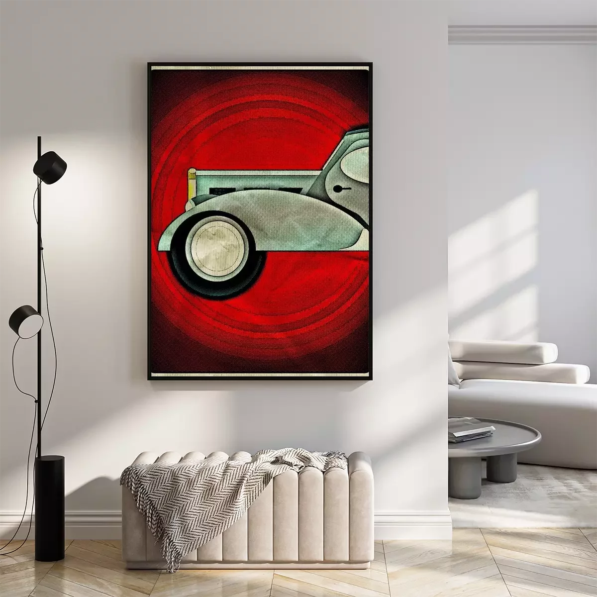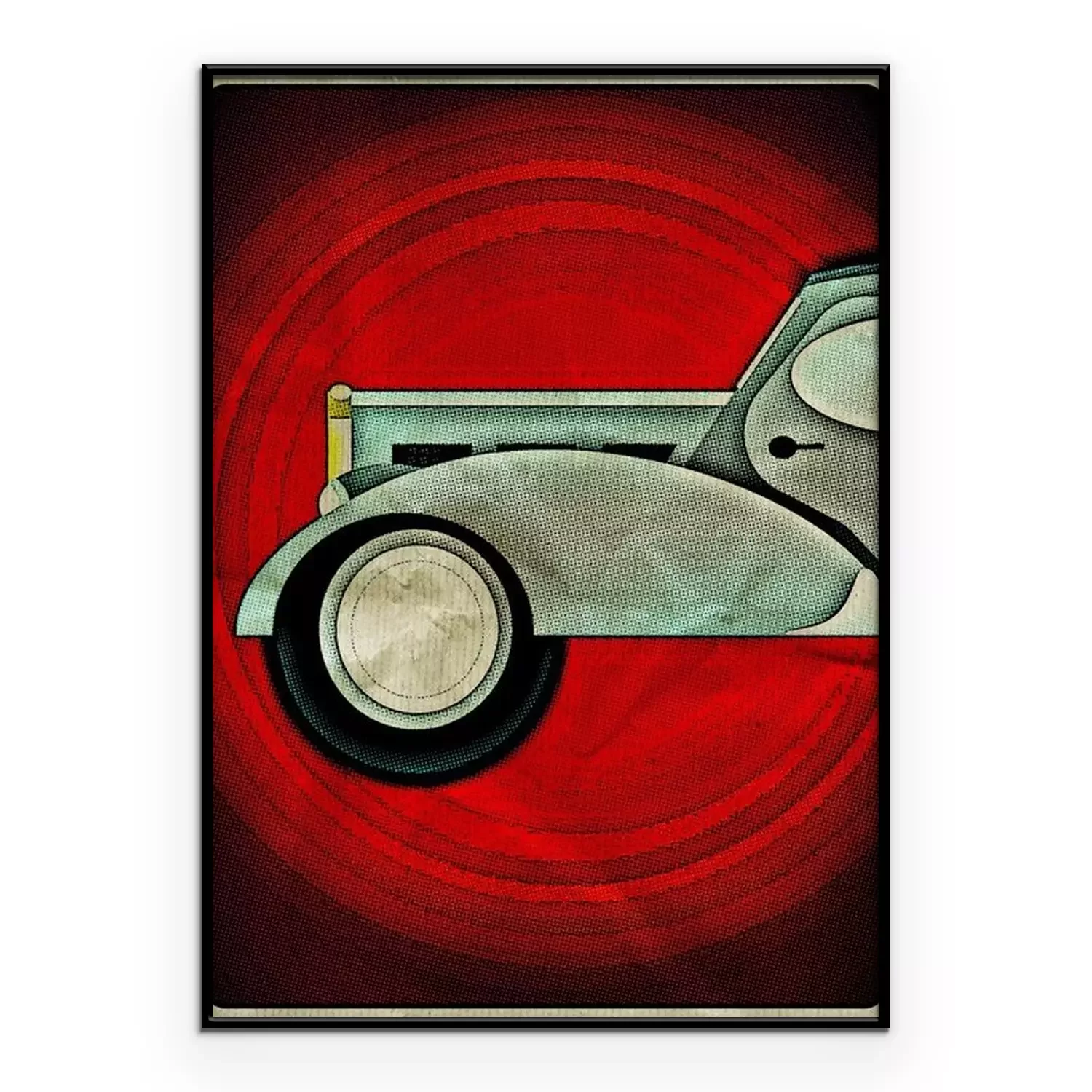 Poster: Auto Motiv Retro auf rotem Hintergrund