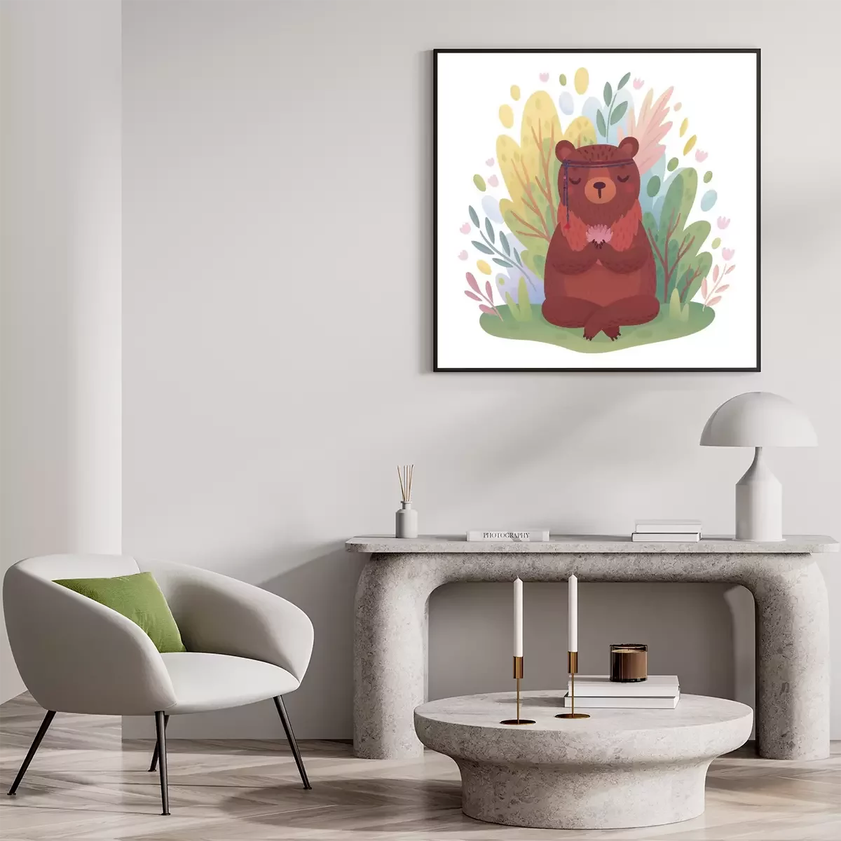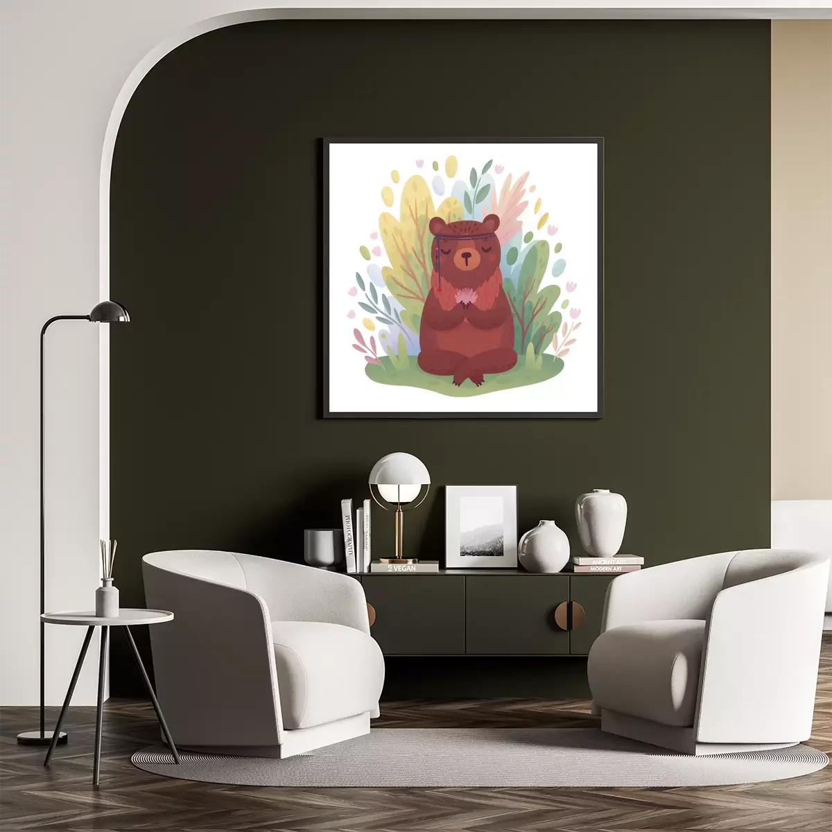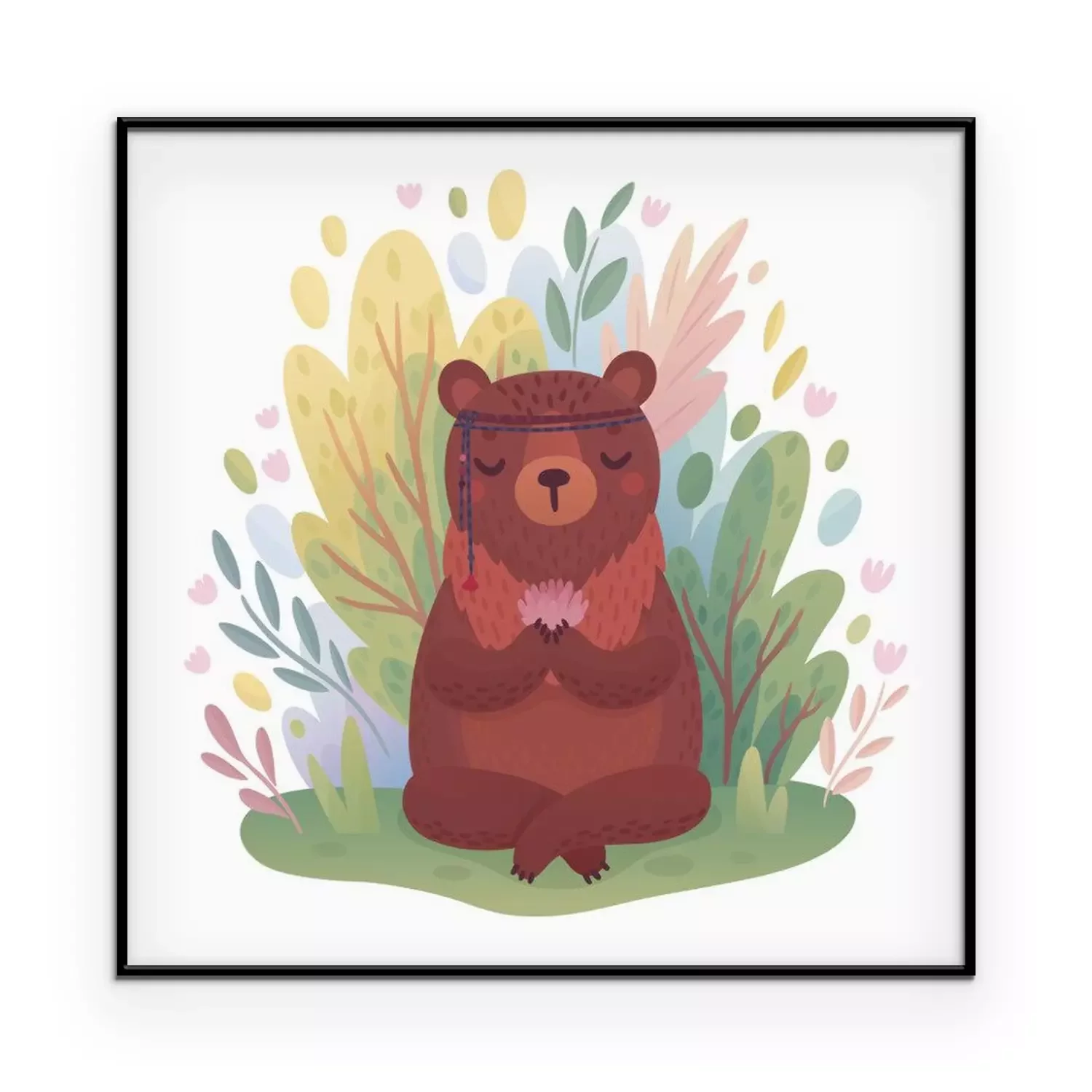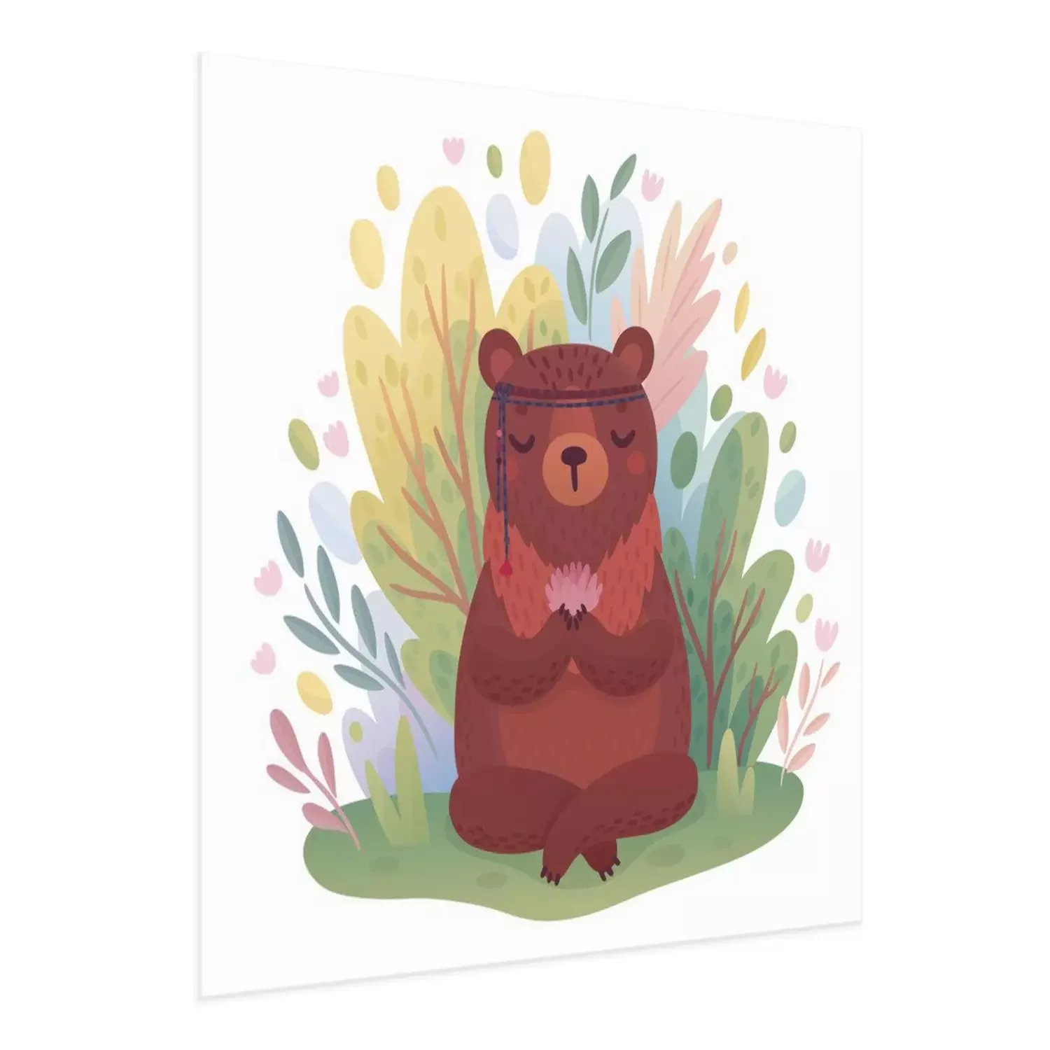 Poster: Bär mit einer Blume in seinen Pfoten und einem Stirnband
