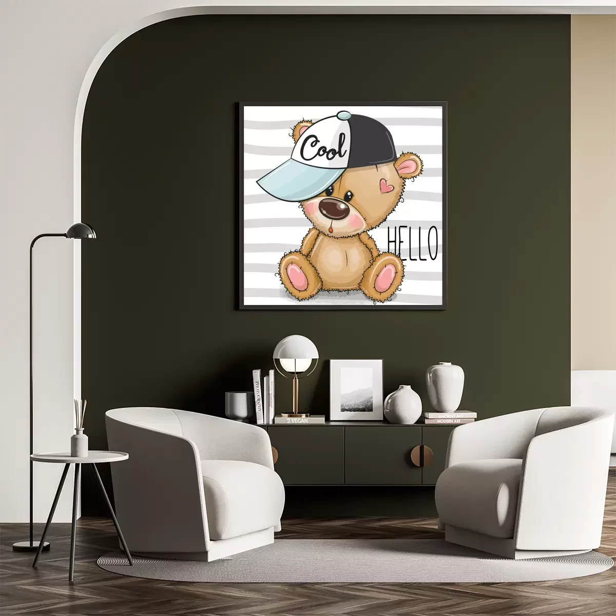 Poster: Bär mit Hut und Herz auf seinem Pelzmantel