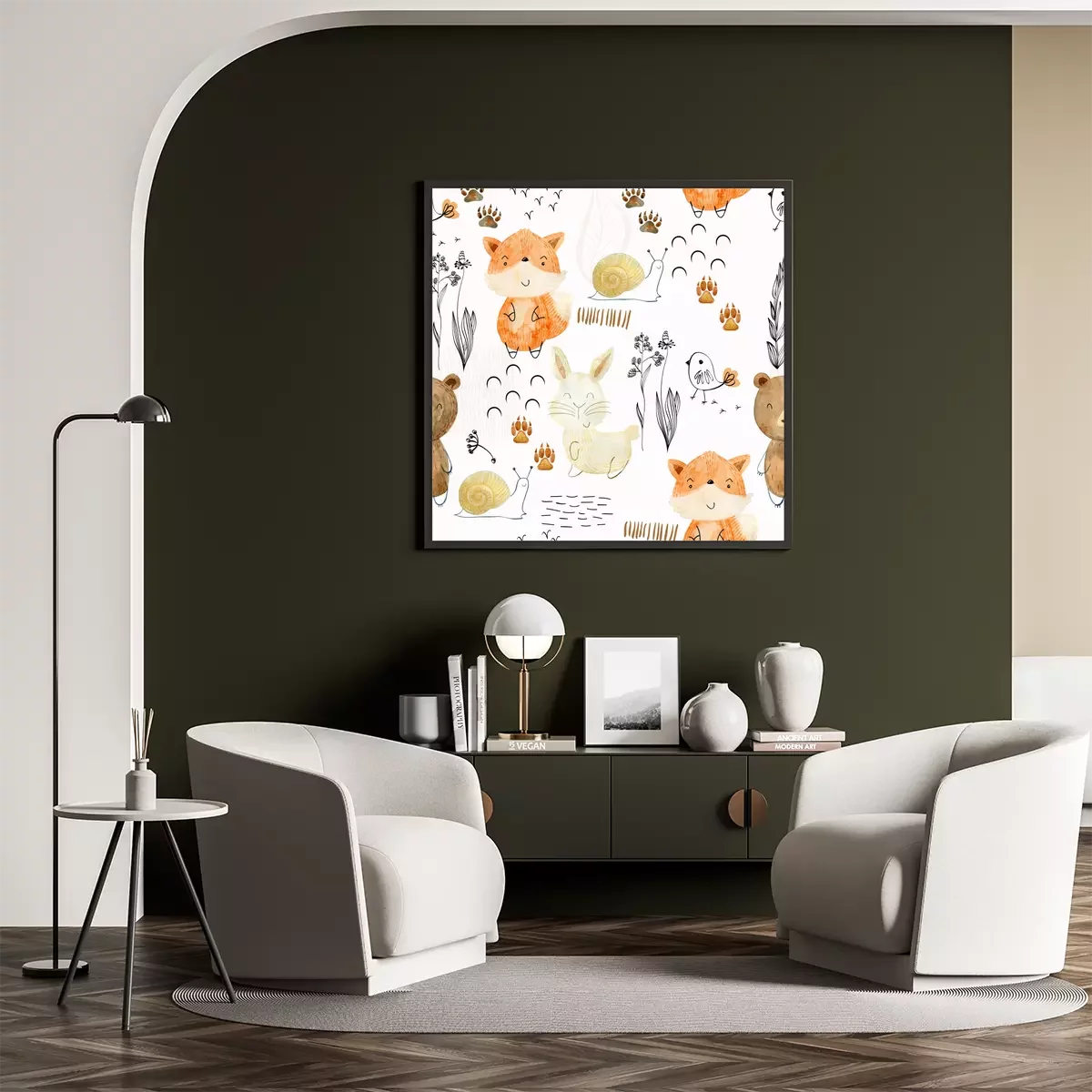 Poster: Bären, Füchse und Hasen in Erdfarben