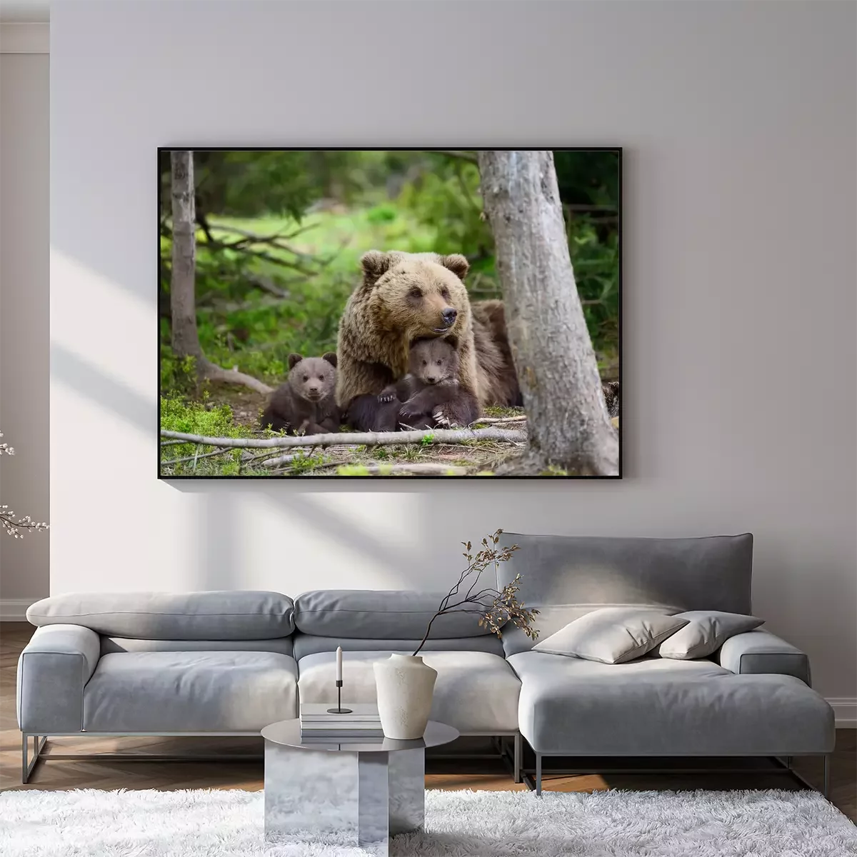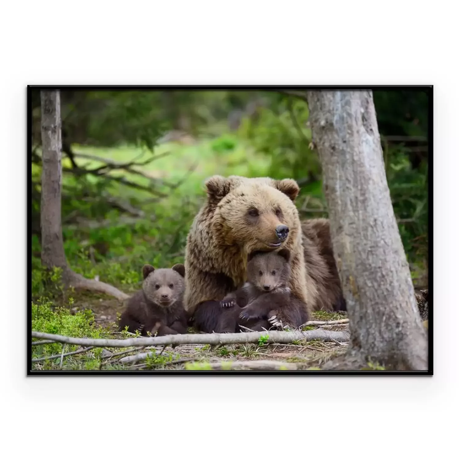 Poster: Bärenfamilie ruht im Wald