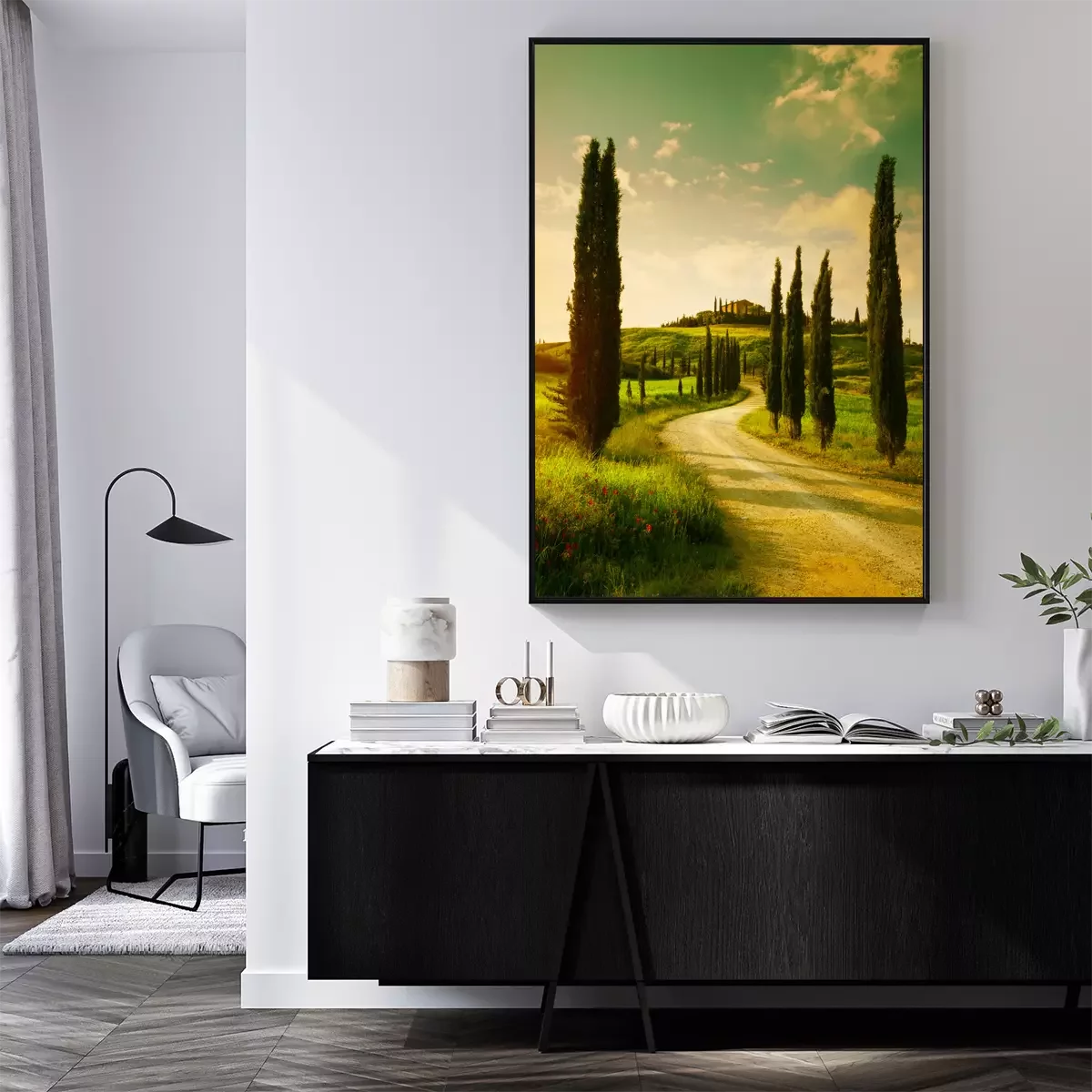 Poster: Bäume in der Toskana auf Retro-Foto