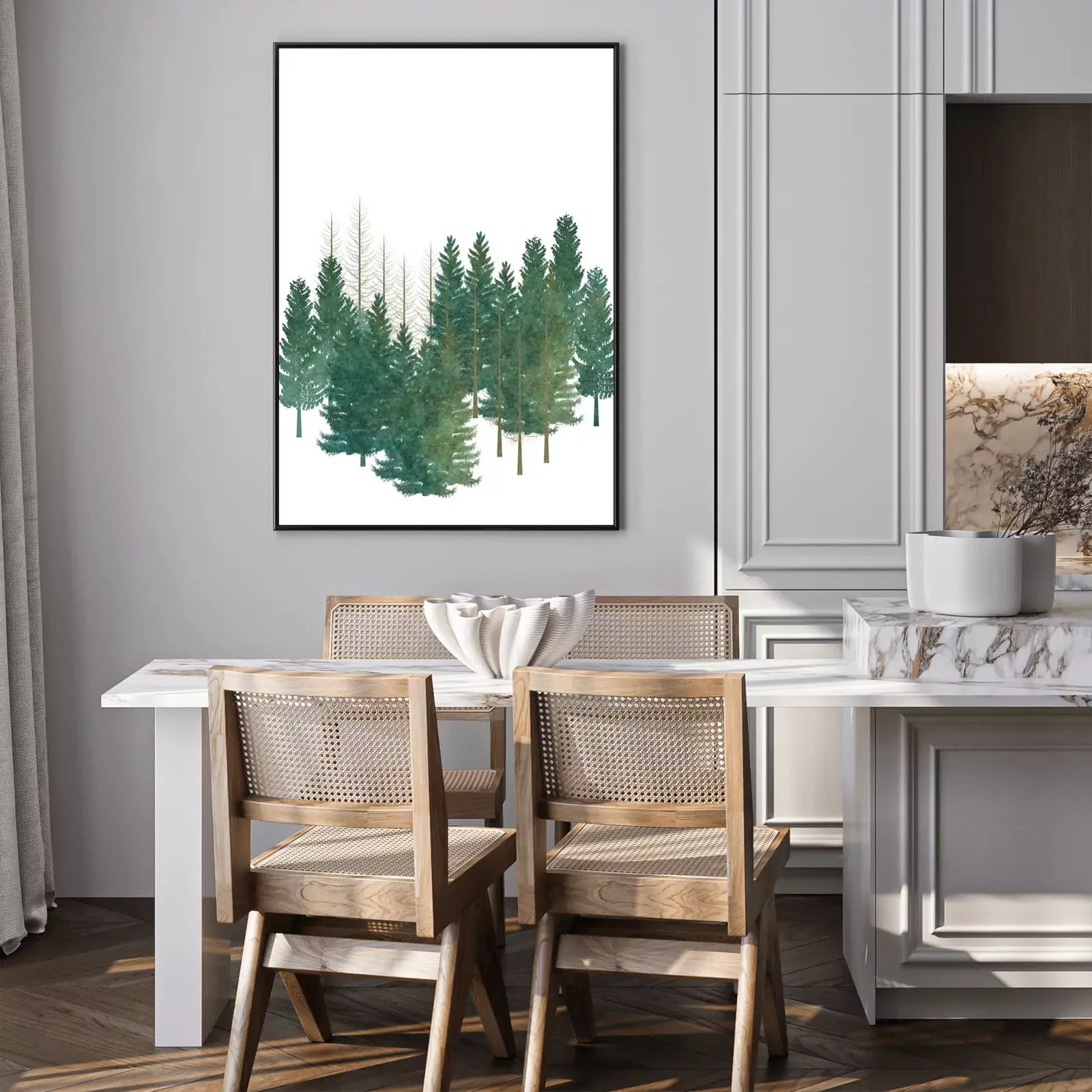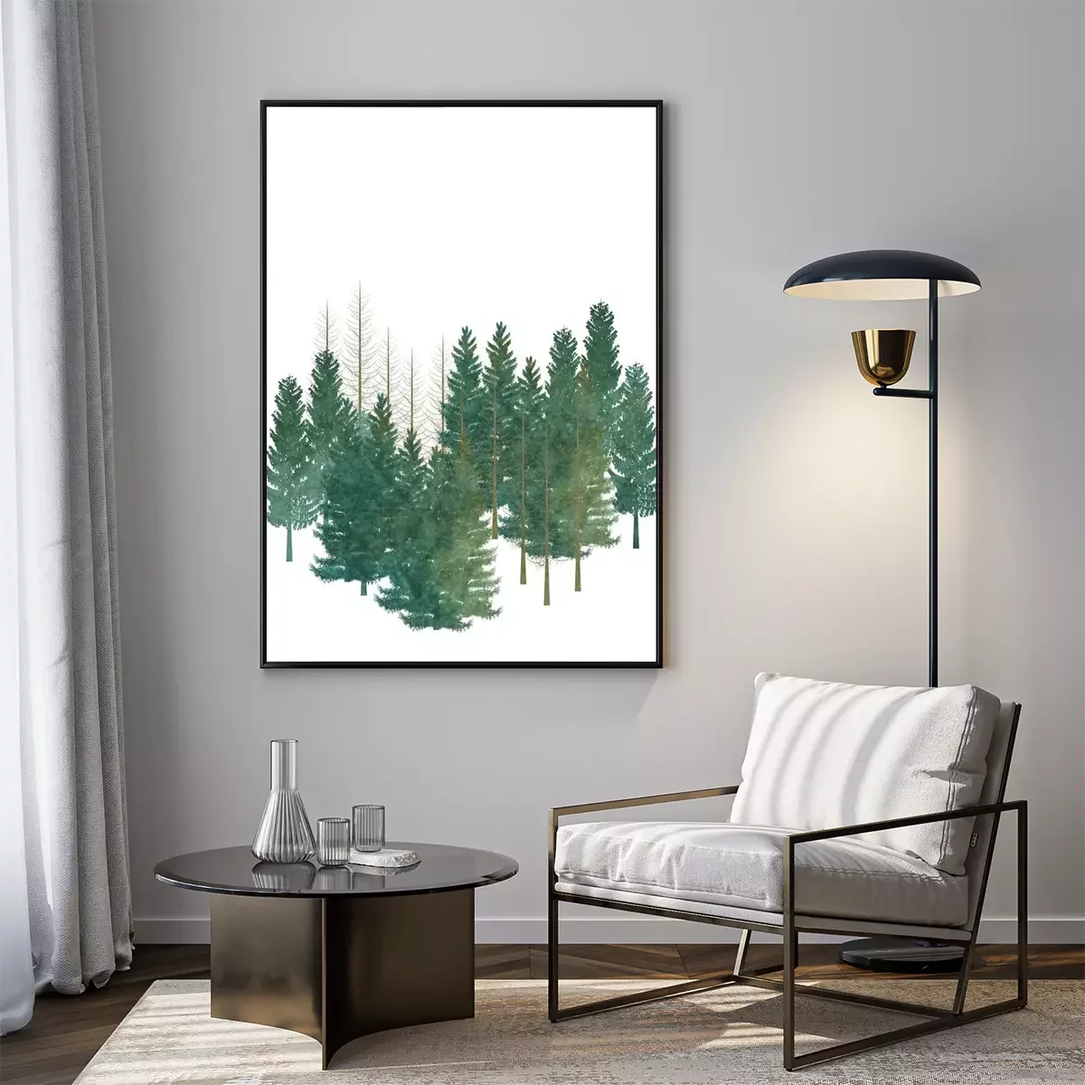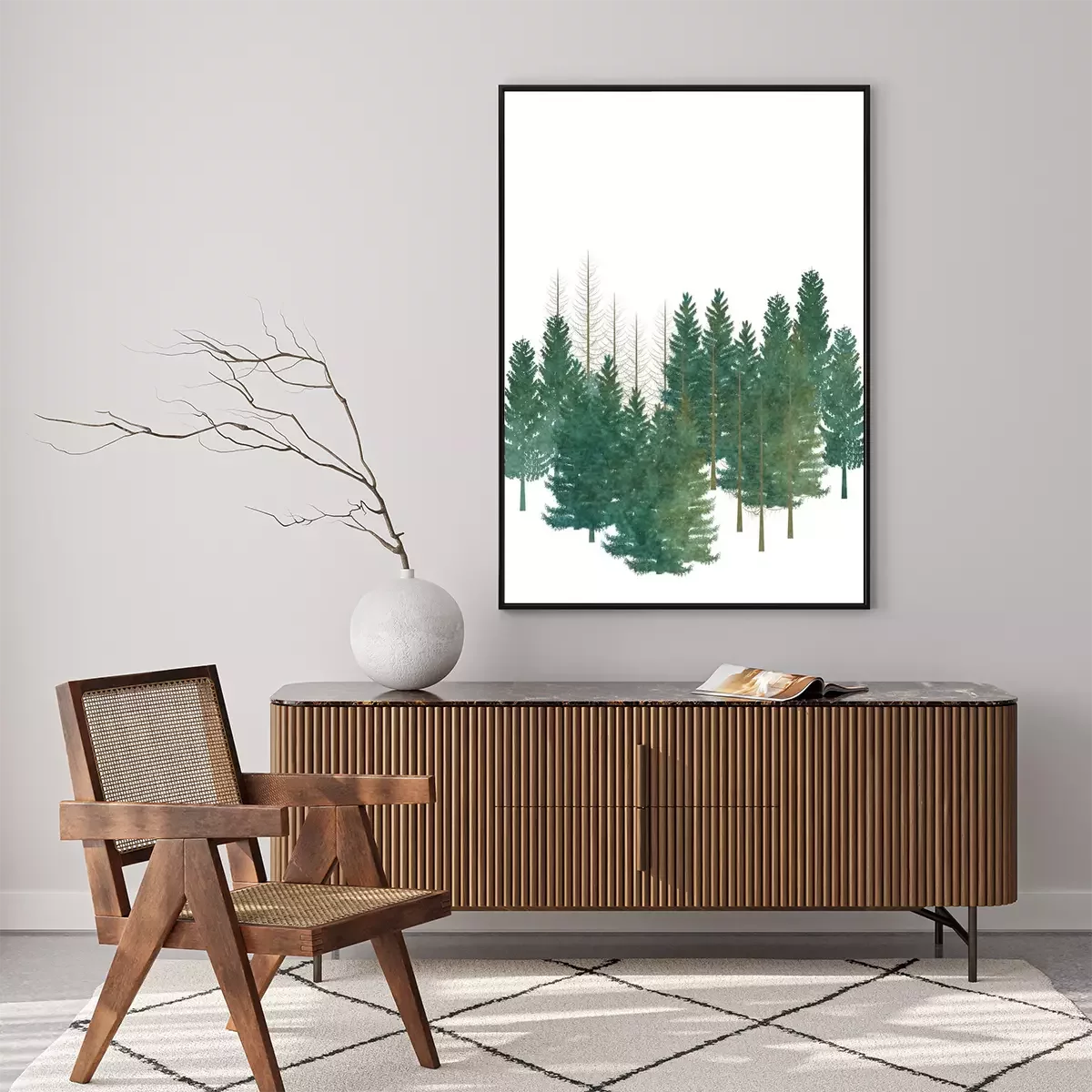 Poster: Bäume Nadelwald auf weißem Hintergrund