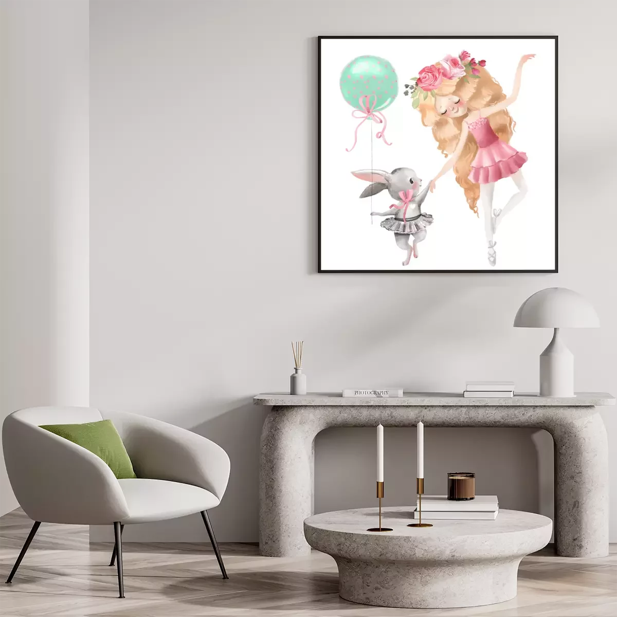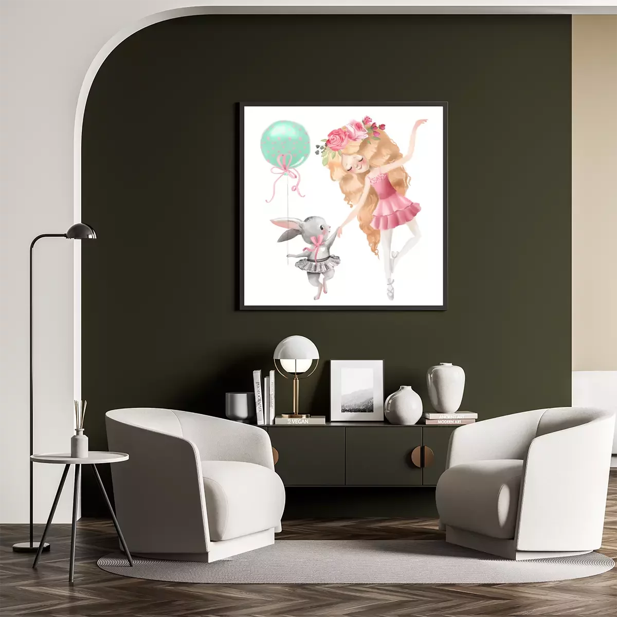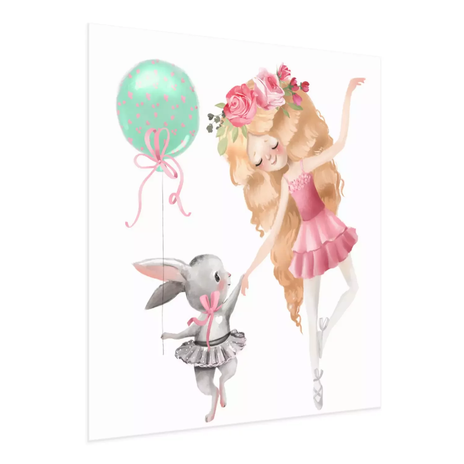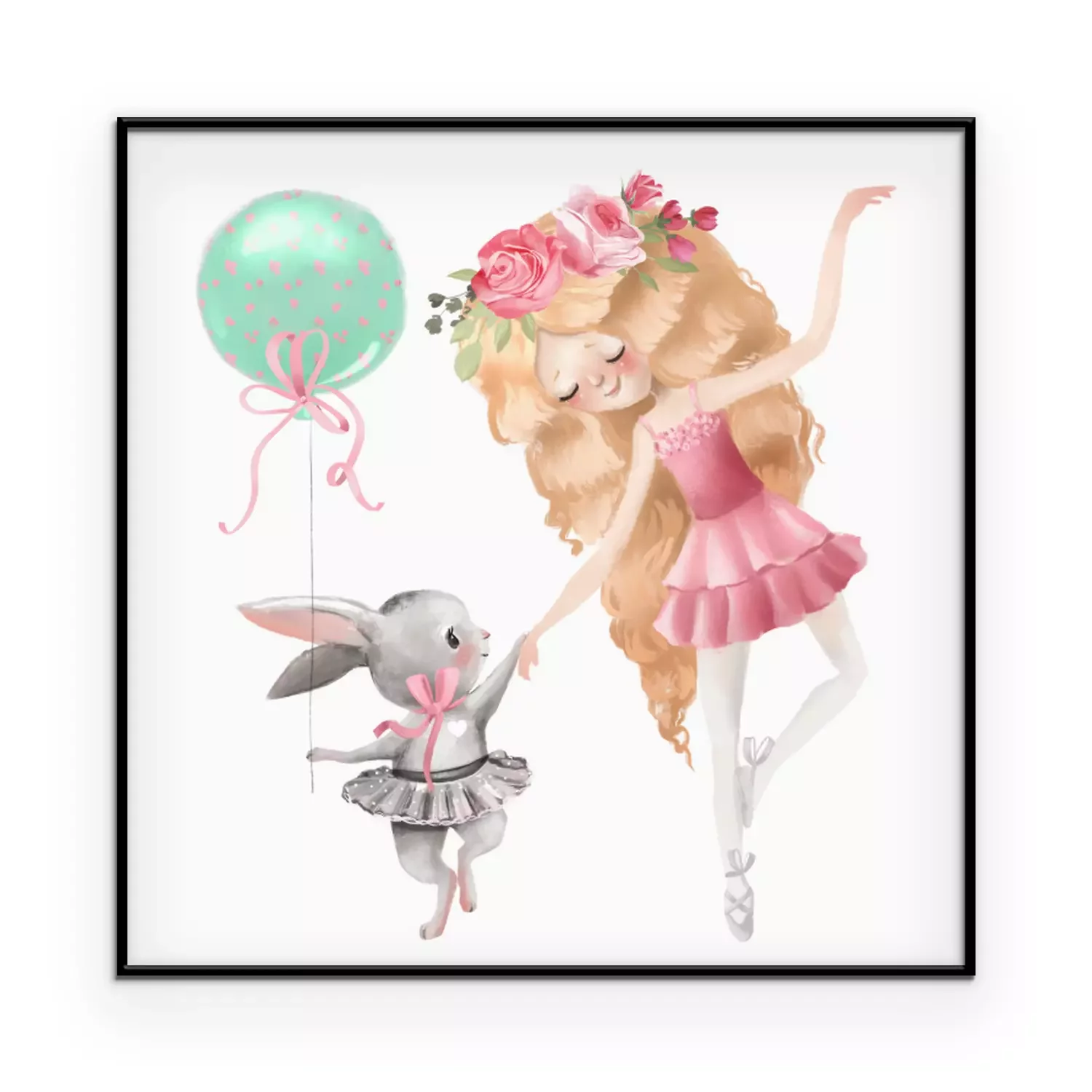Poster: Ballerina mit langen Haaren und einem Häschen