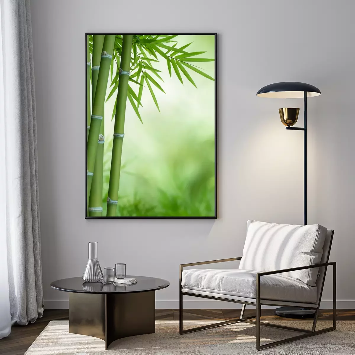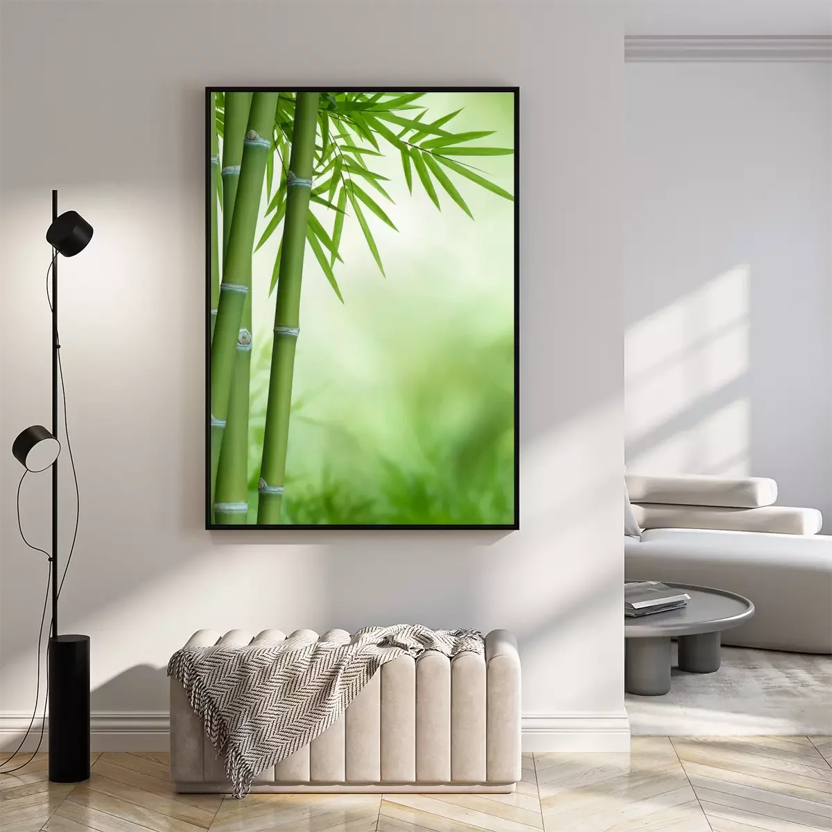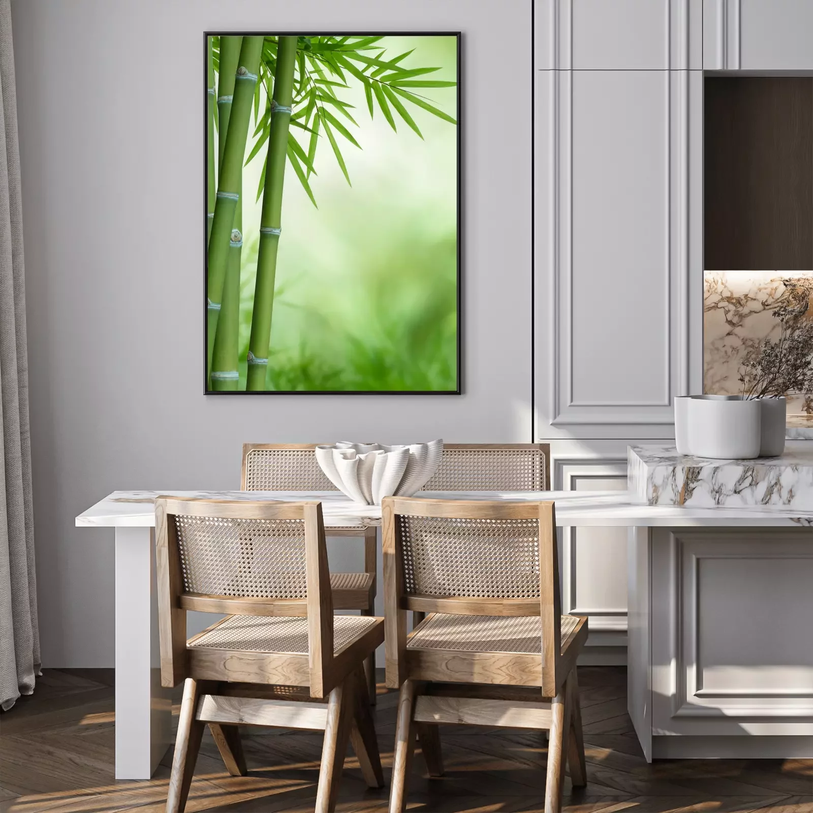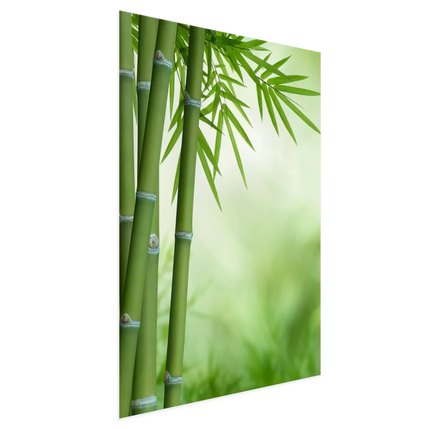 Poster: Bambus auf einem grünen verschwommenen Hintergrund