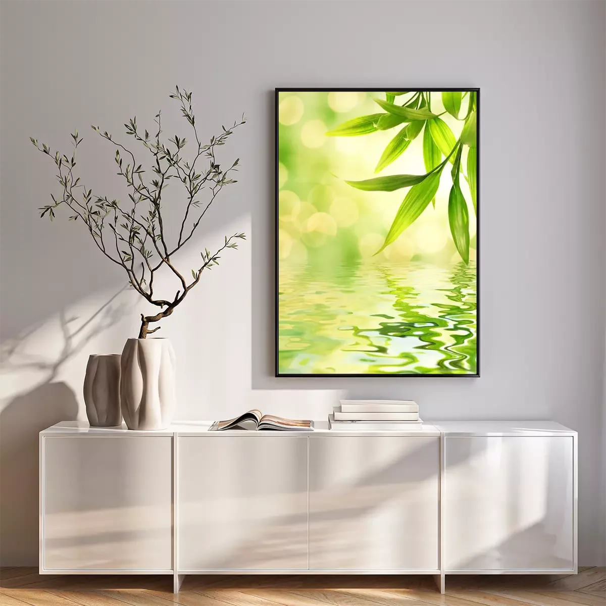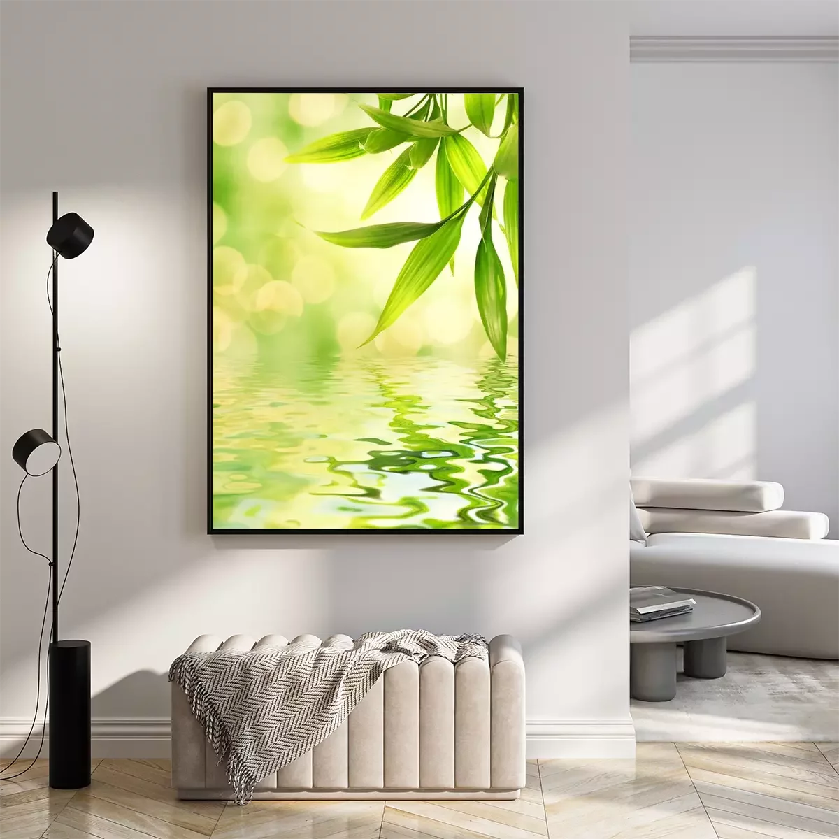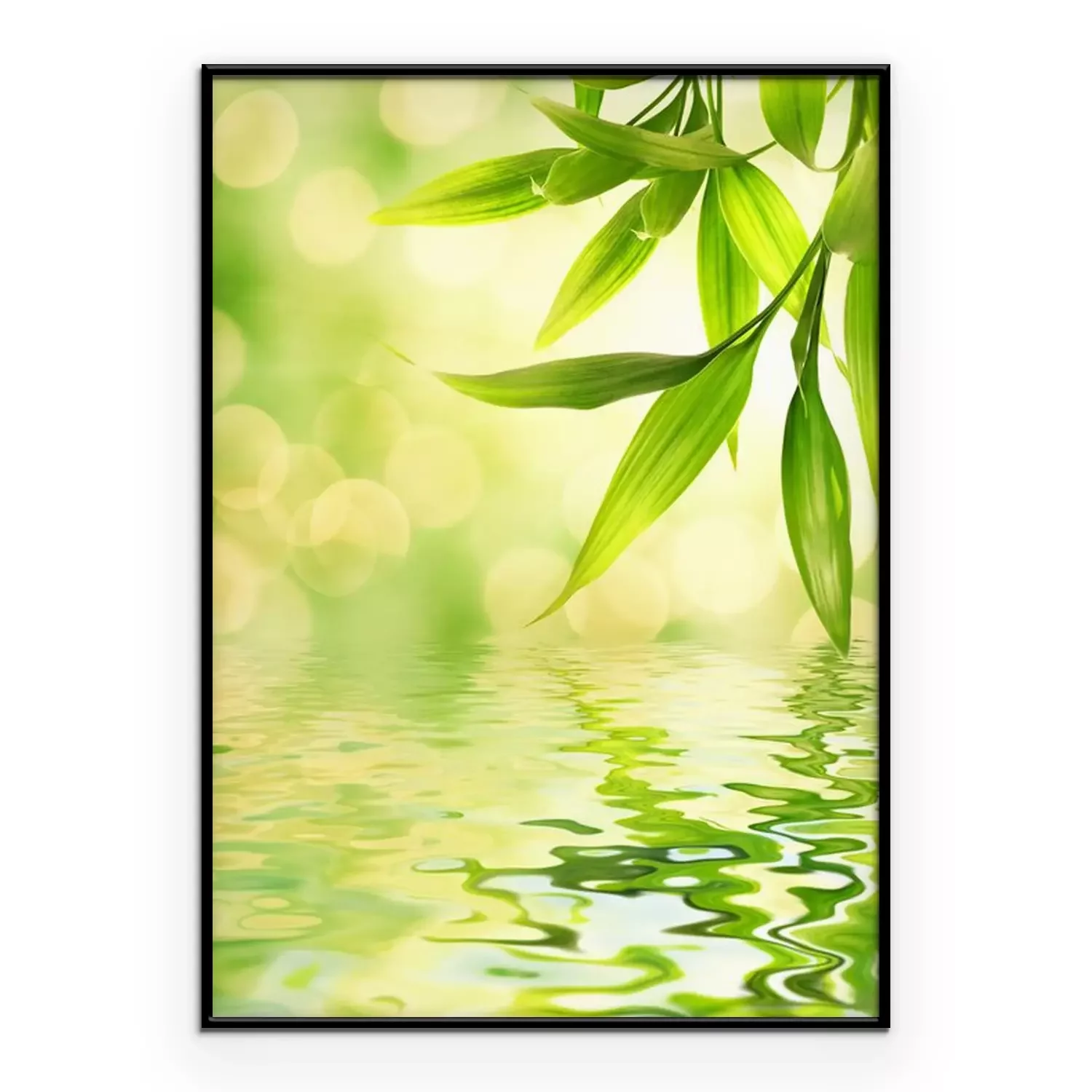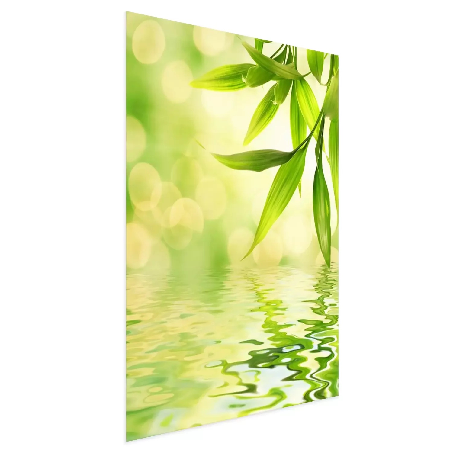 Poster: Bambus auf grünem Hintergrund umgeben von Wasser