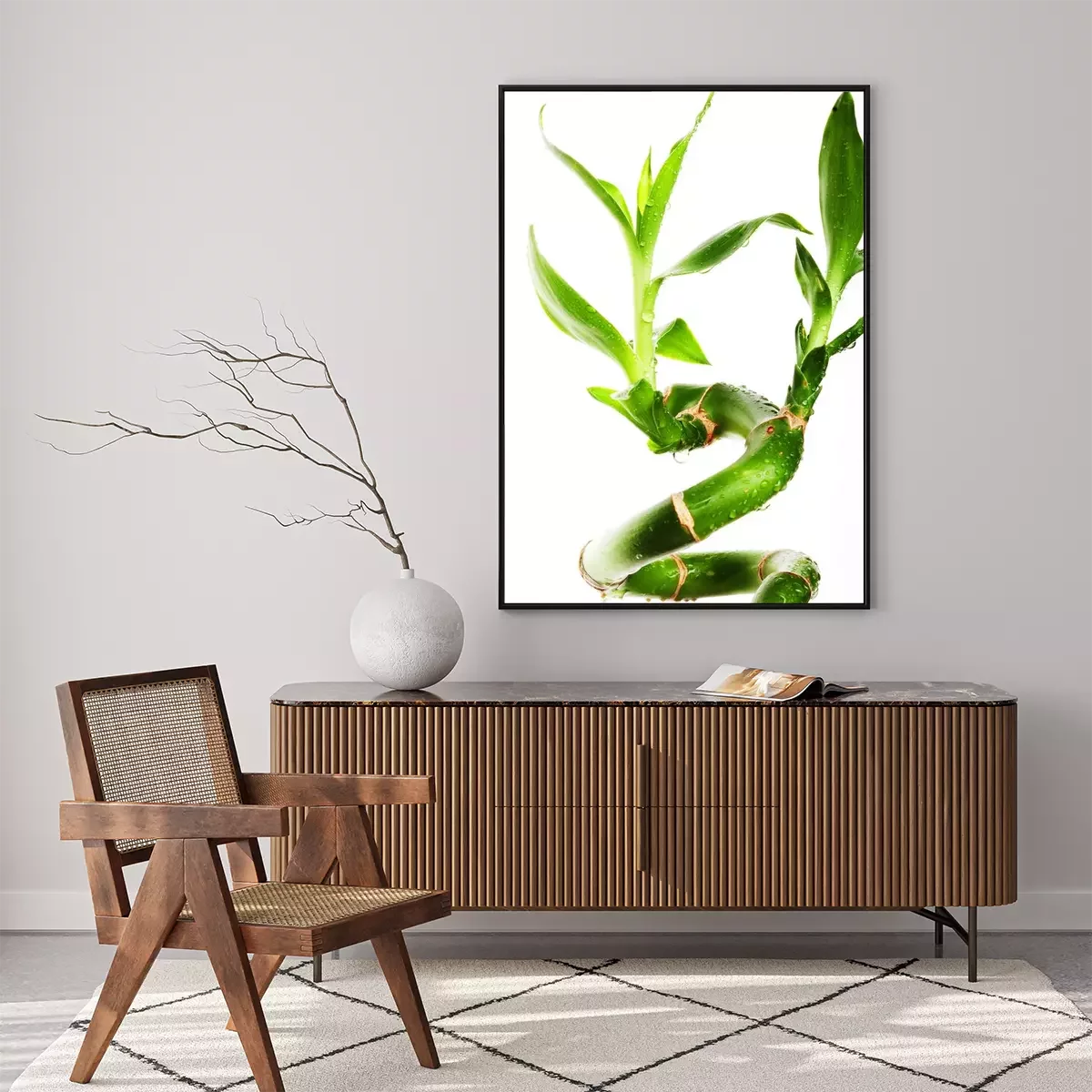 Poster: Bambus gebogener Spross mit Blättern