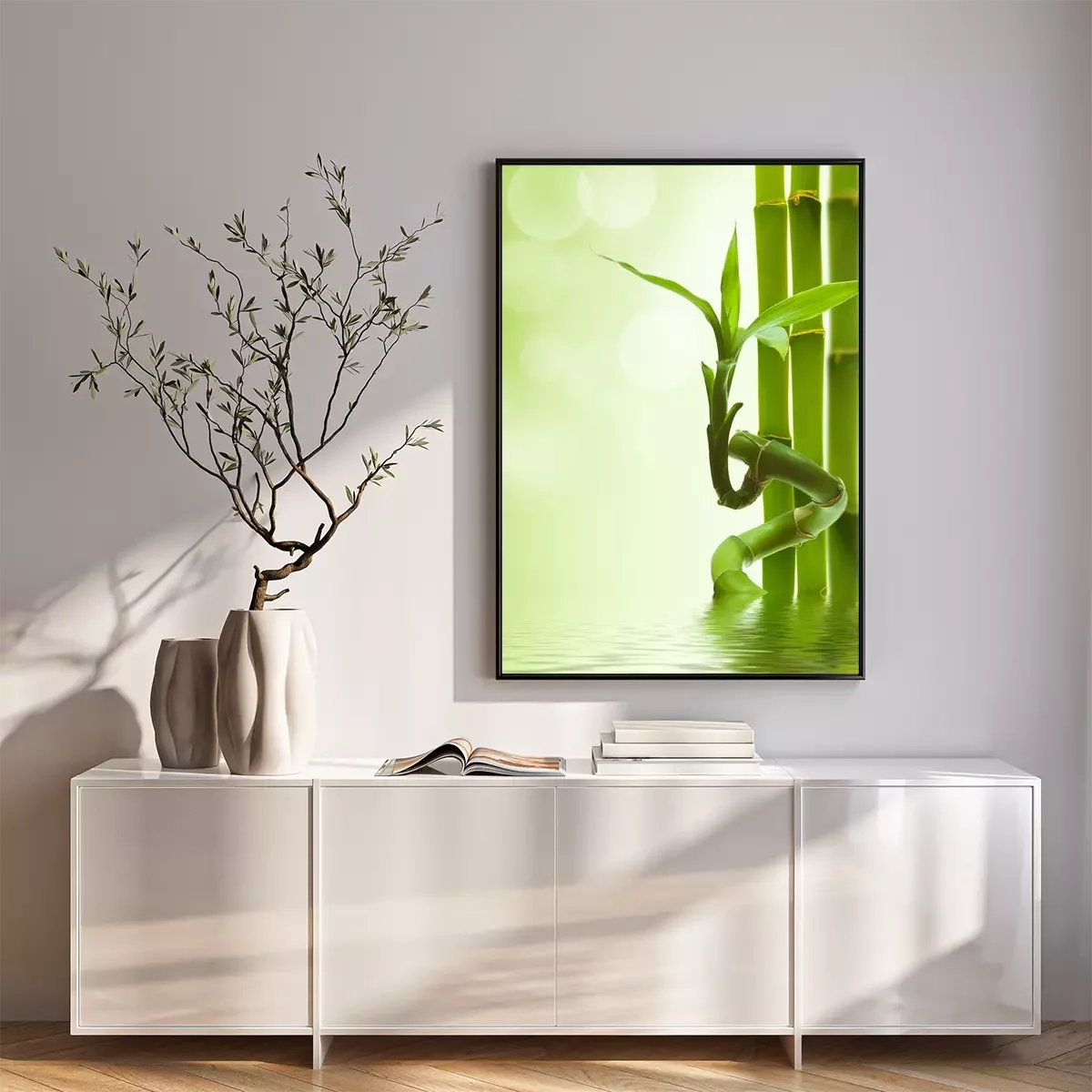 Poster: Bambus Sprossen und Stiele im Wasser