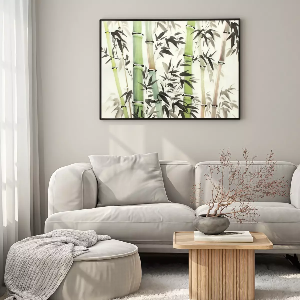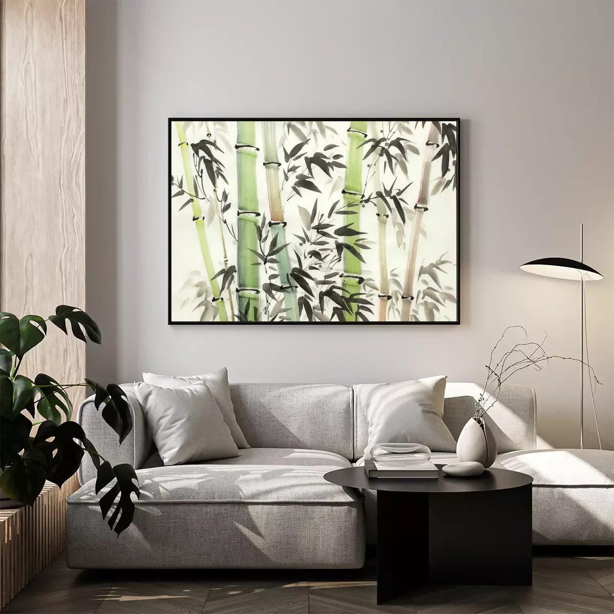 Poster: Bambus und Stiele mit schwarzen Blättern