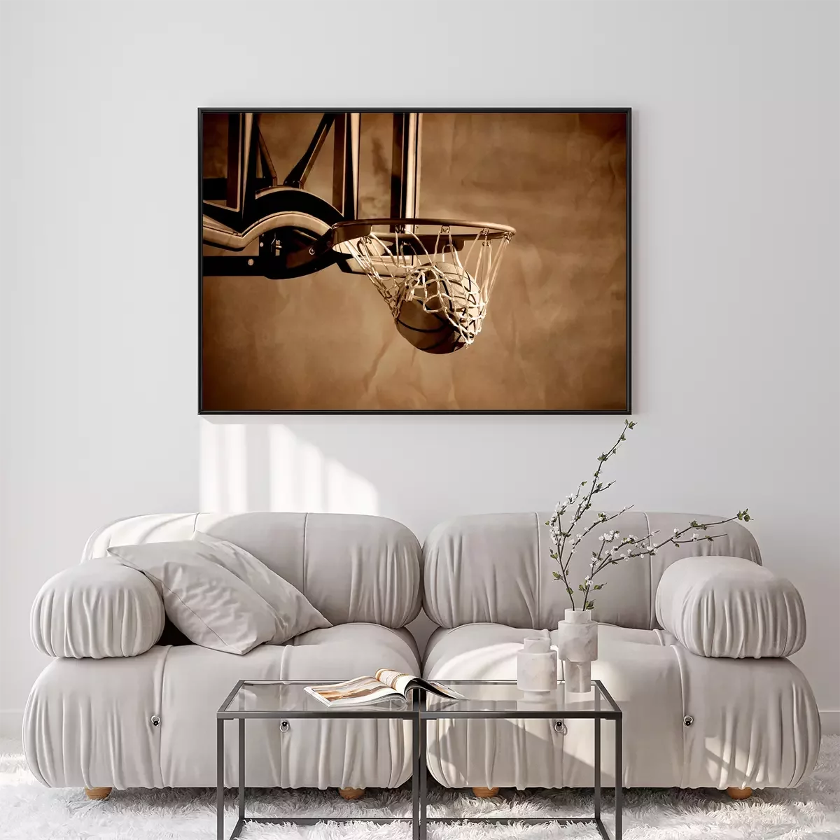 Poster Basketball Ball im Korb Sepia