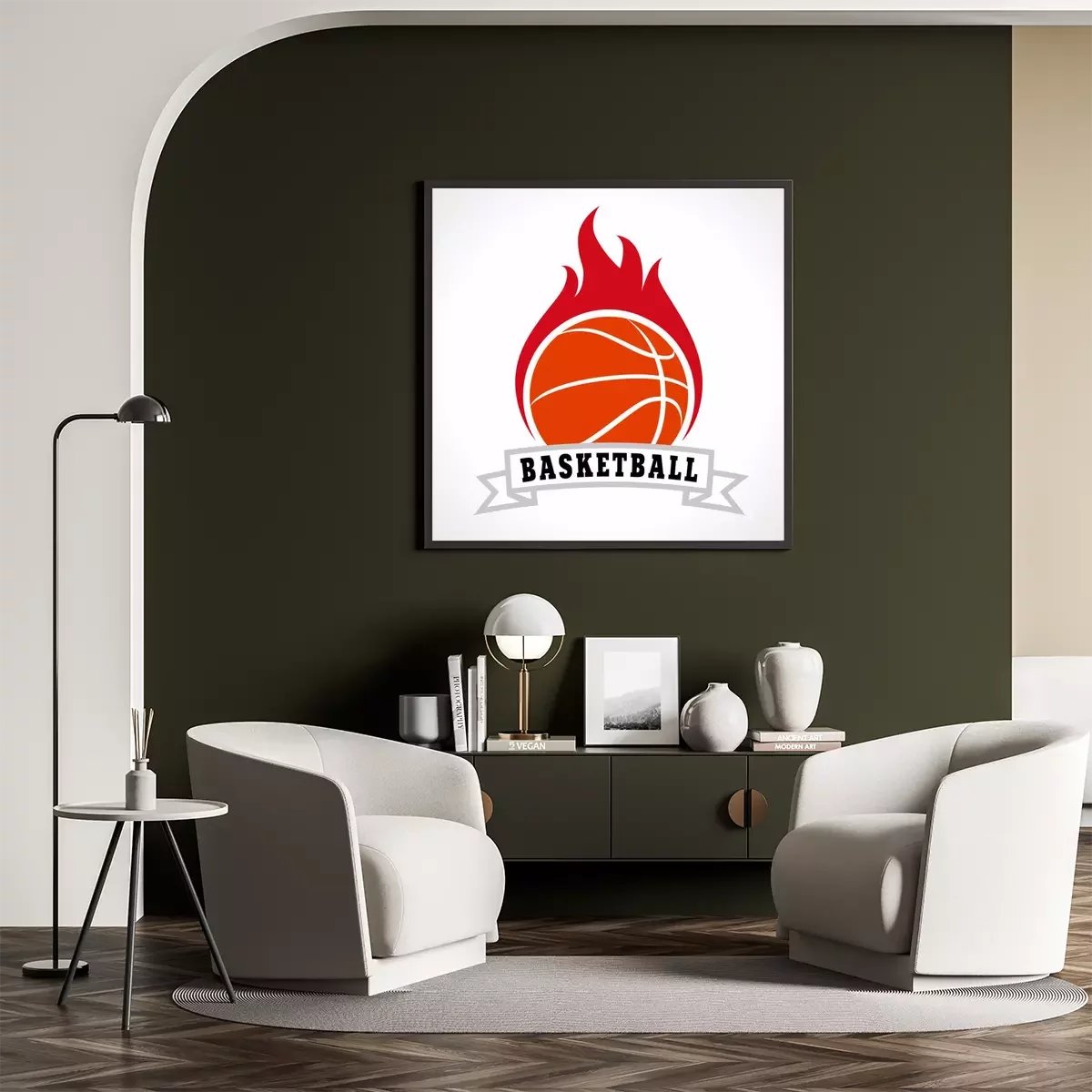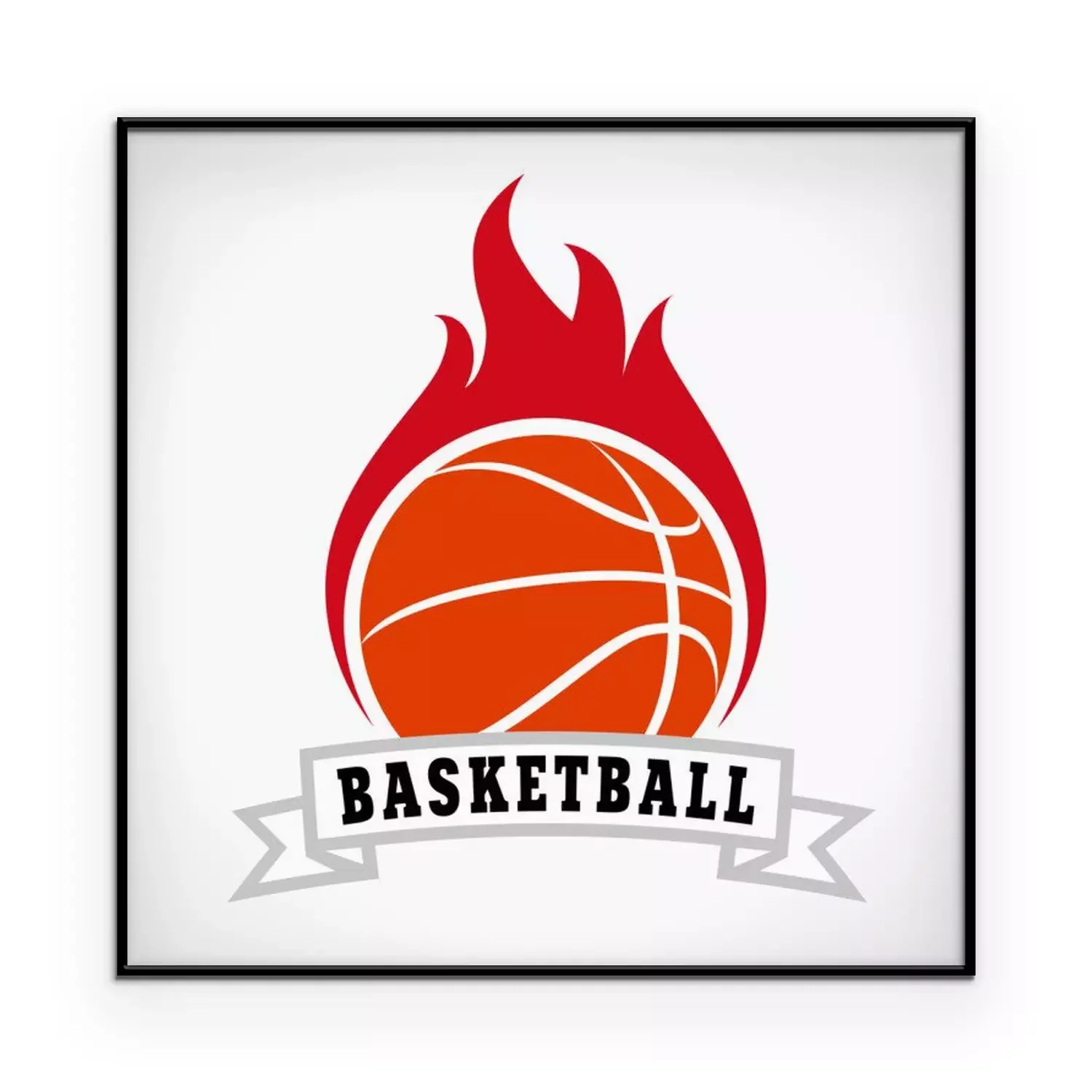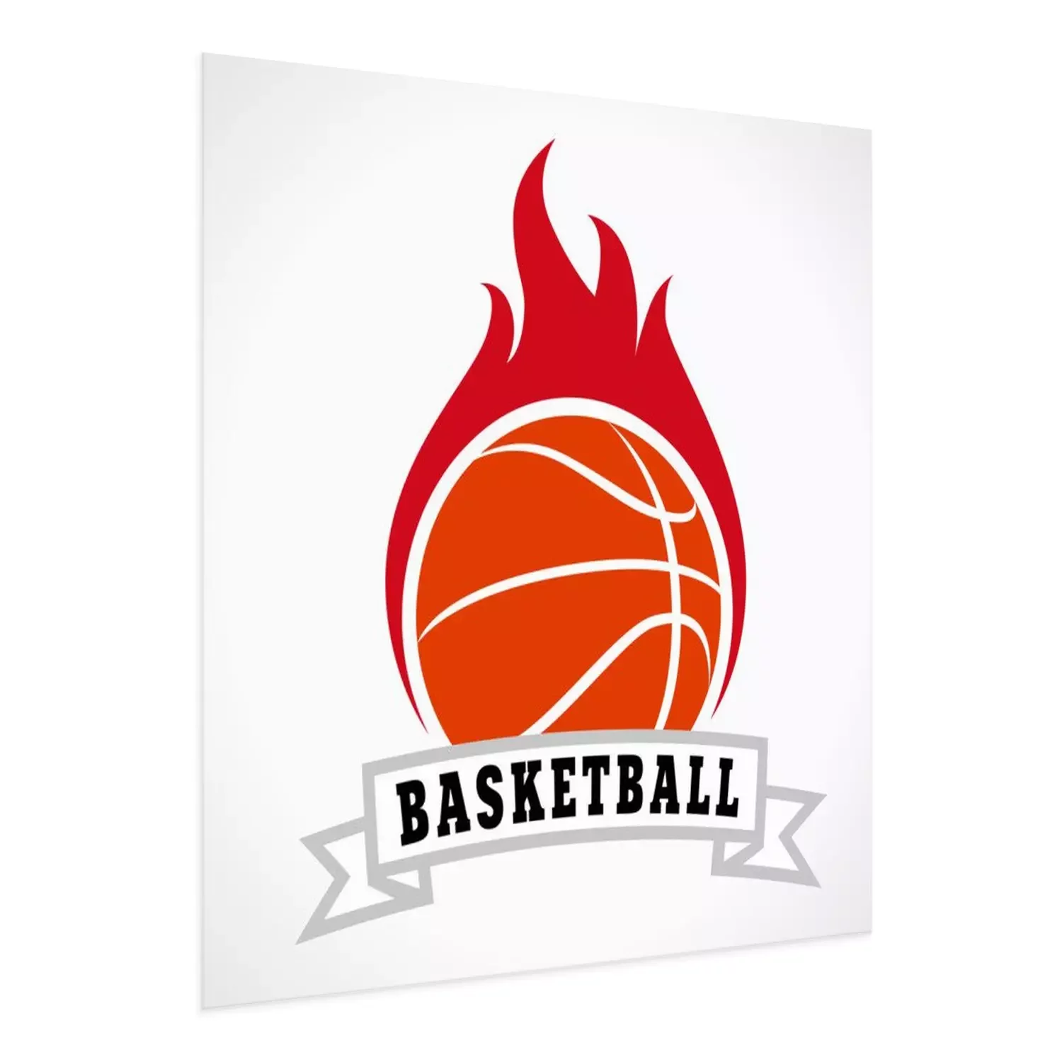 Poster: Basketball Grafik flammender Ball mit Beschriftung