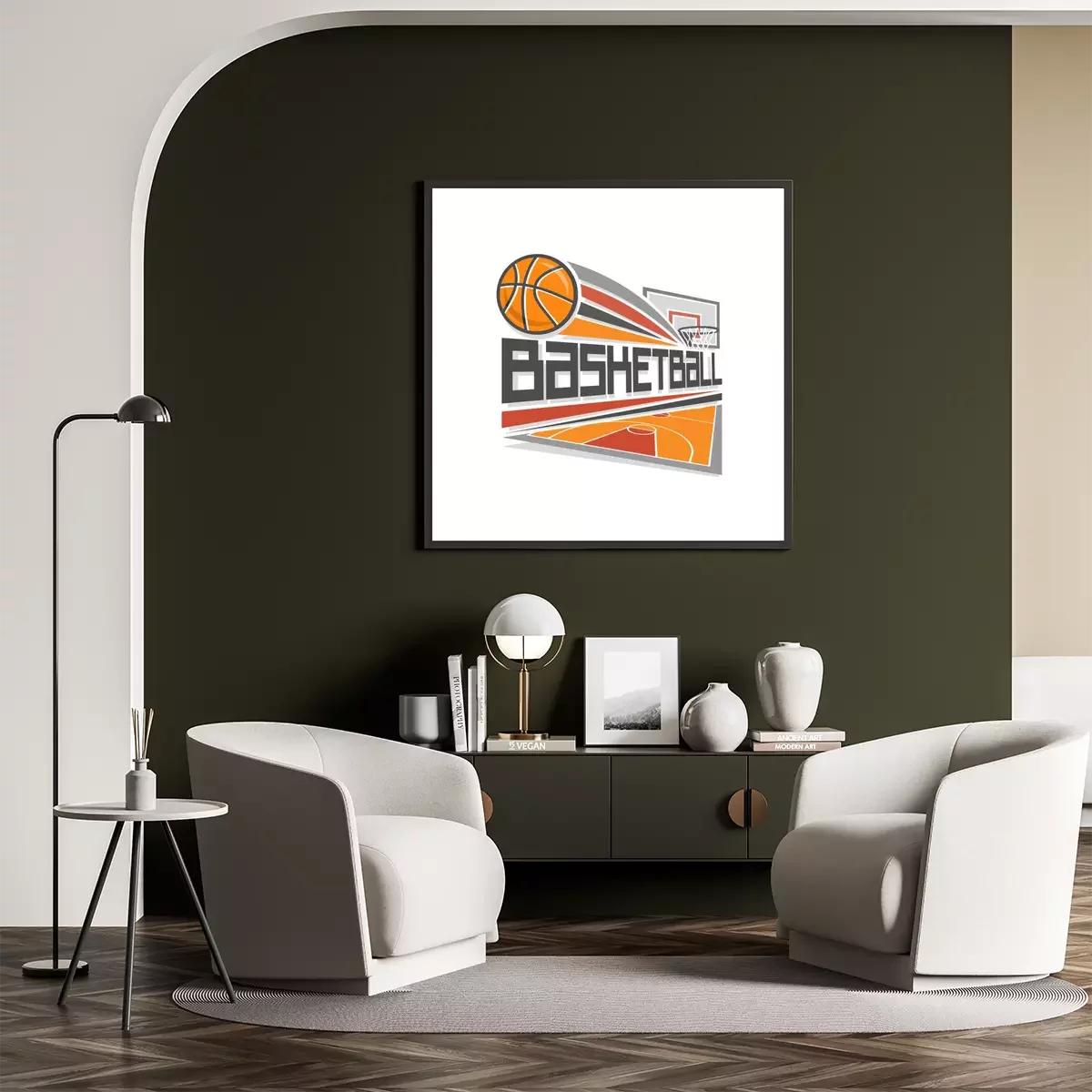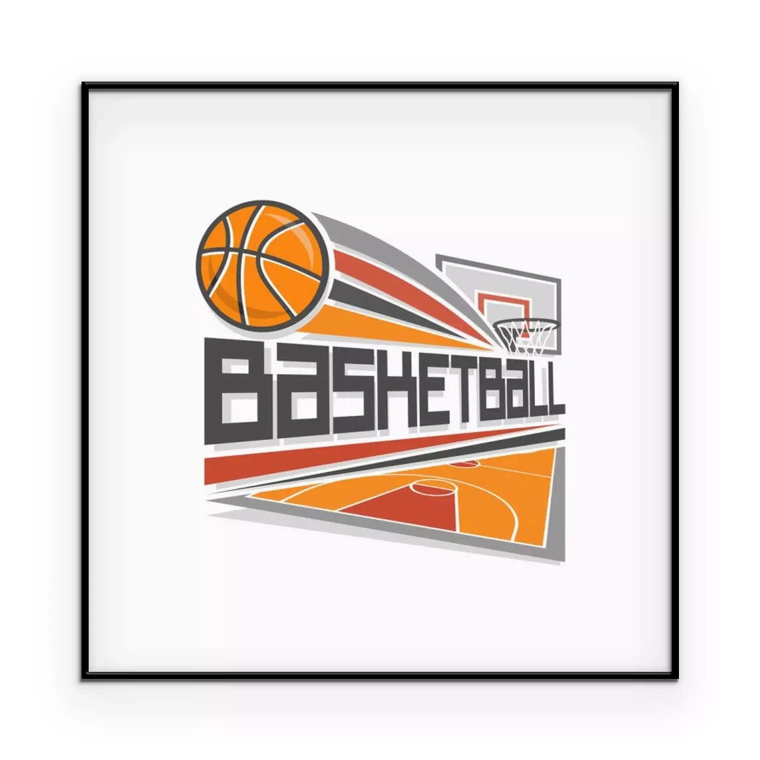 Poster: Basketball-Grafik in grauen und orangefarbenen Farben