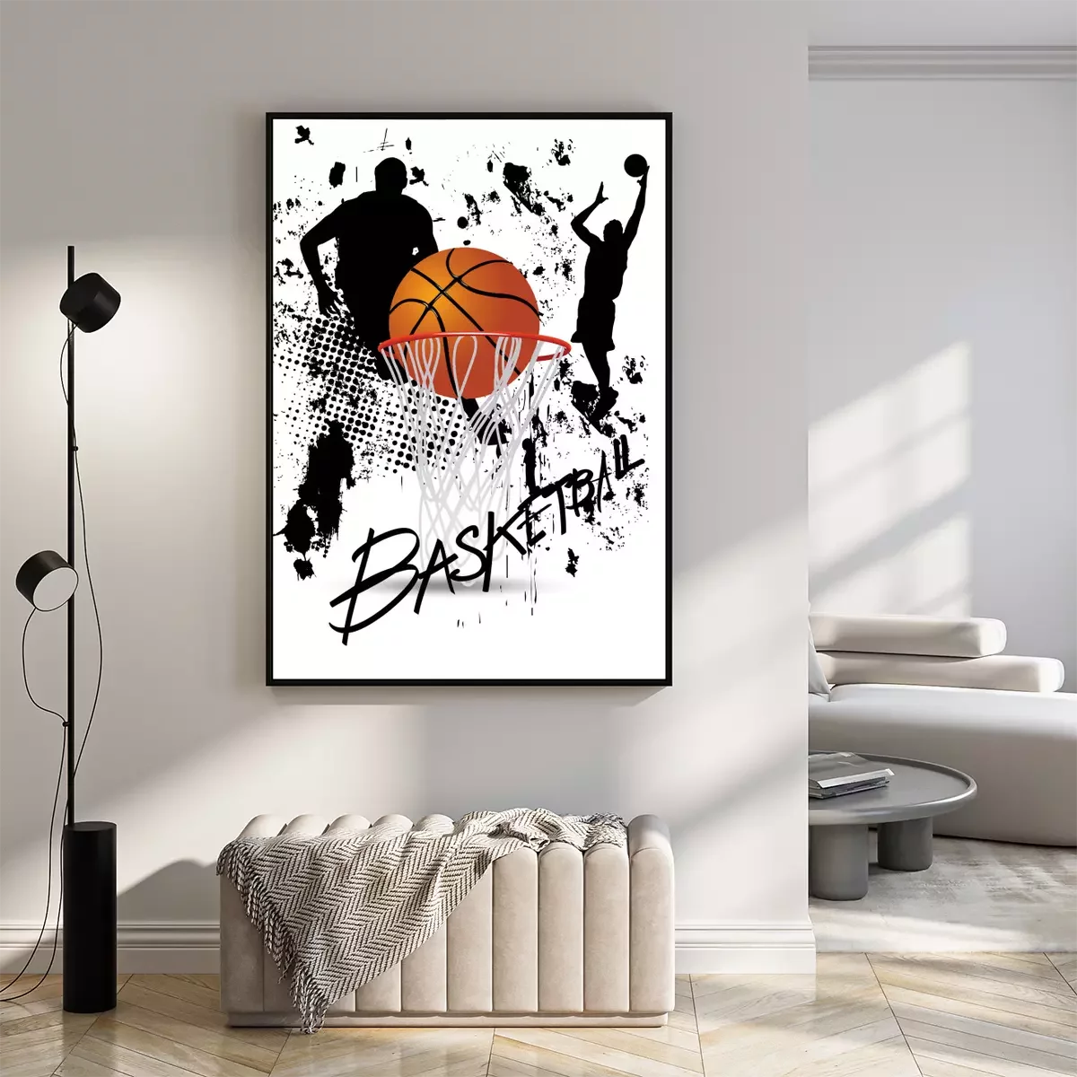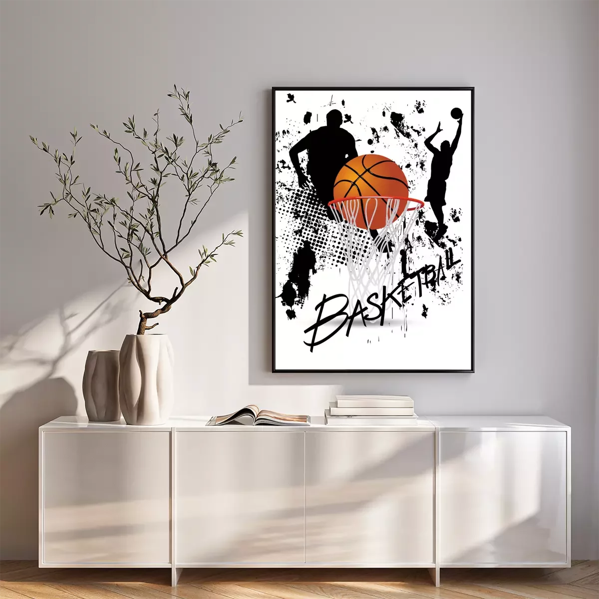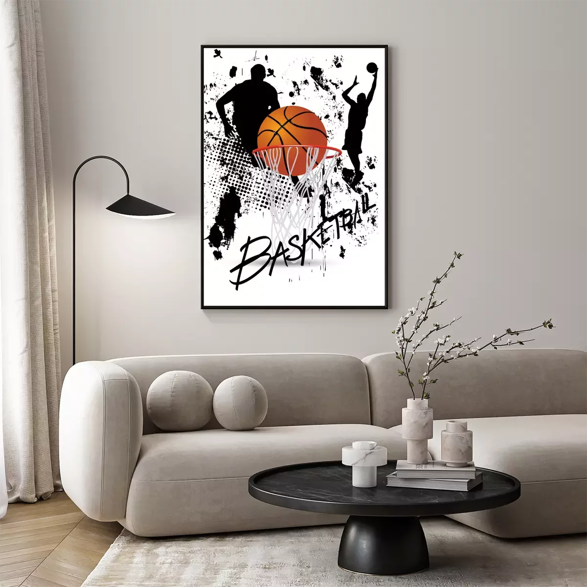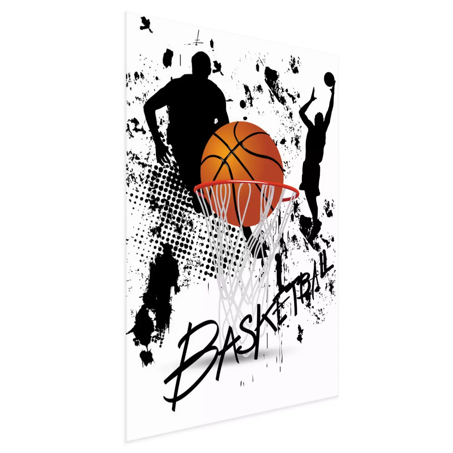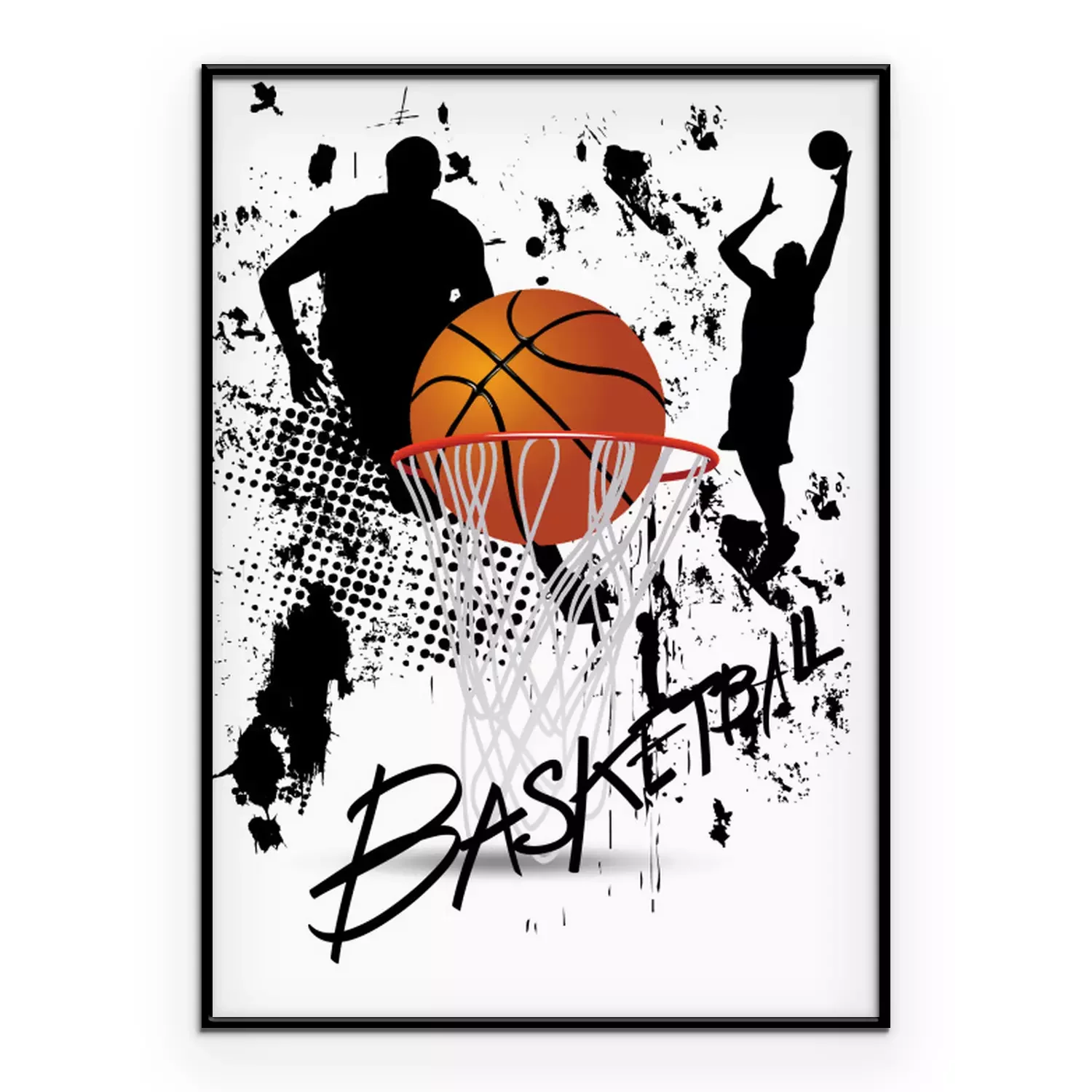 NBA Basketball schwarzer Schriftzug und Basketball-Spieler