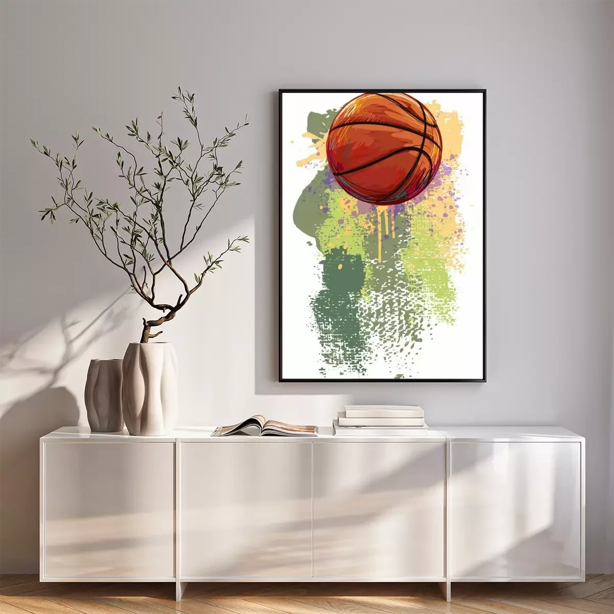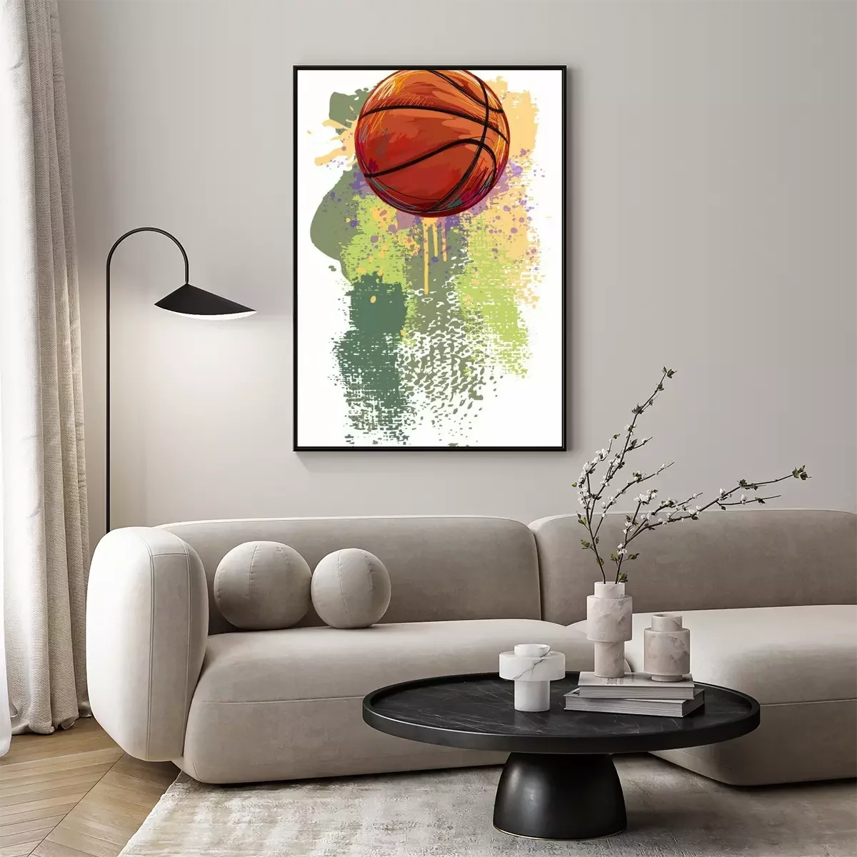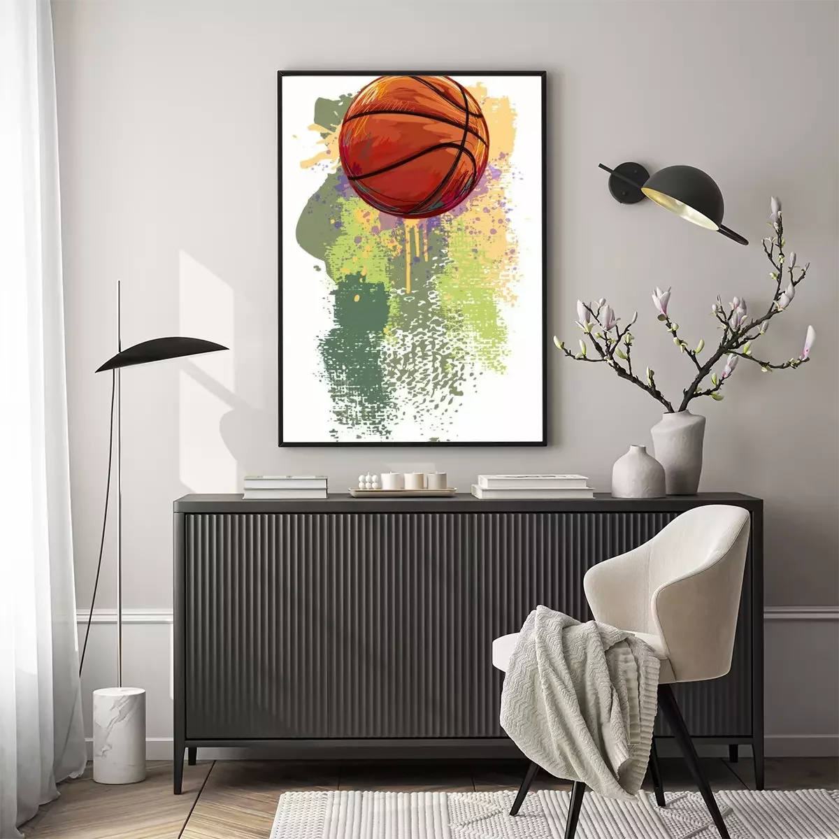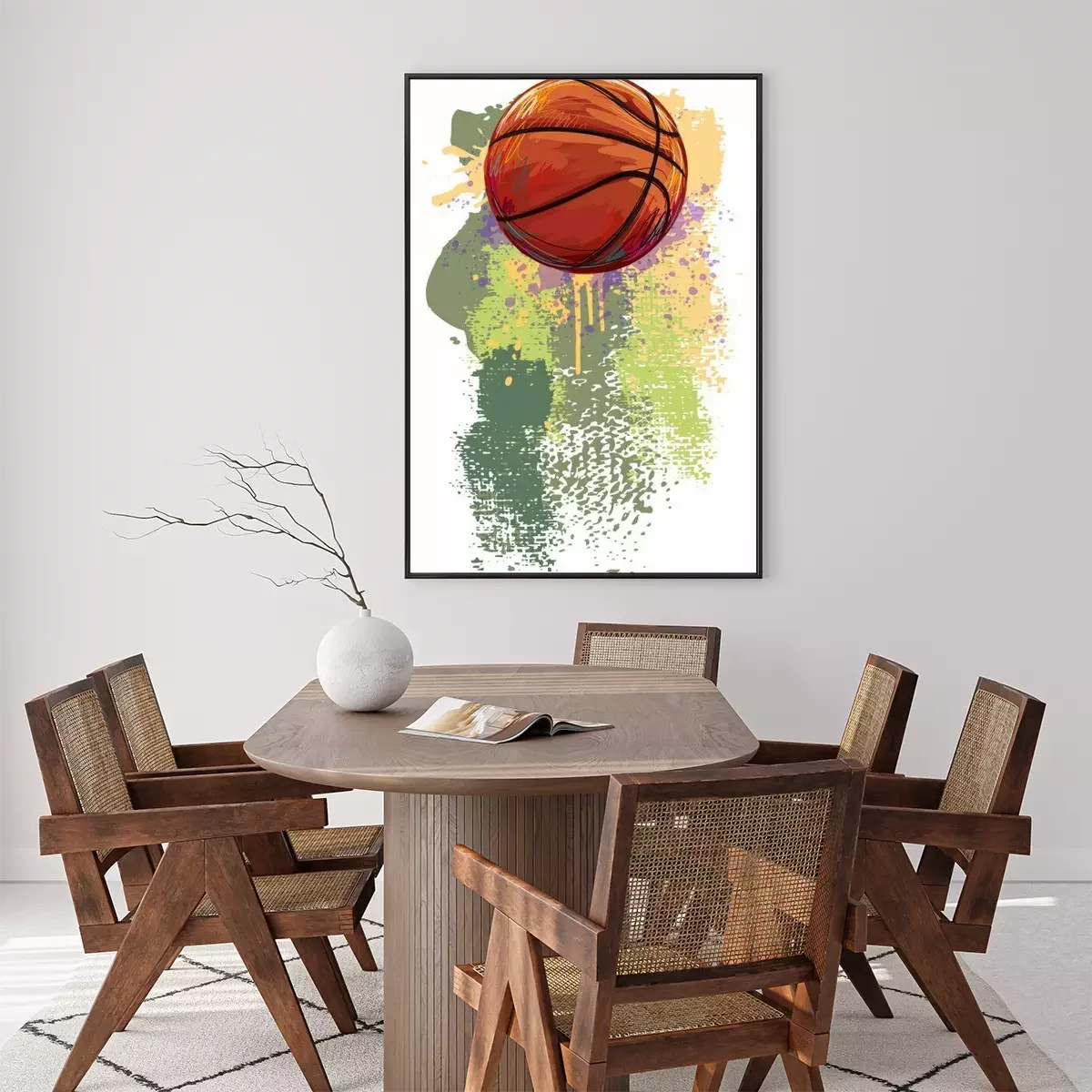 Poster Basketball vor gemaltem Hintergrund