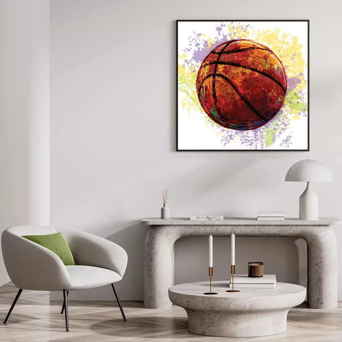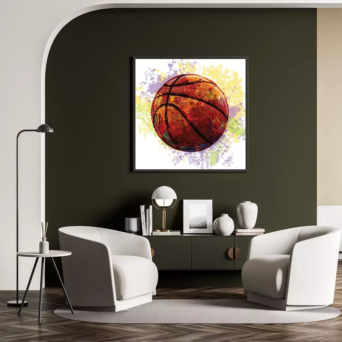 Poster Basketballball mit Farben bemalt