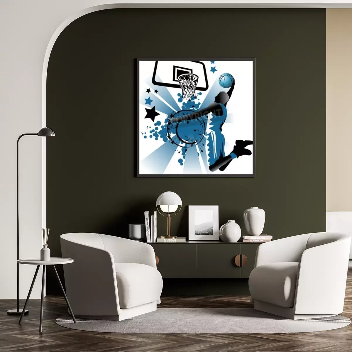 Poster Basketballmotiv in den Farben Schwarz und Blau