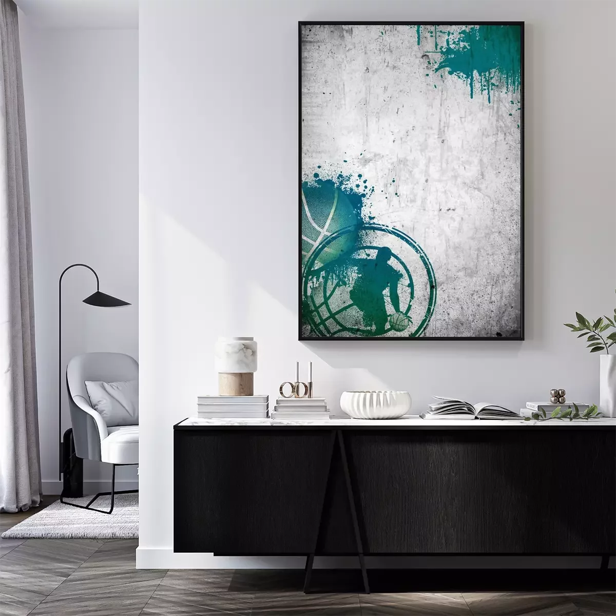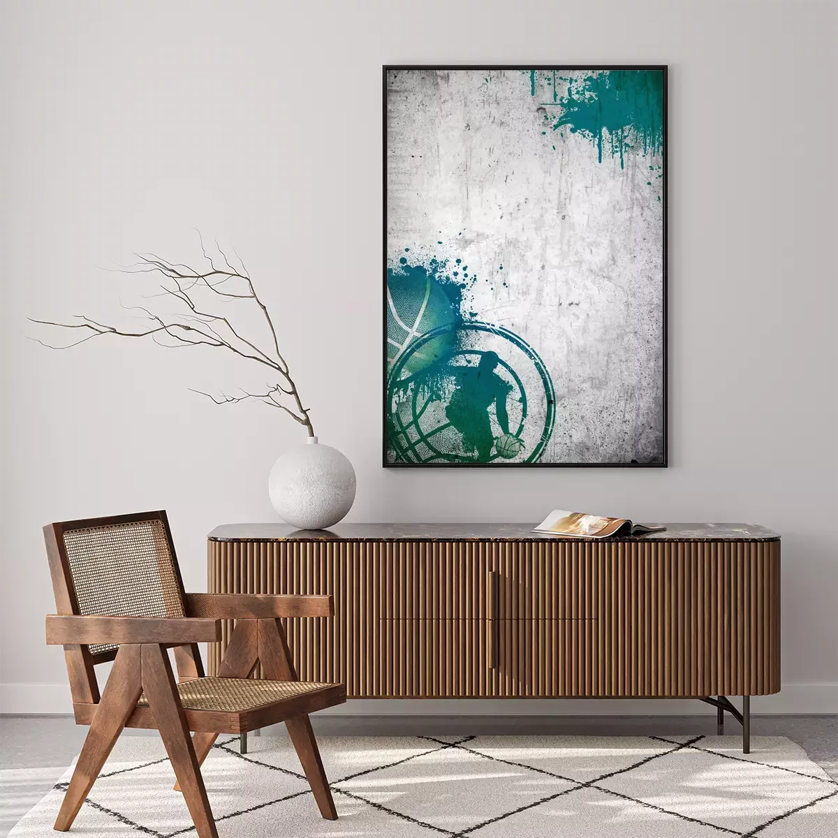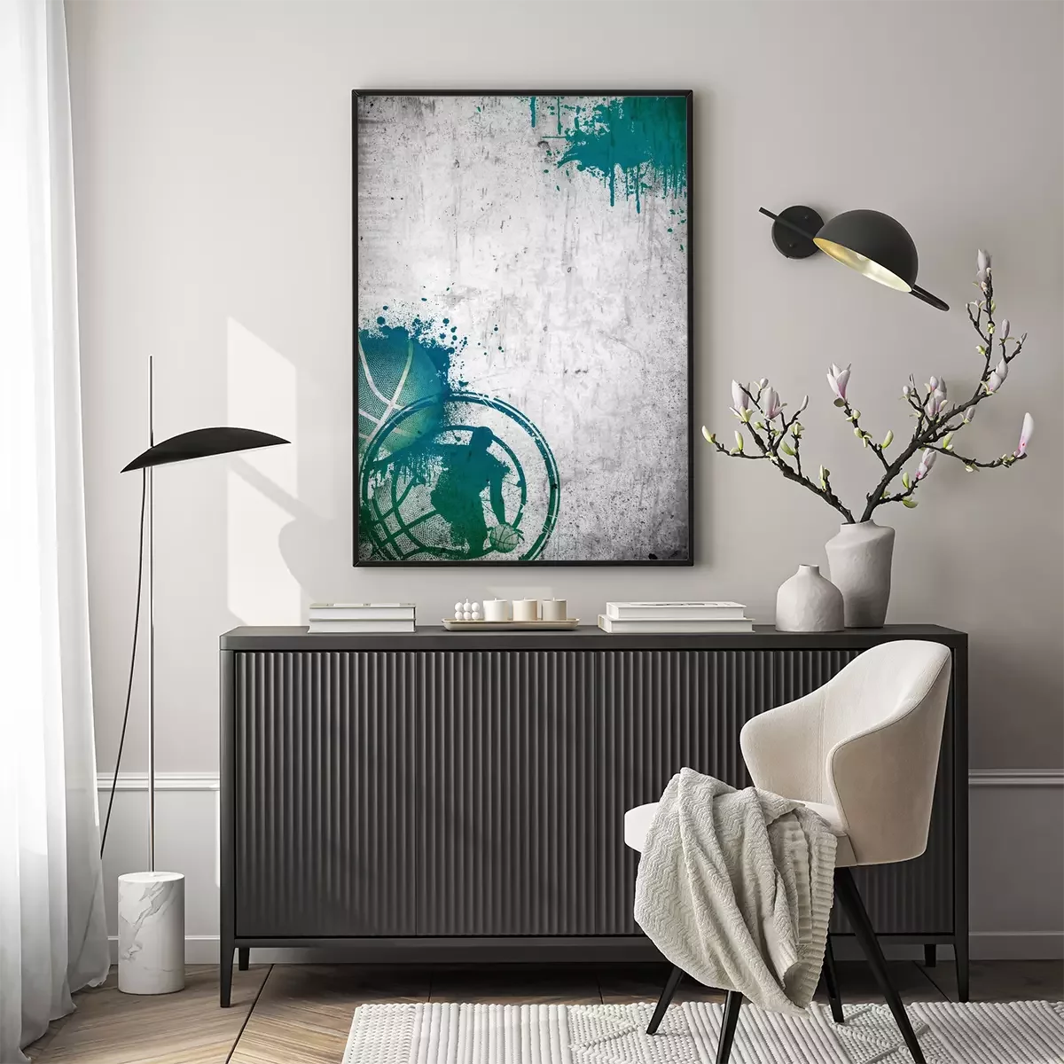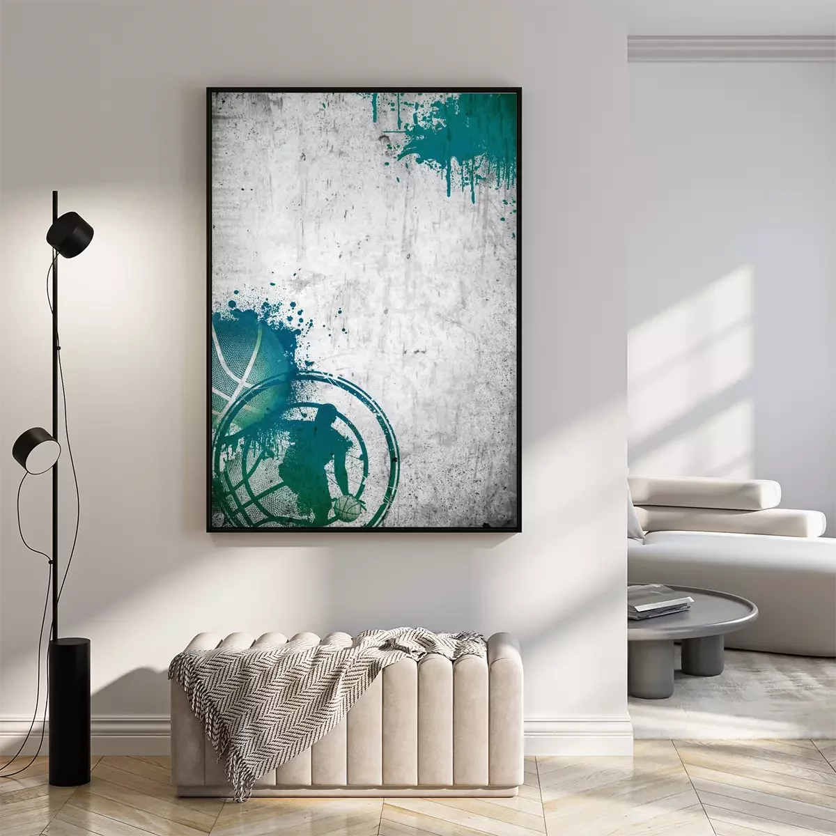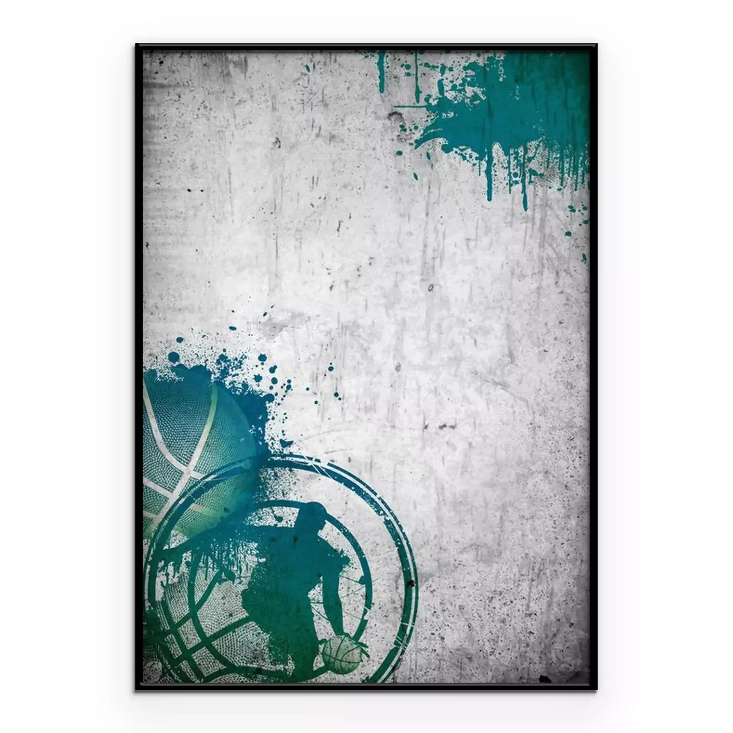 Poster Basketballmotiv und Basketballspieler auf einer Plakatgrafik