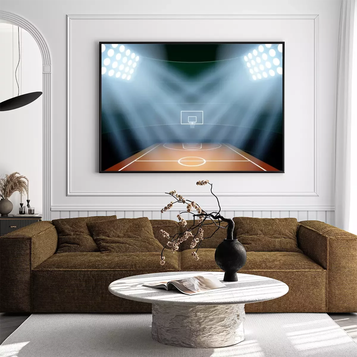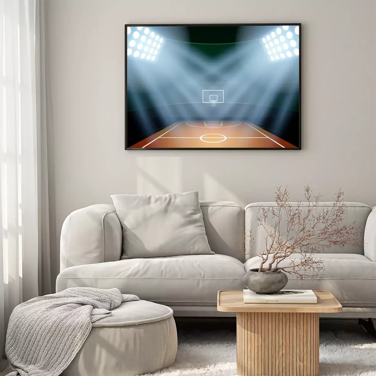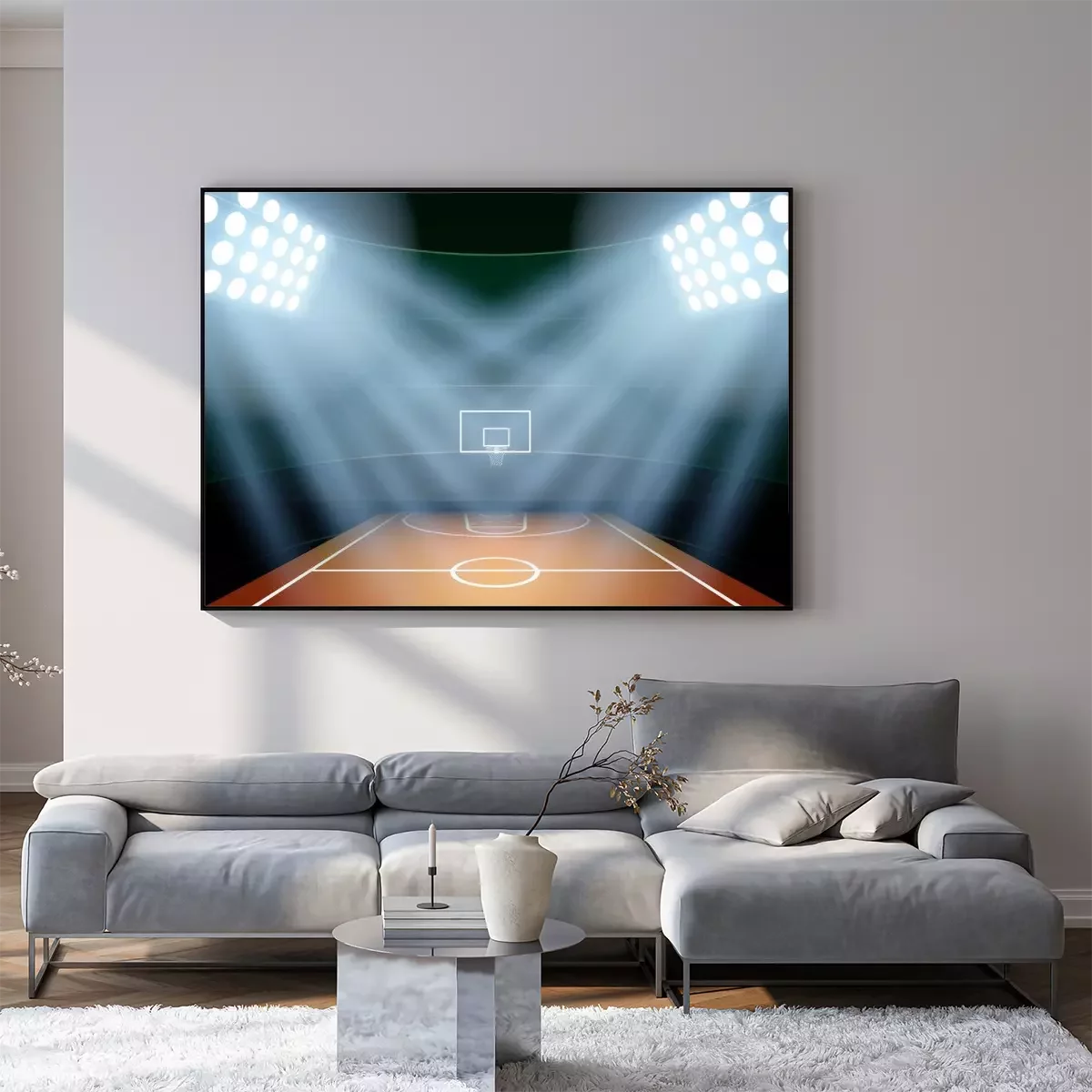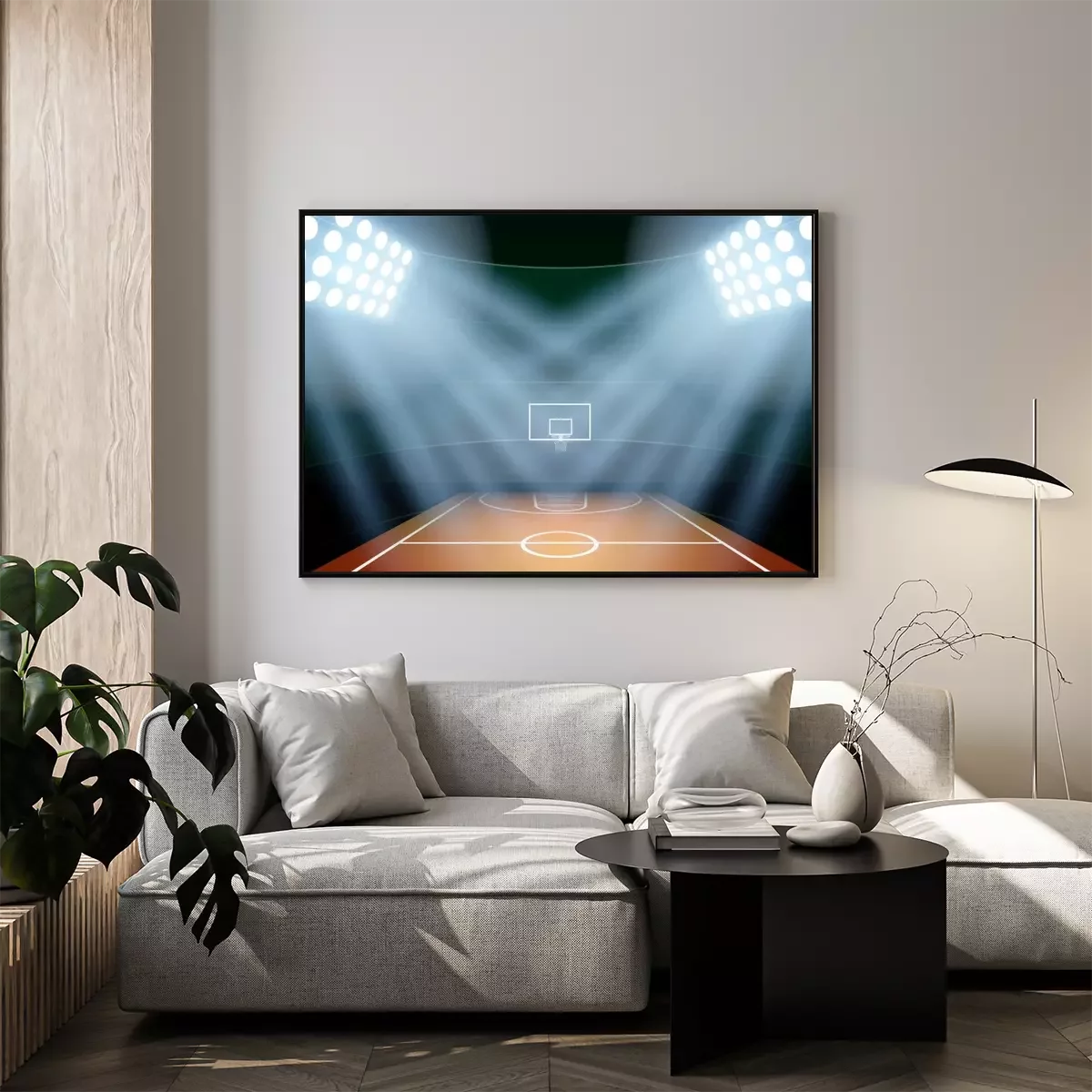 Poster Basketballplatz mit Halogenbeleuchtung