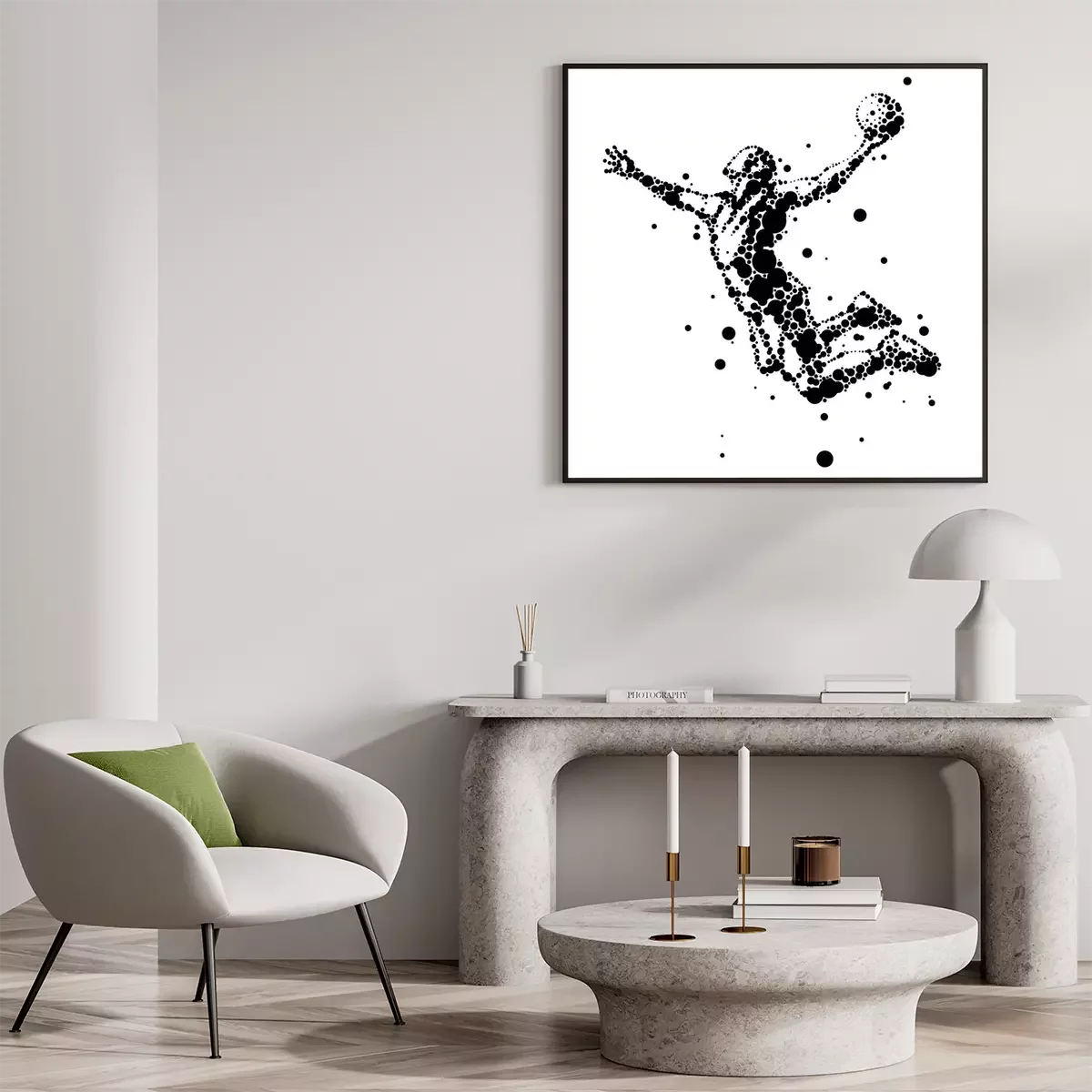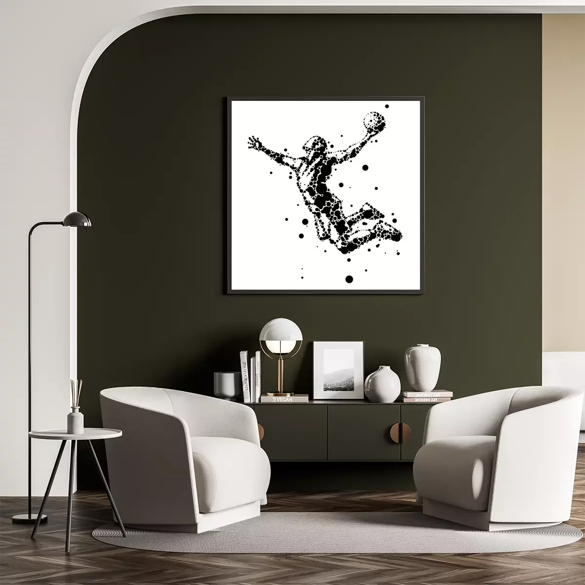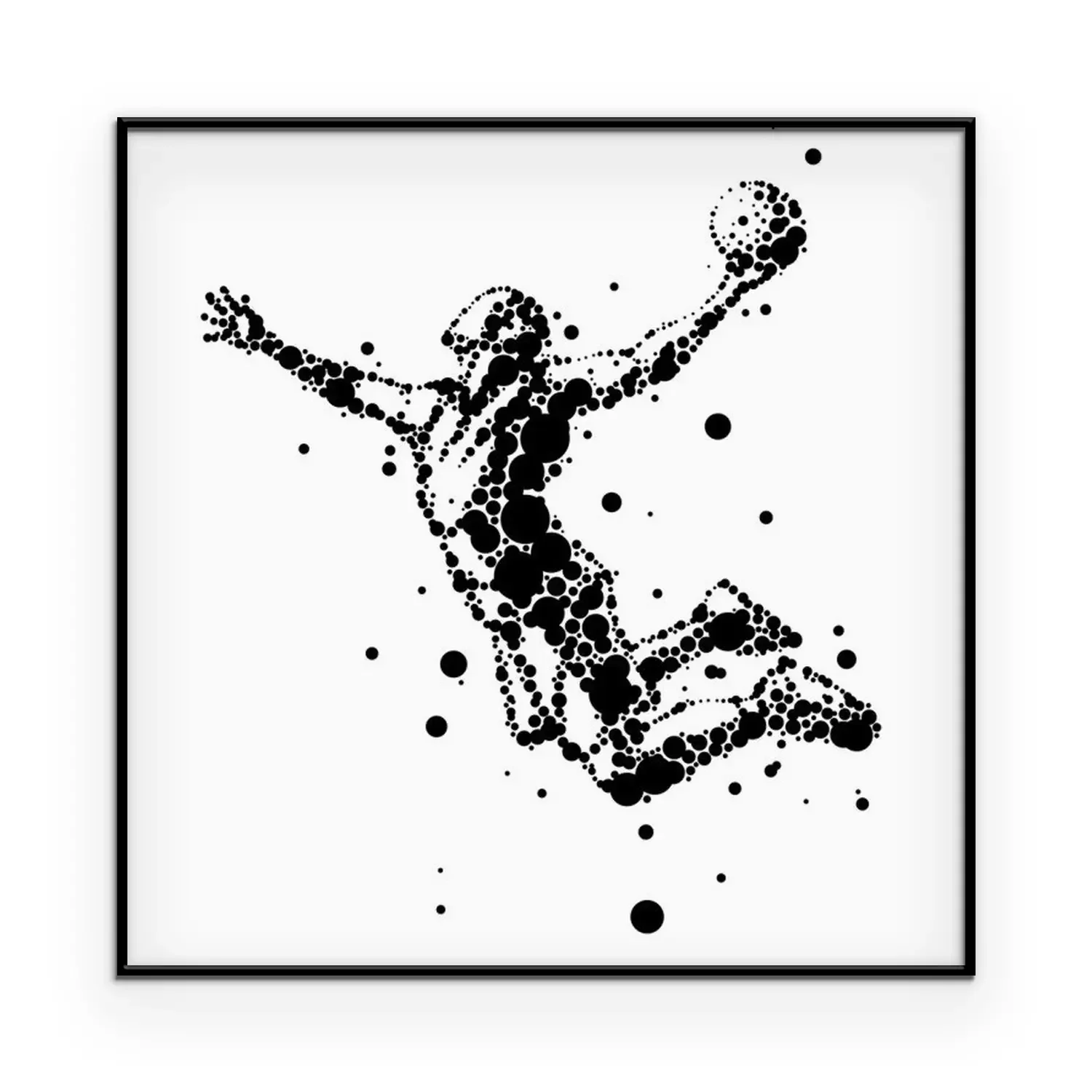 Orangefarbene abstrakte Figur eines Basketballspielers