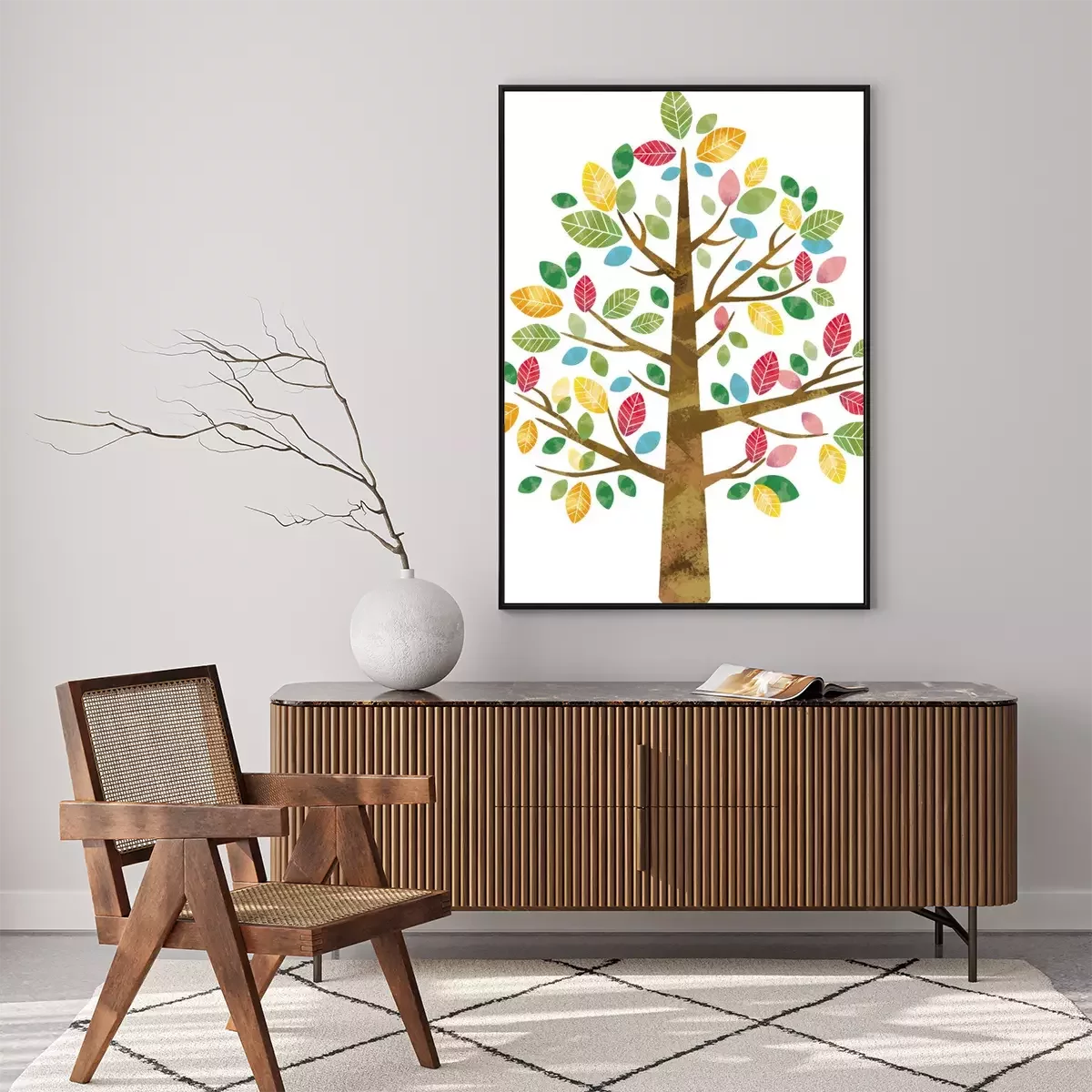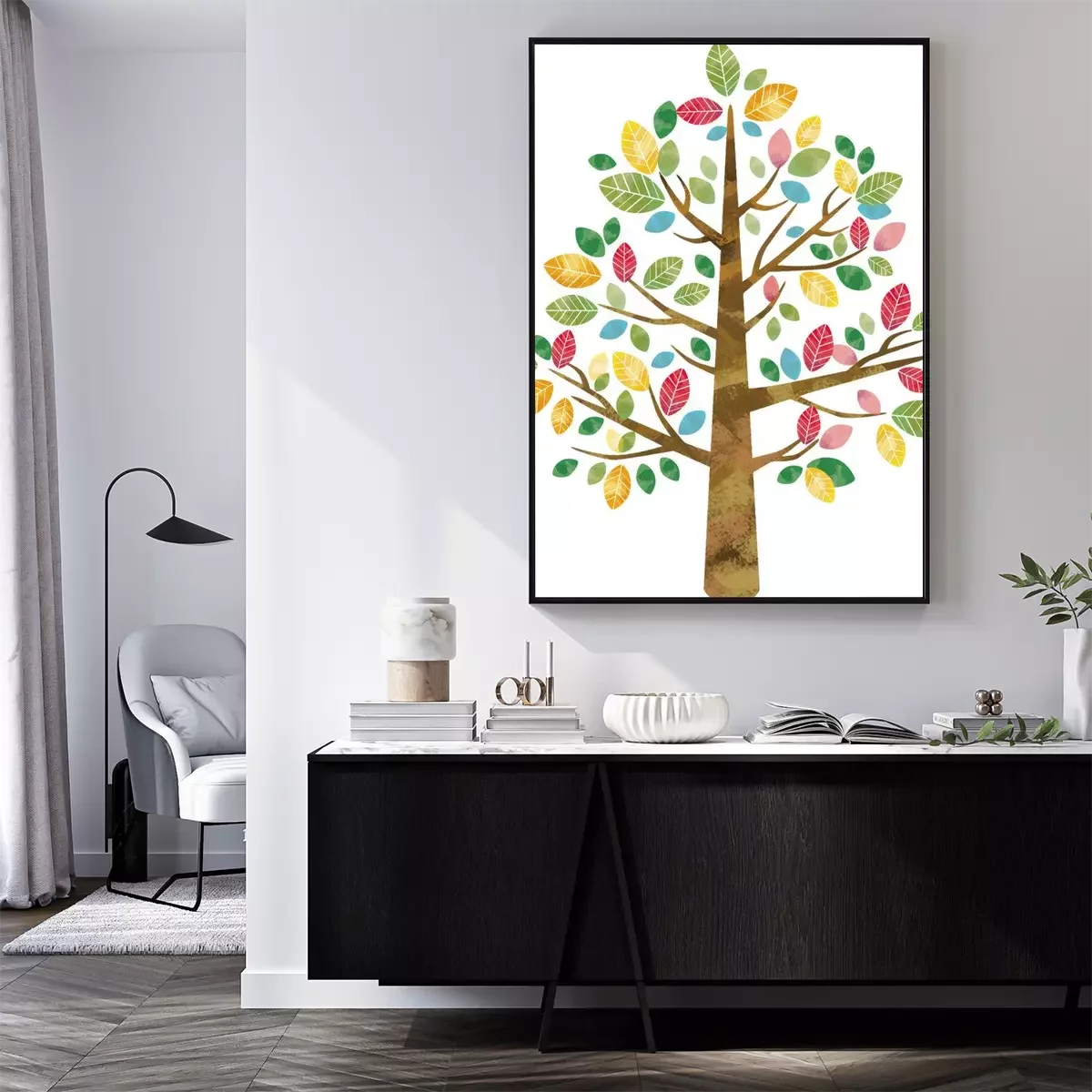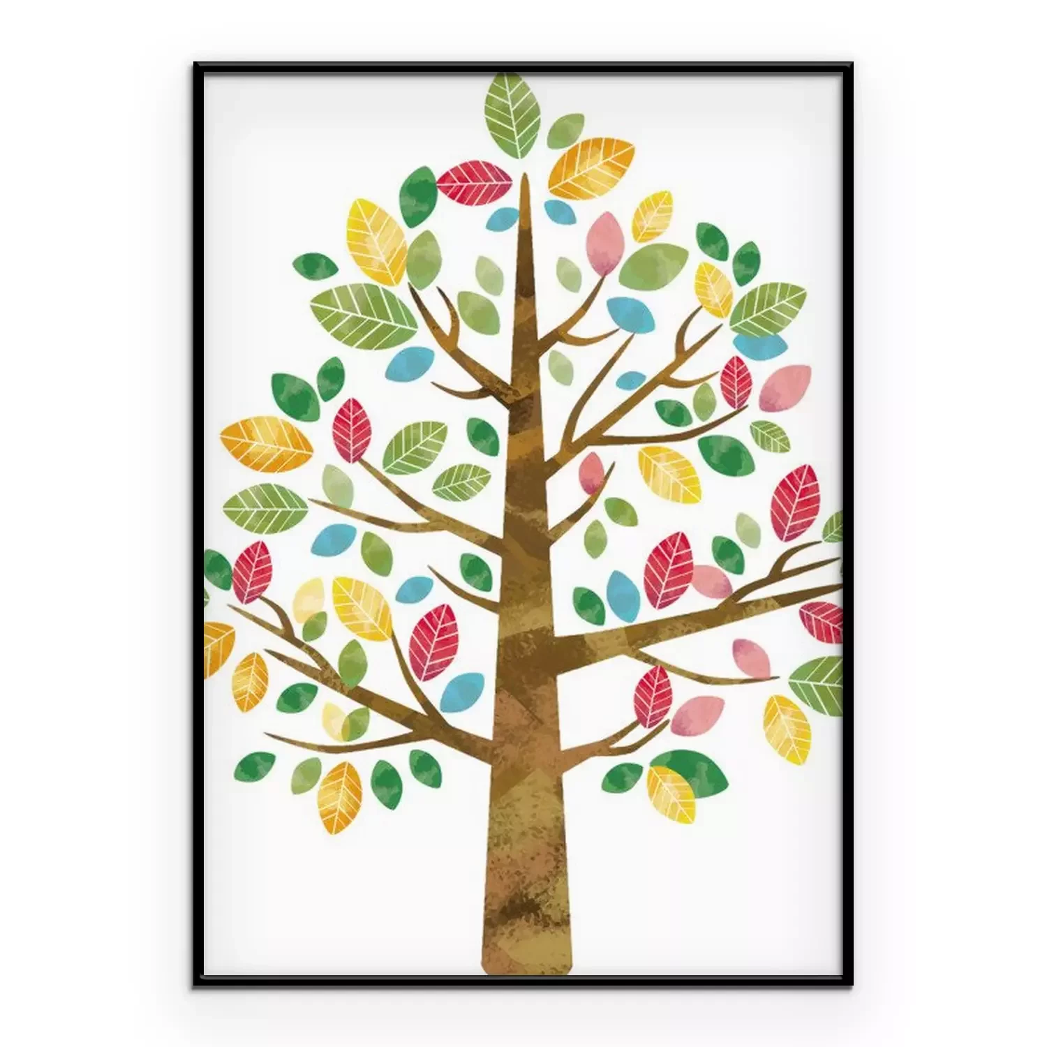 Poster: Baum mit mehrfarbigen Blättern einfache Grafik
