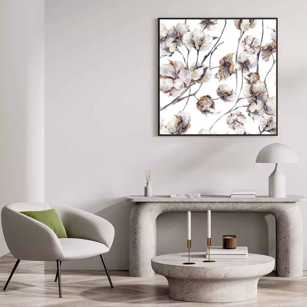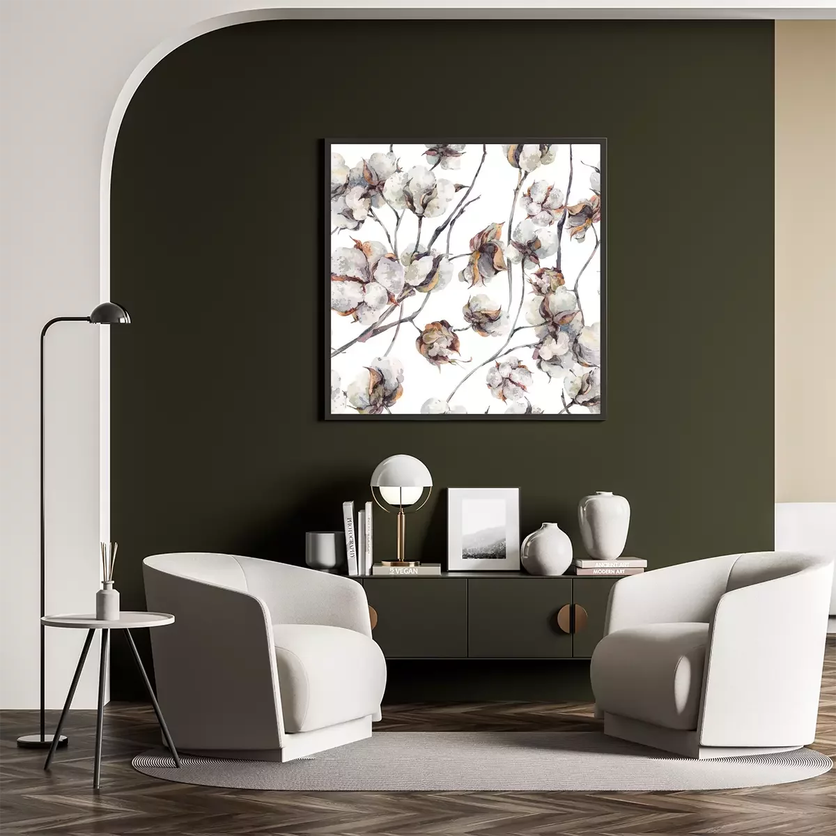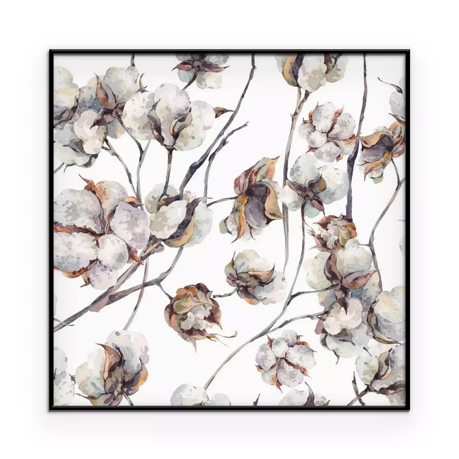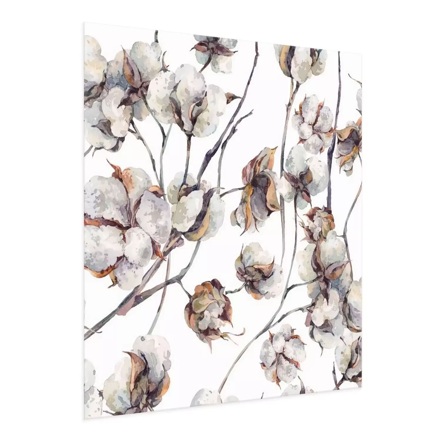 Poster: Baumwollzweige mit Aquarellfarben gemalt auf weißem Hintergrund