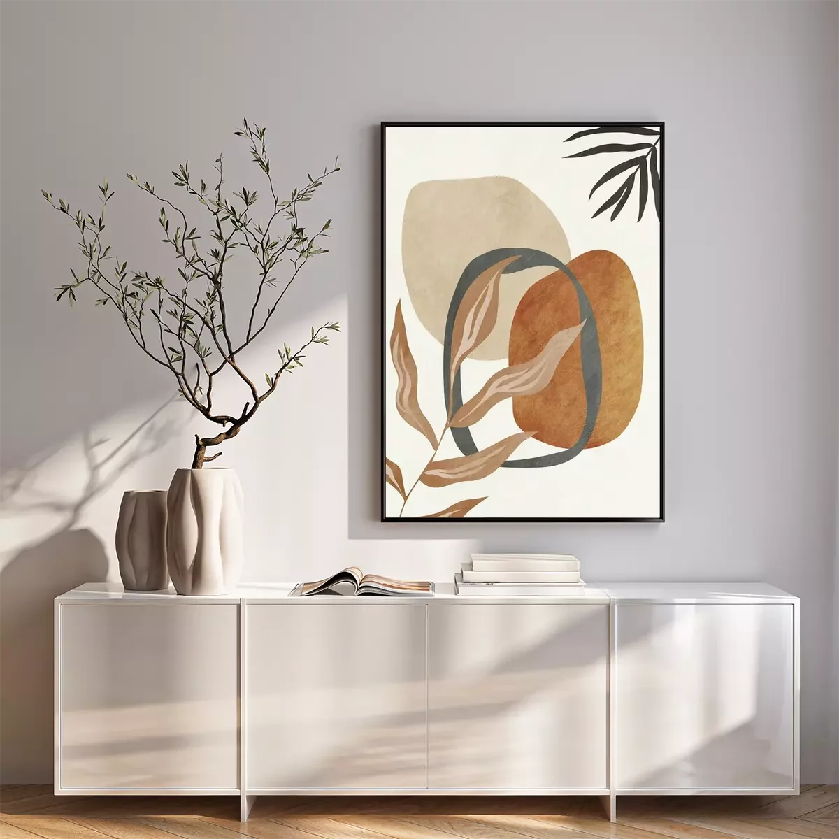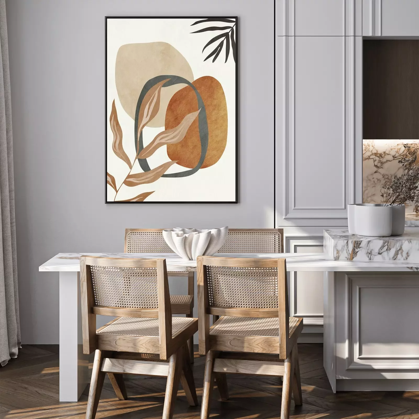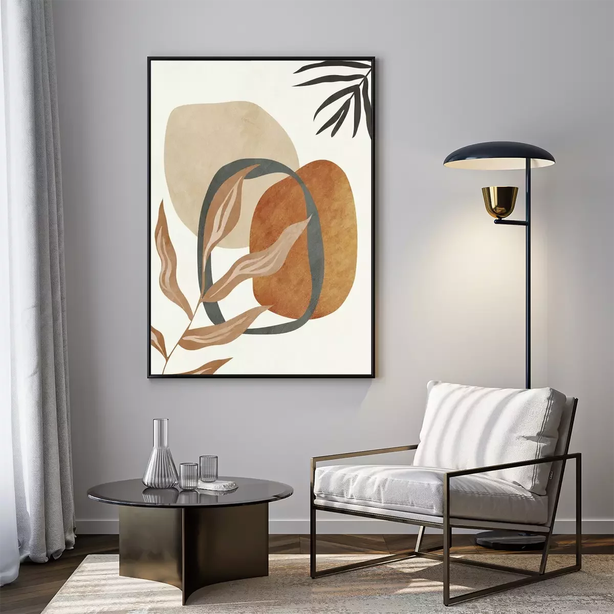 Poster: Beautiful abstract digital art geometric, modern and colorful, nature, botanical, tropical, leaves
