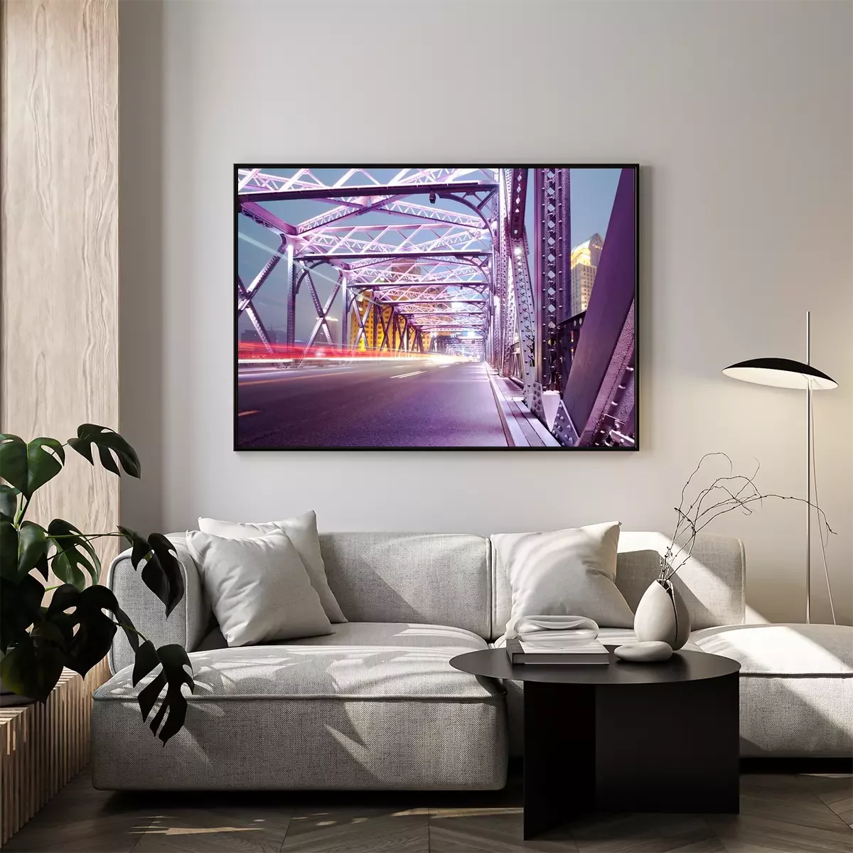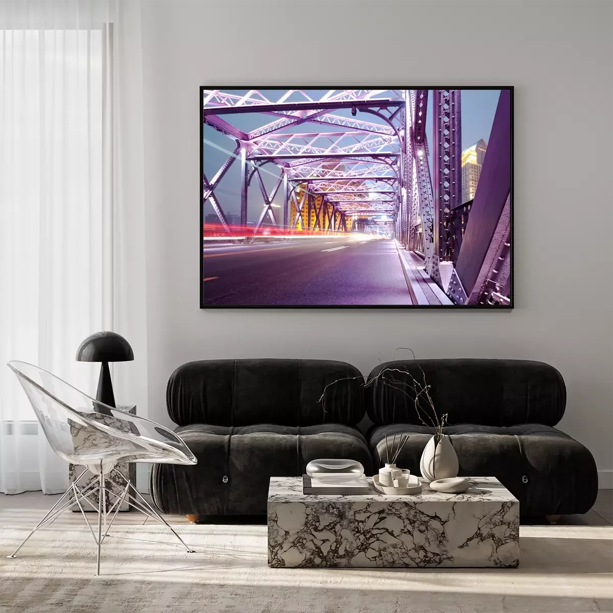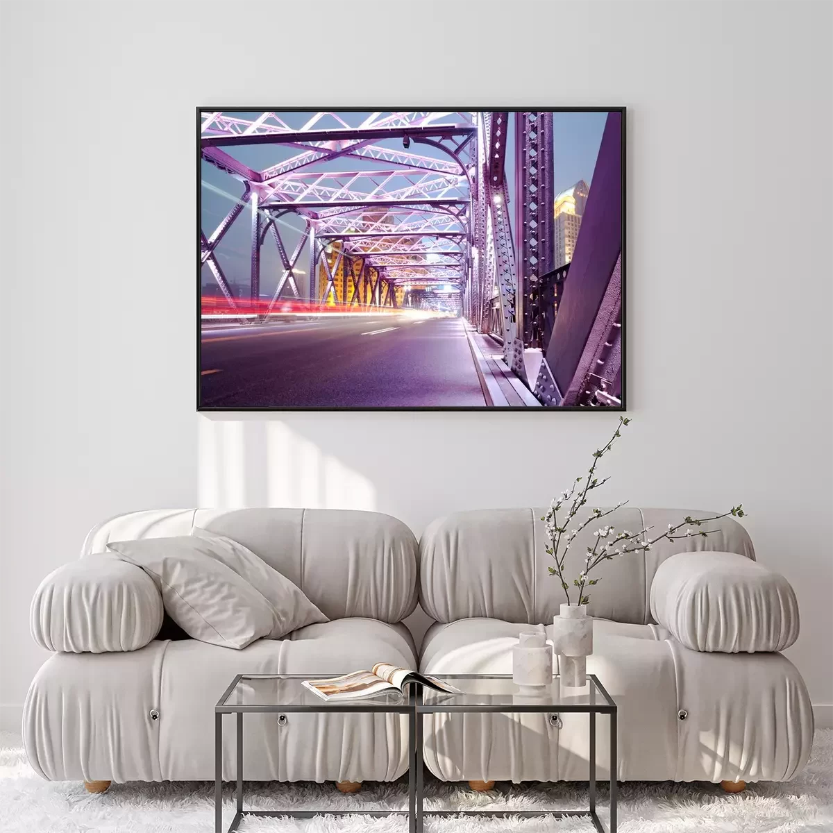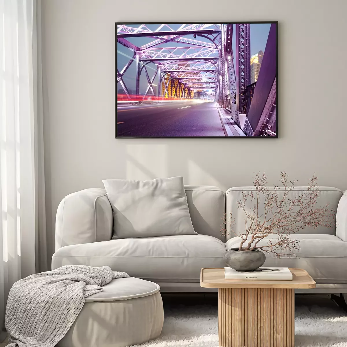 Poster: Beleuchtete Konstruktion der modernen Brücke