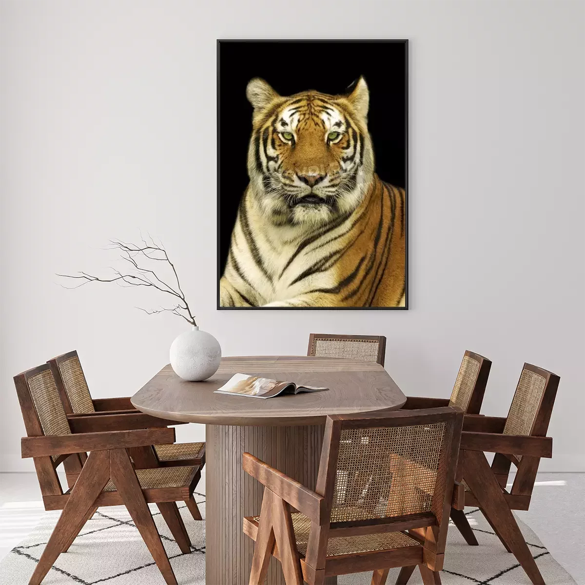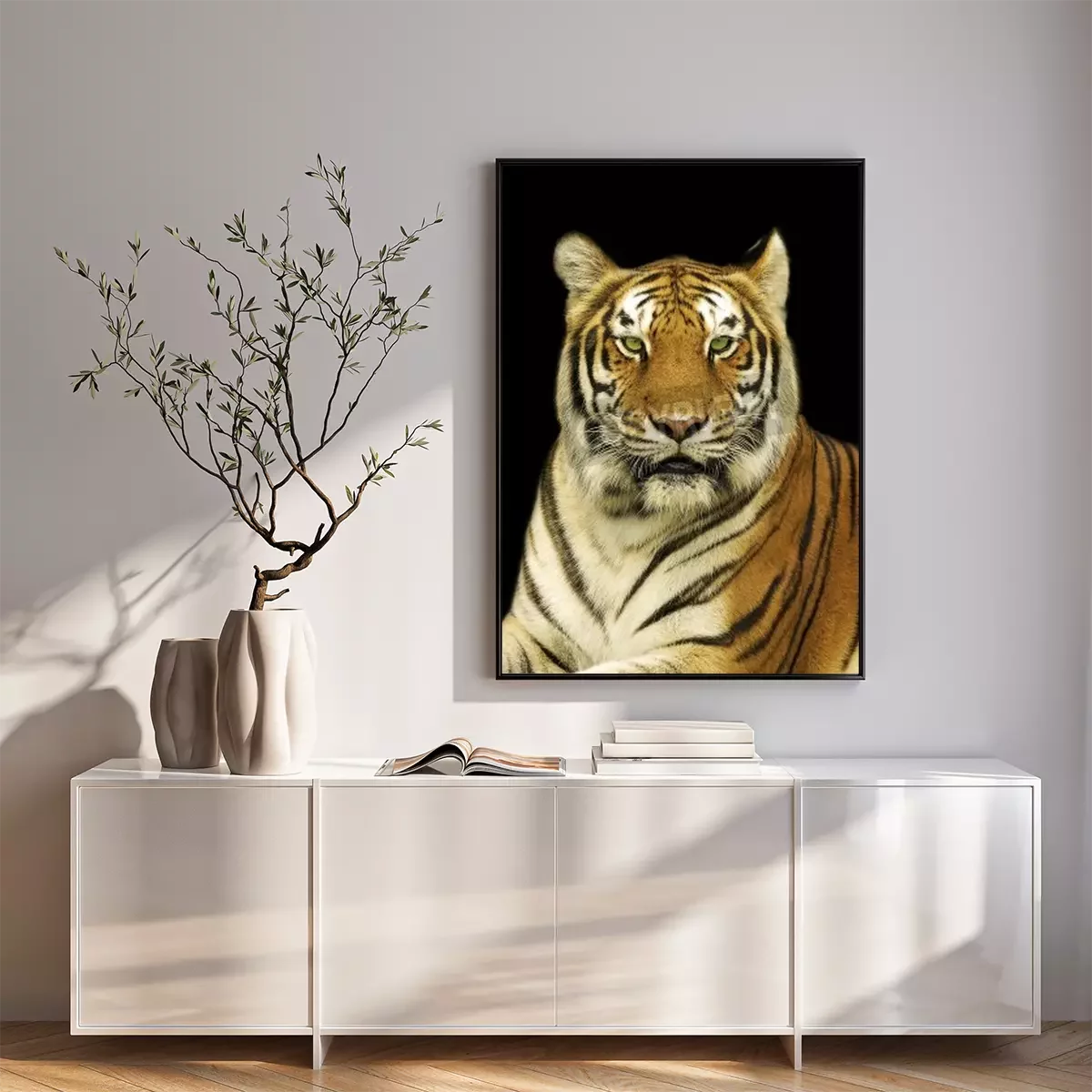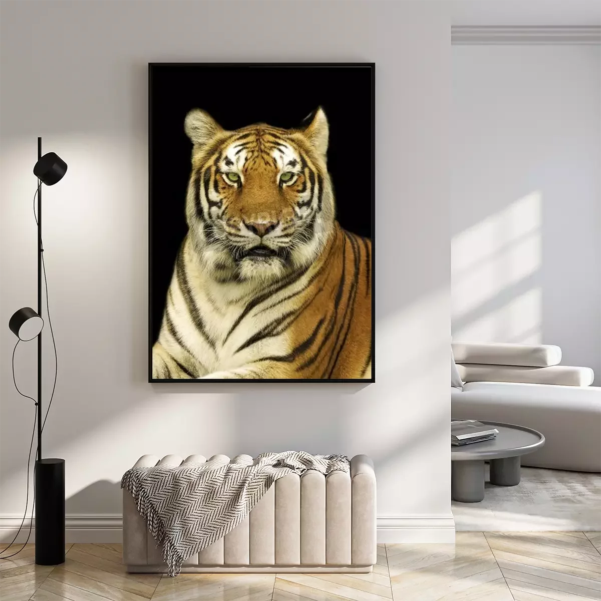 Poster: Bengalischer tiger auf schwarzem hintergrund