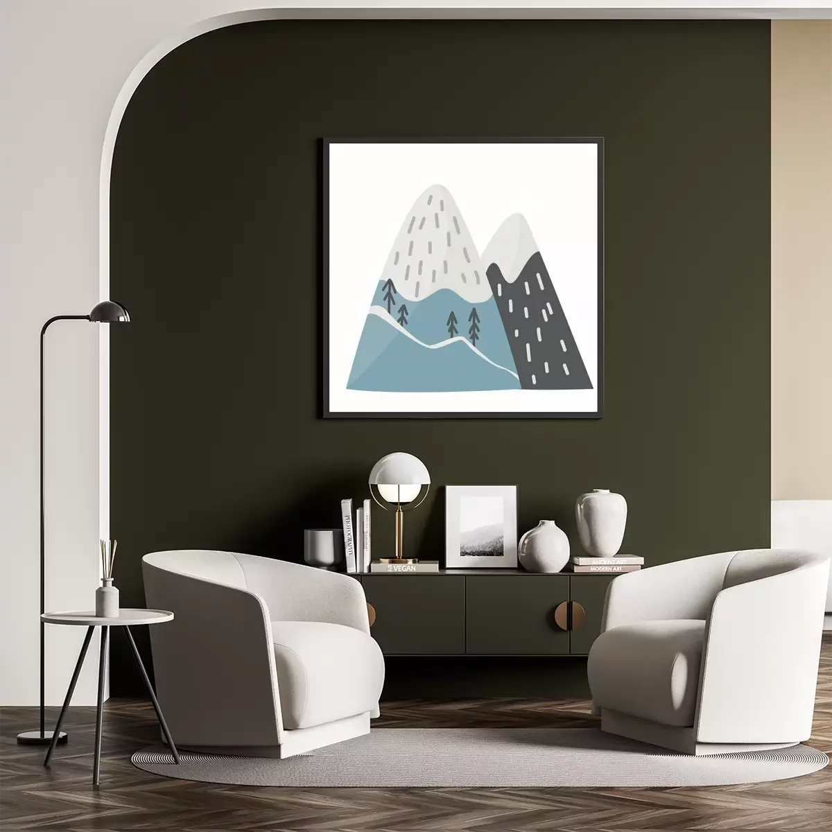 Poster: Berge im skandinavischen Stil auf weißem Hintergrund