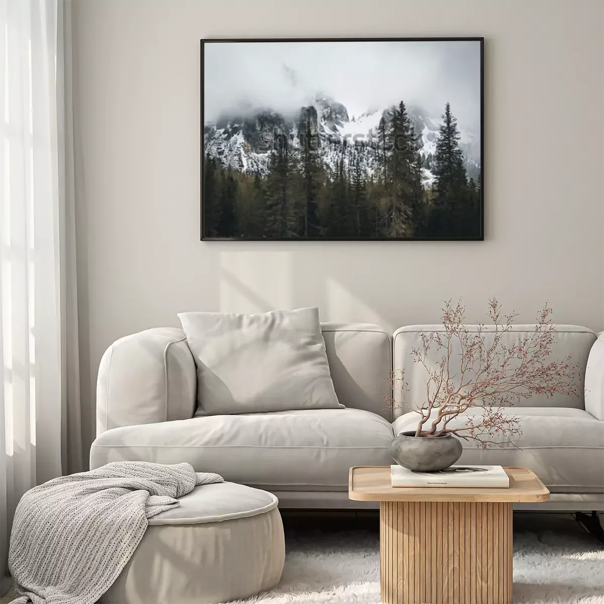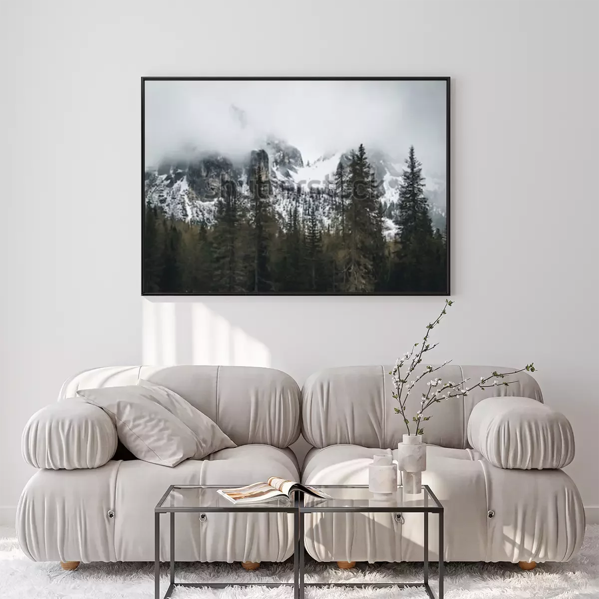 Poster: Berge in Wolken und Schnee