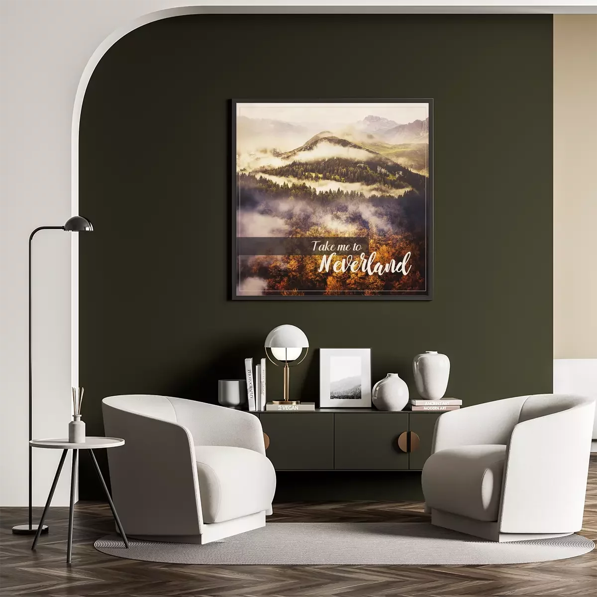 Poster: Berglandschaft mit Aufschrift über Neverland