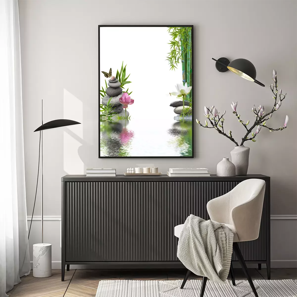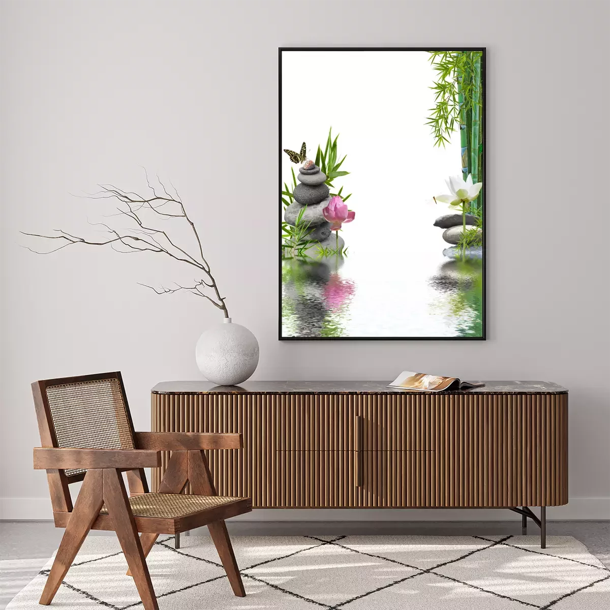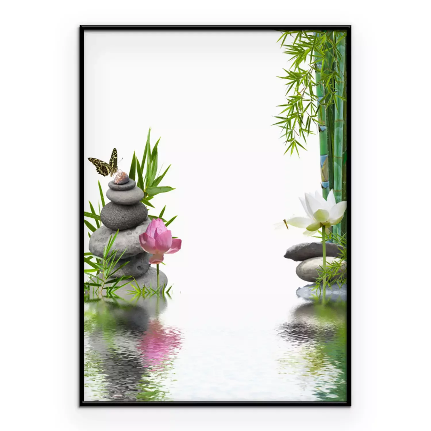 Poster: Bewachsene Steine, umgeben von Grünpflanzen