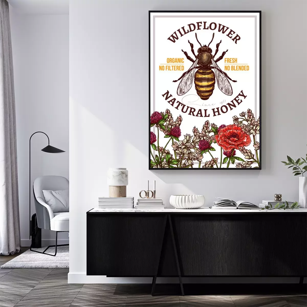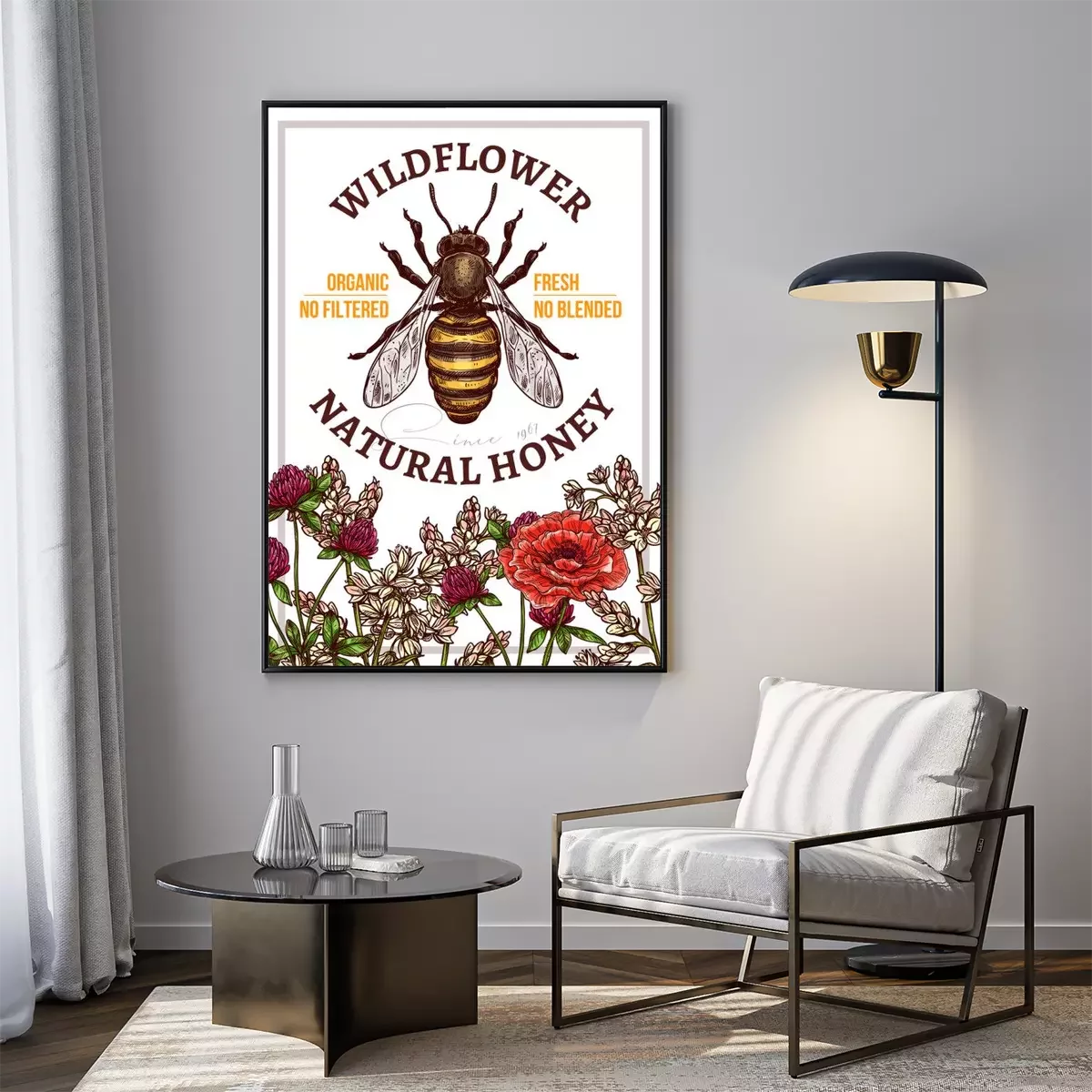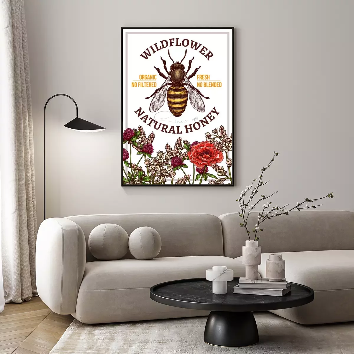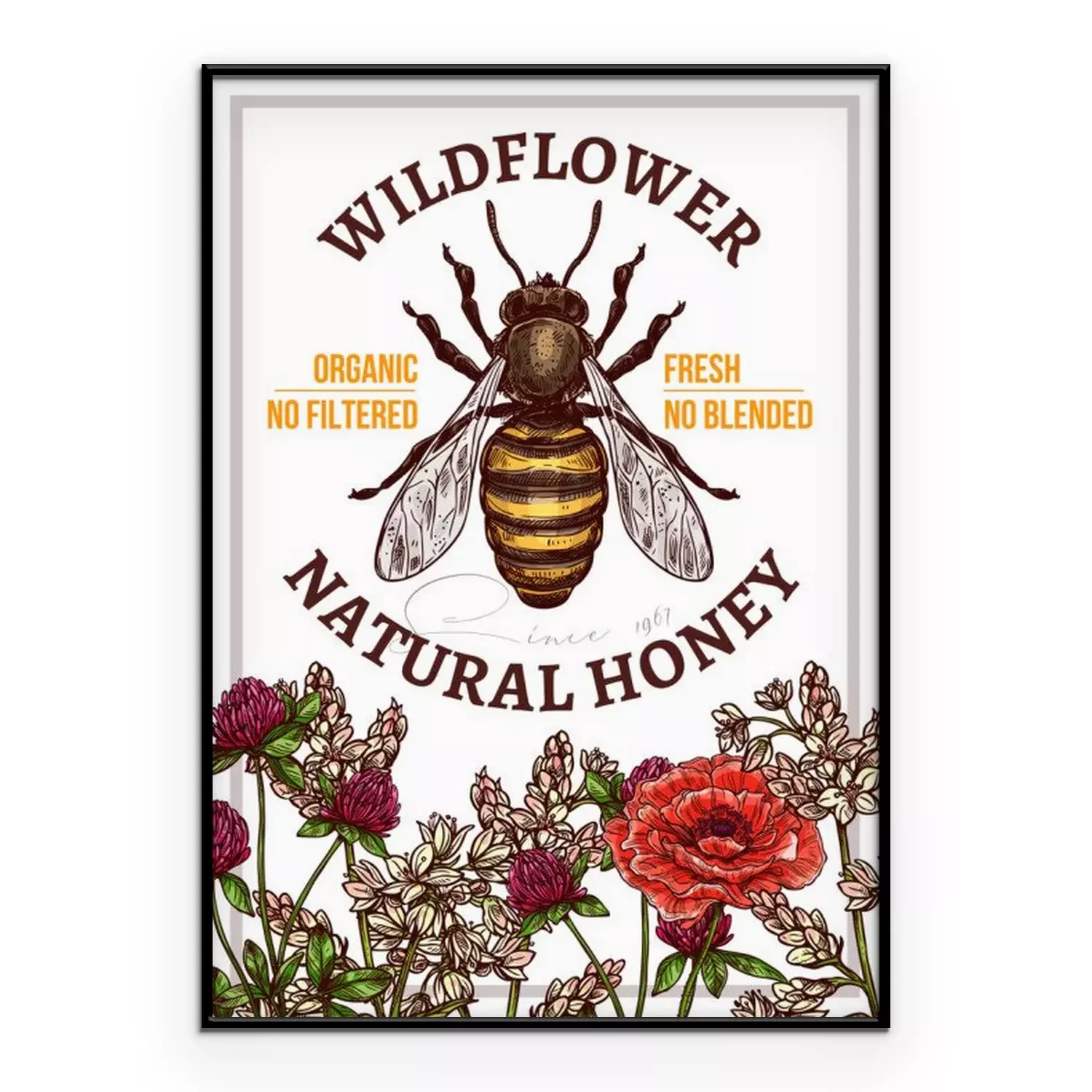 Poster: Biene, Mohnblumen und andere Blumen auf einer Grafik