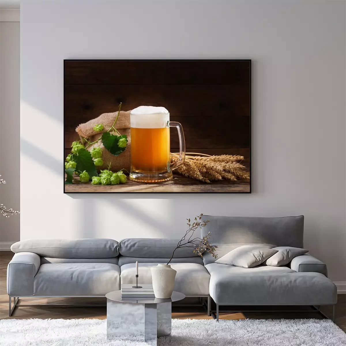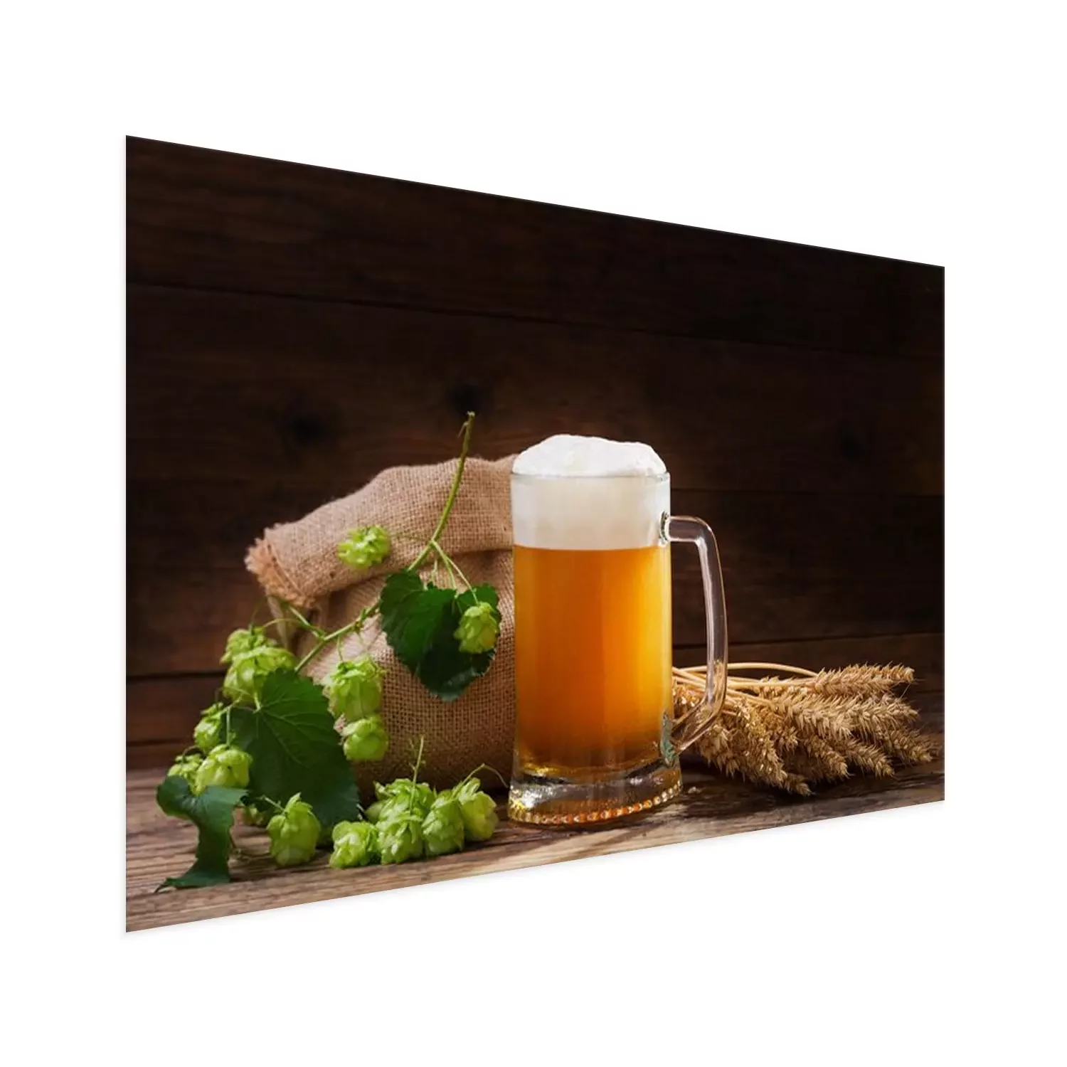 Poster: Bier vor dem Hintergrund von Ähren und Hopfen