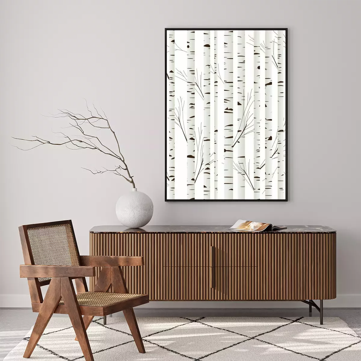 Poster: Birkenstämme minimalistisch auf weißem Hintergrund