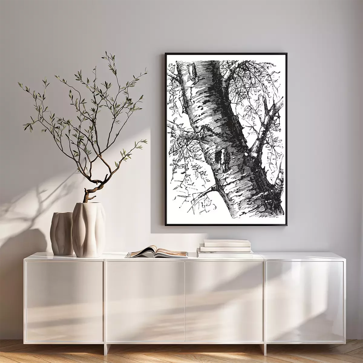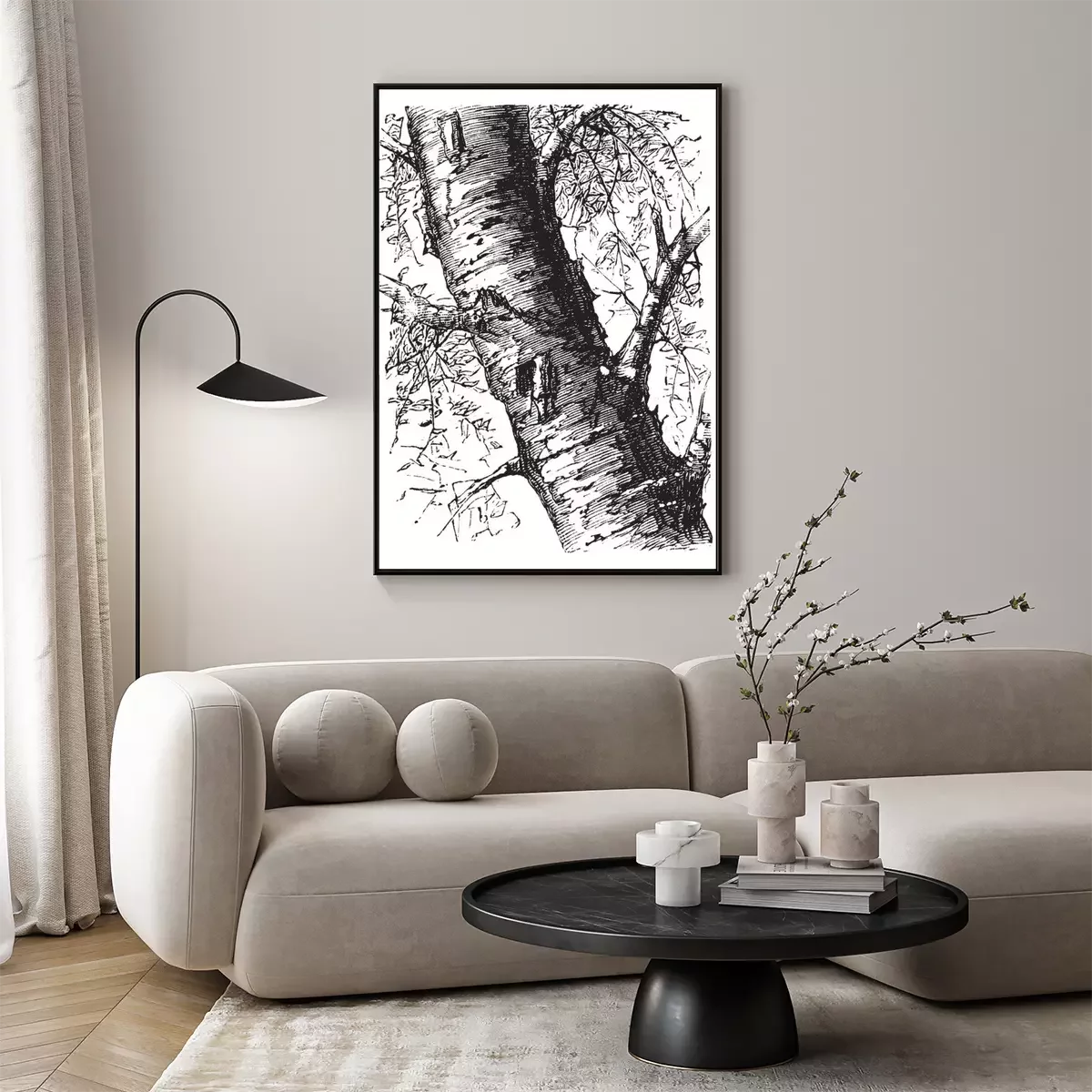 Poster: Birkenstamm aus nächster Nähe Skizze