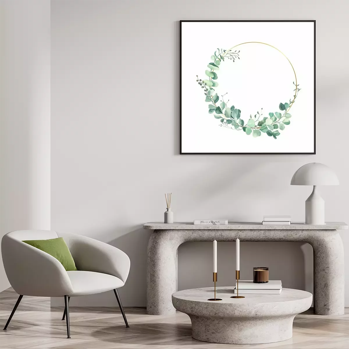 Poster Blätterkranz auf Goldreifen