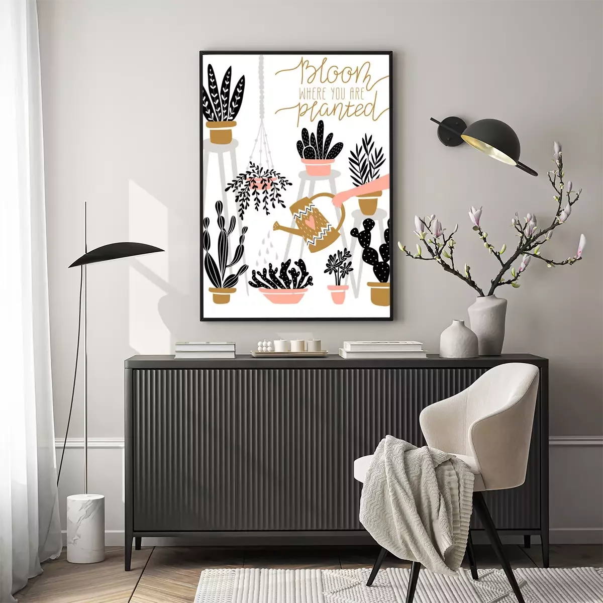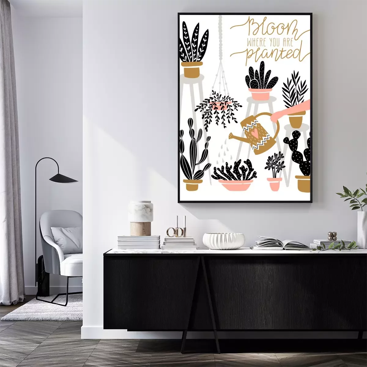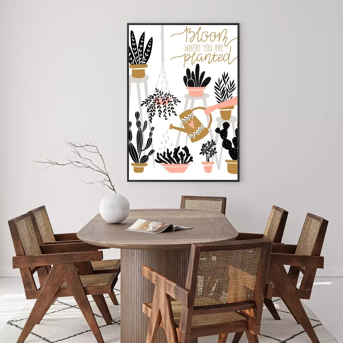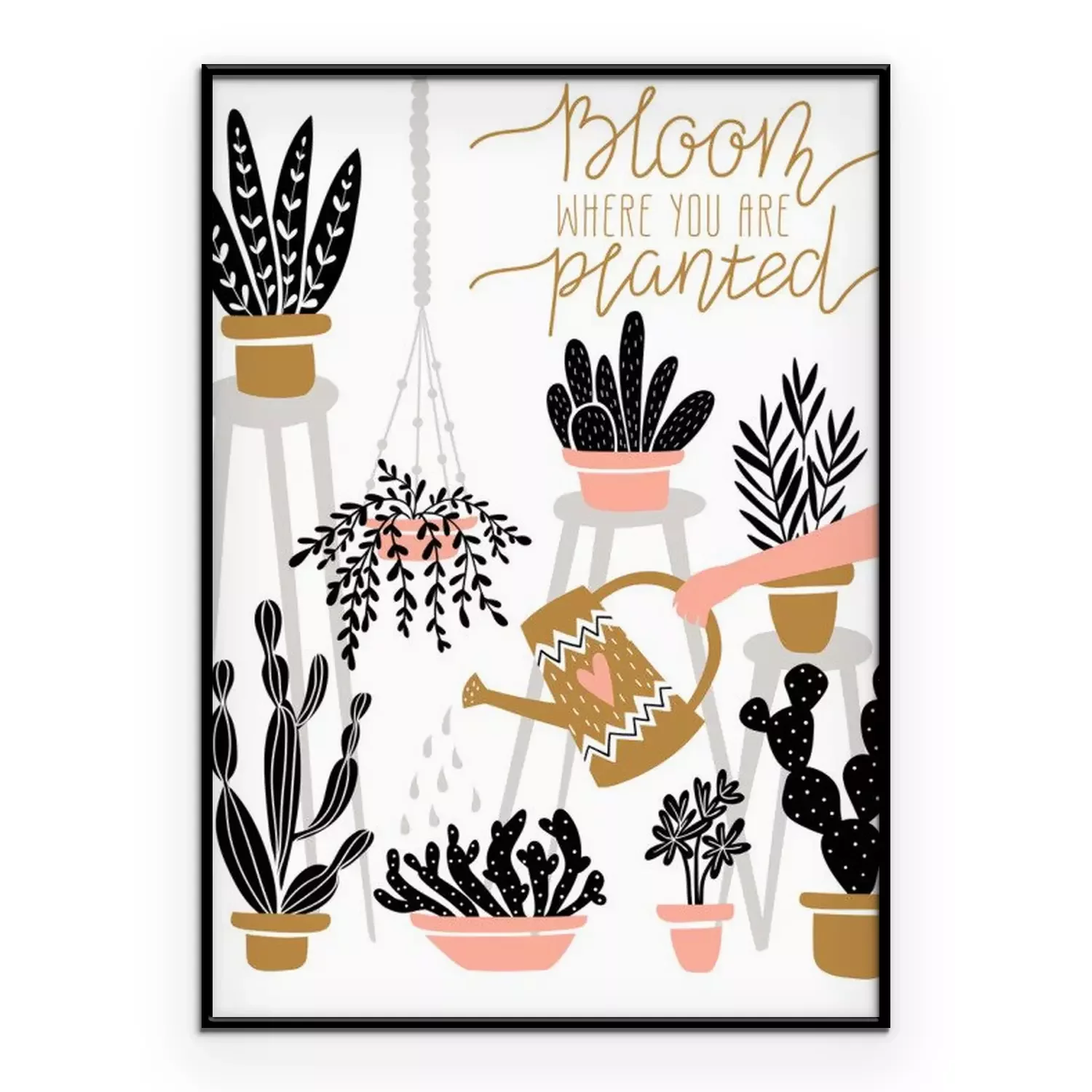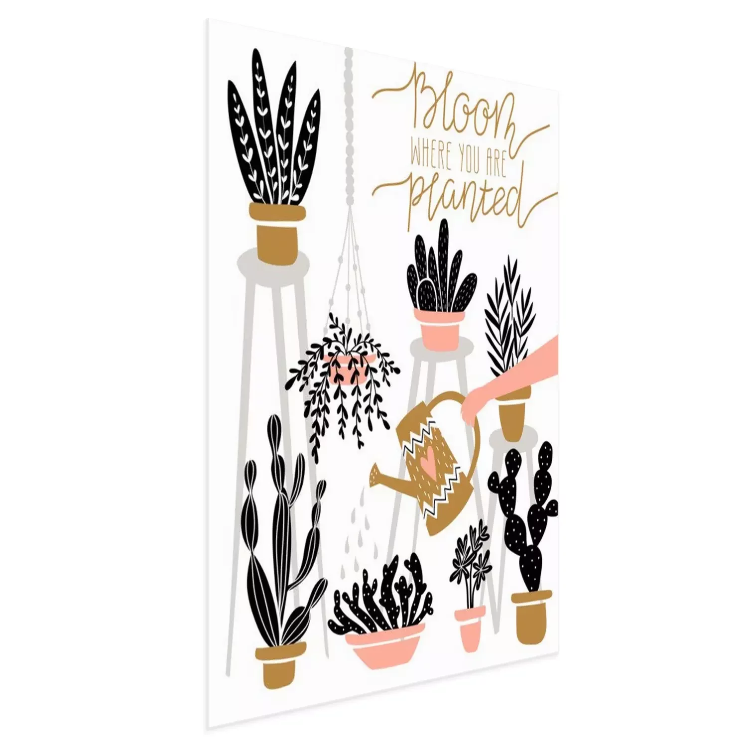 Poster: Blattpflanzen und Kakteen in bunten Töpfen