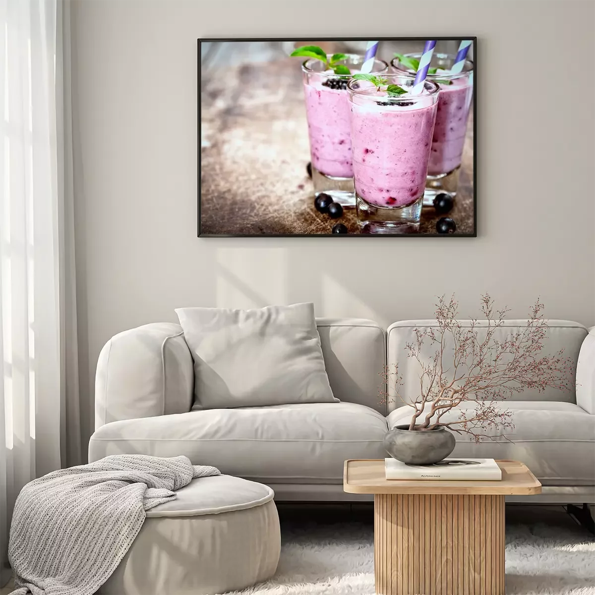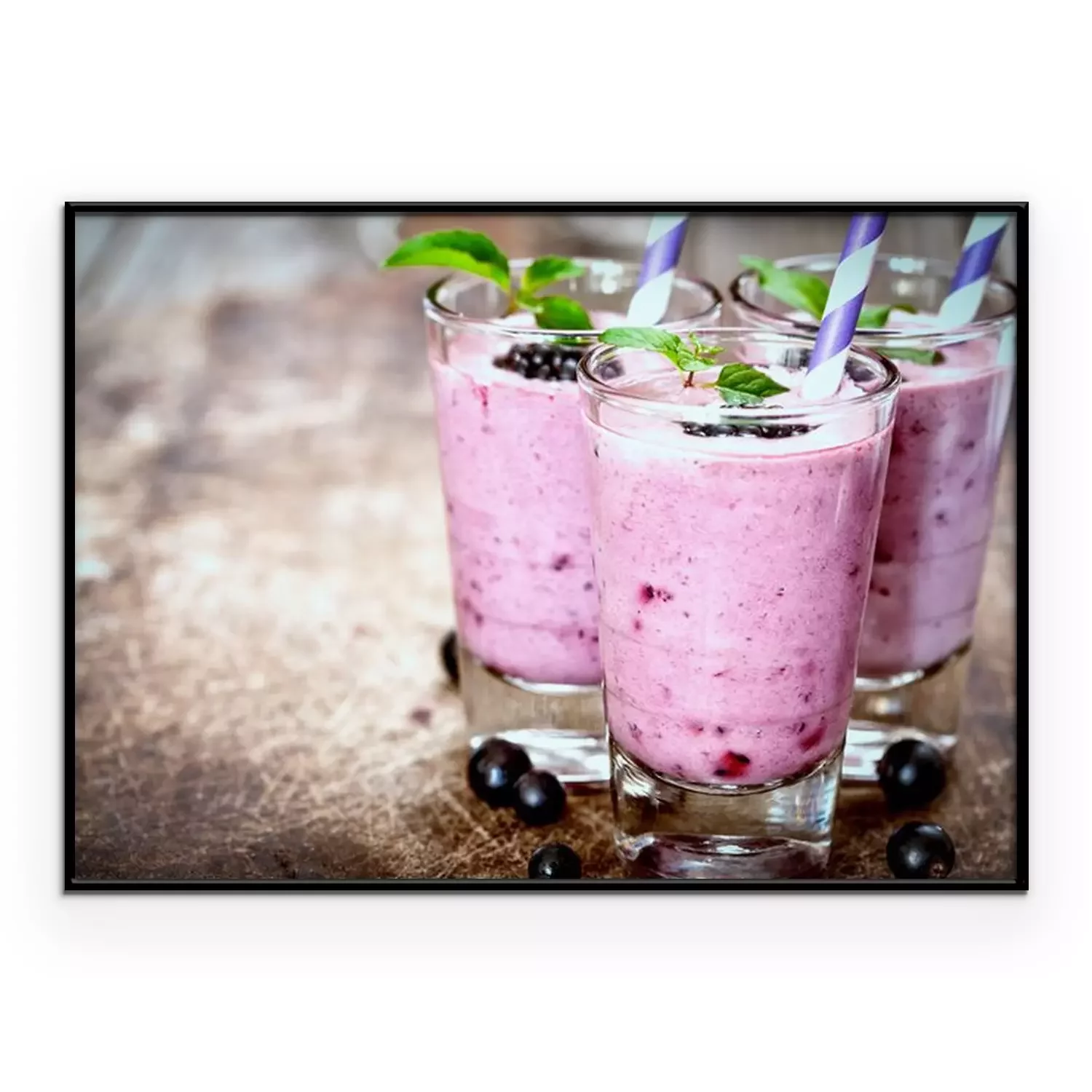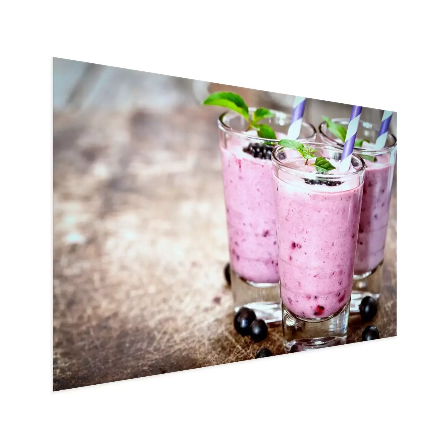 Poster: Blaubeer-Smoothie mit bunten Strohhalmen