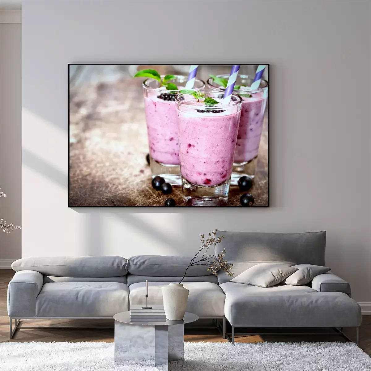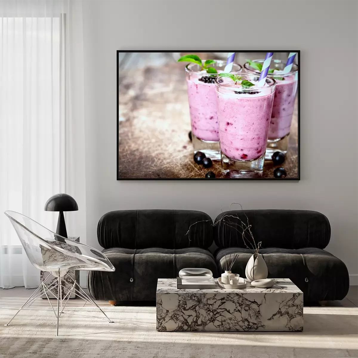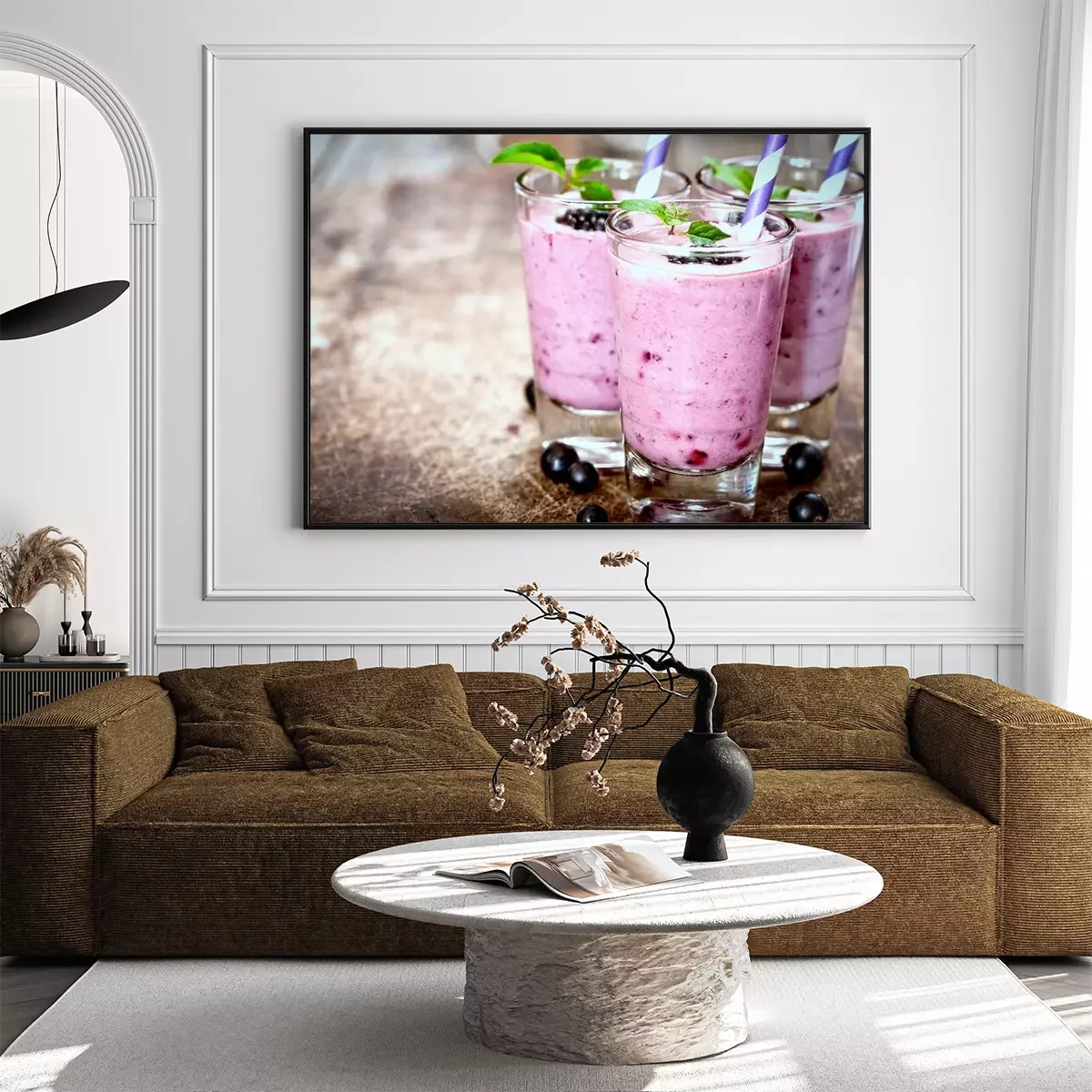 Poster: Blaubeer-Smoothie mit bunten Strohhalmen