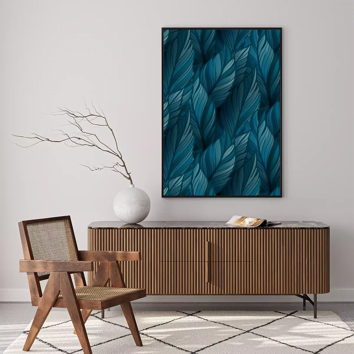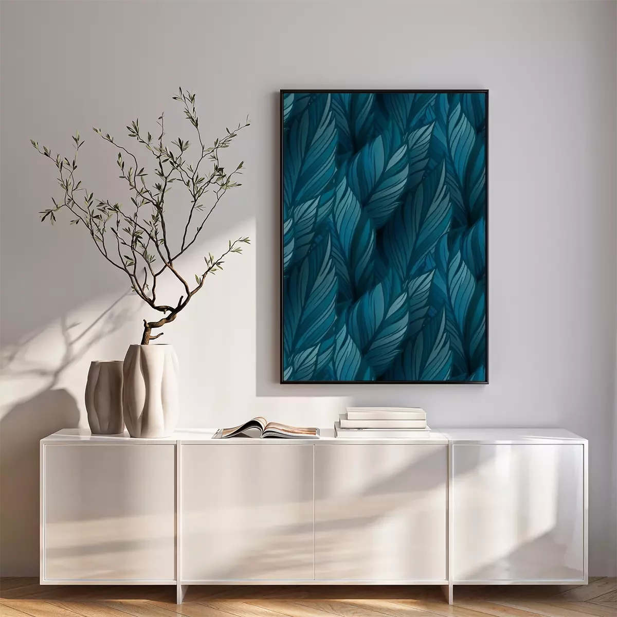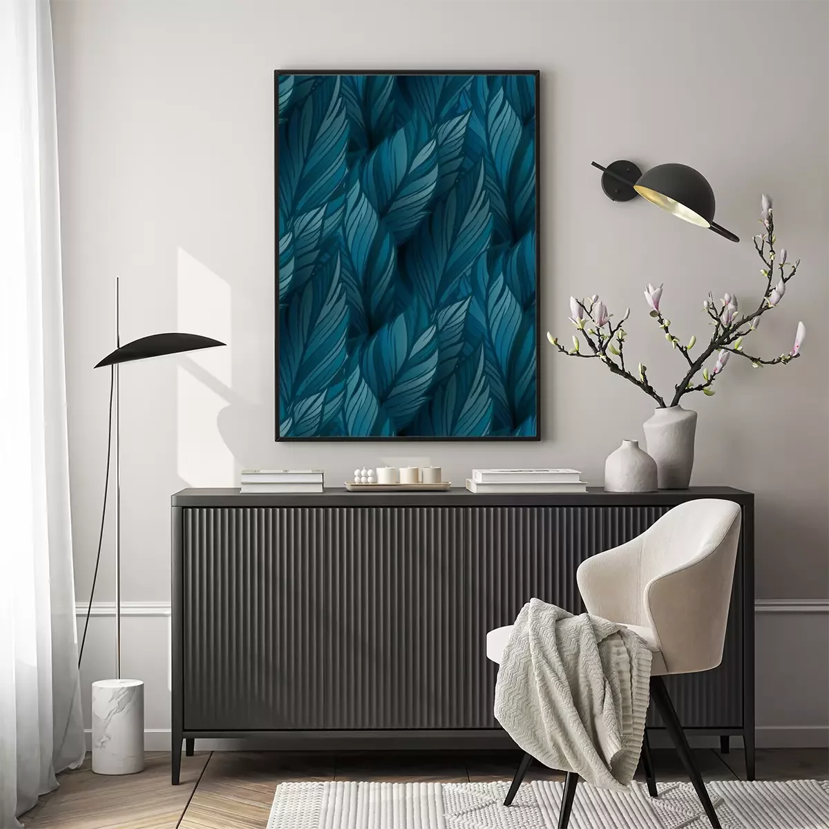 Poster: Blaue Blätter bilden einen einheitlichen Hintergrund