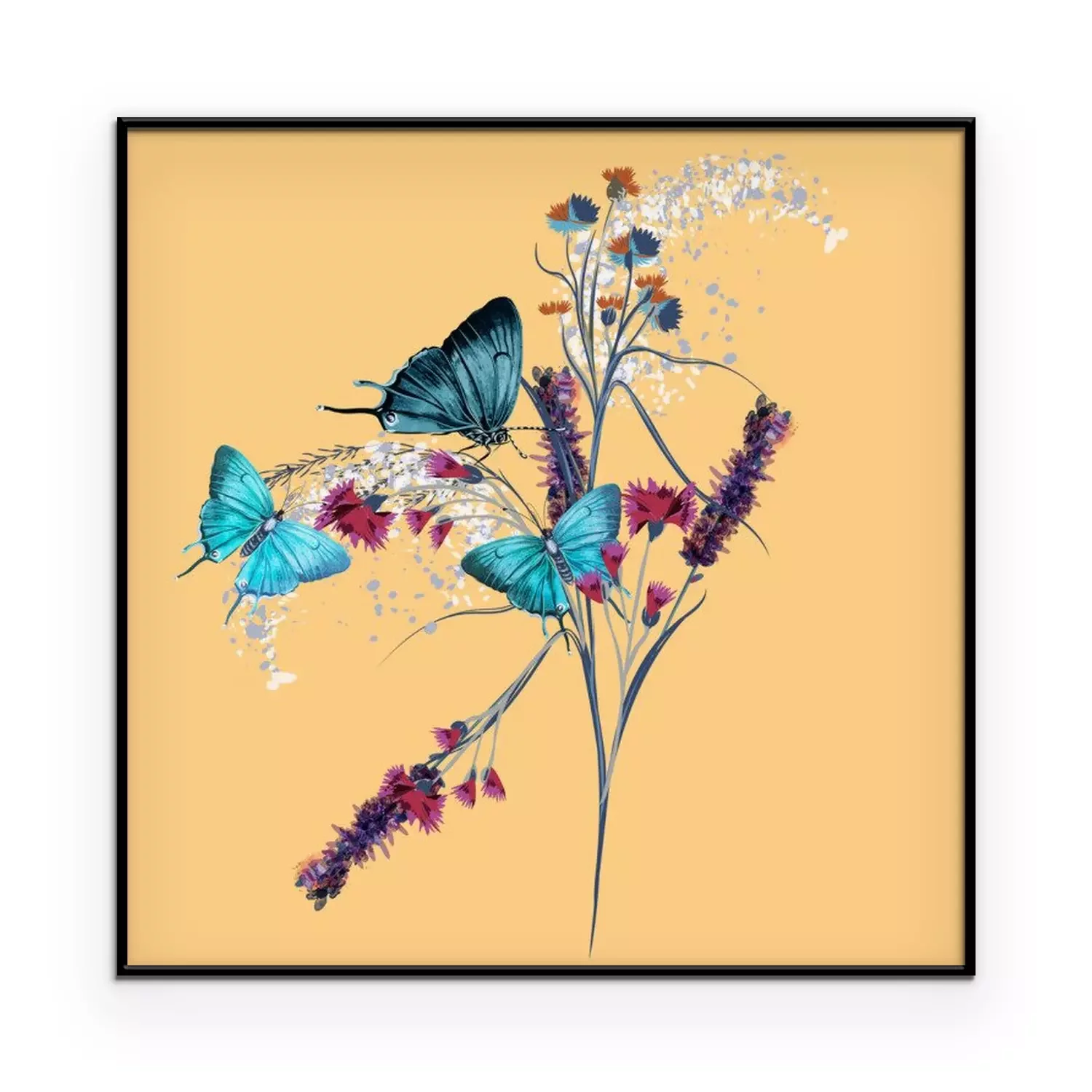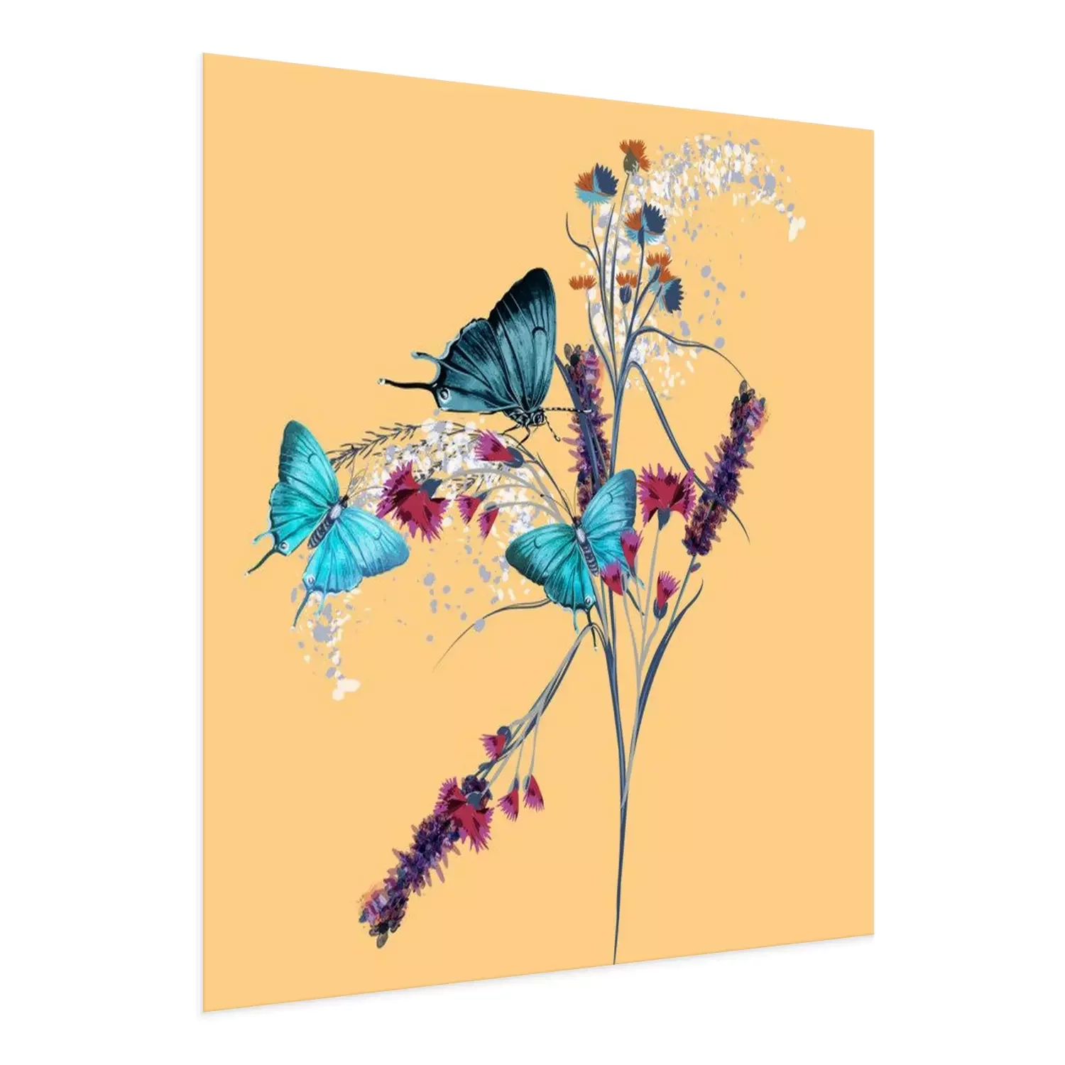 Poster: Blaue Schmetterlinge und ein Blumenzweig