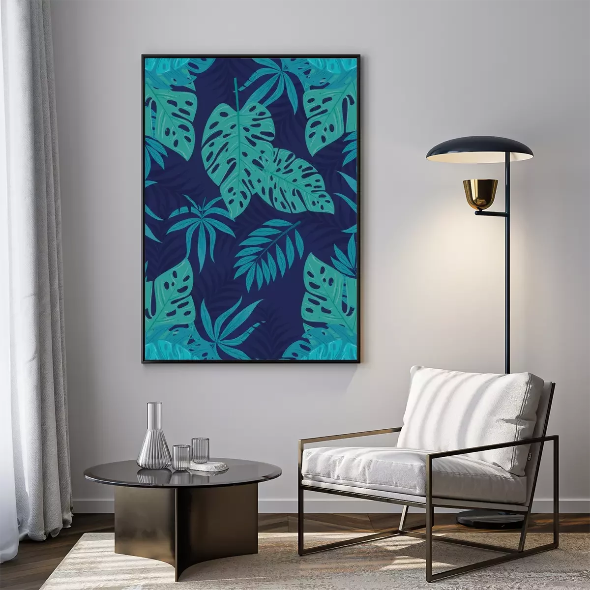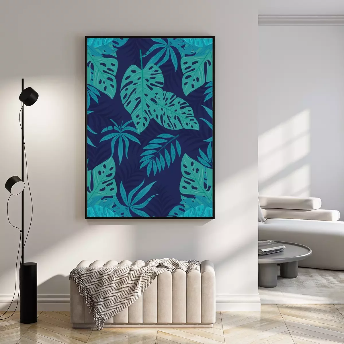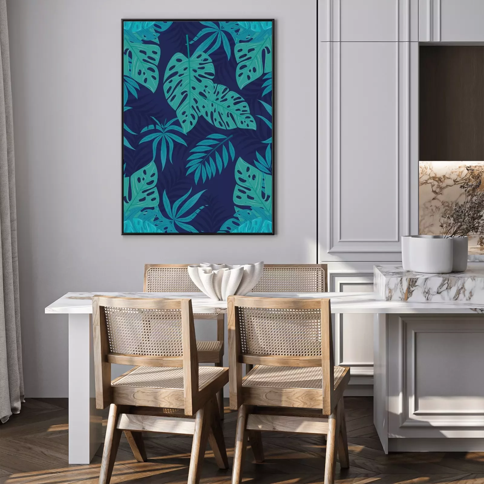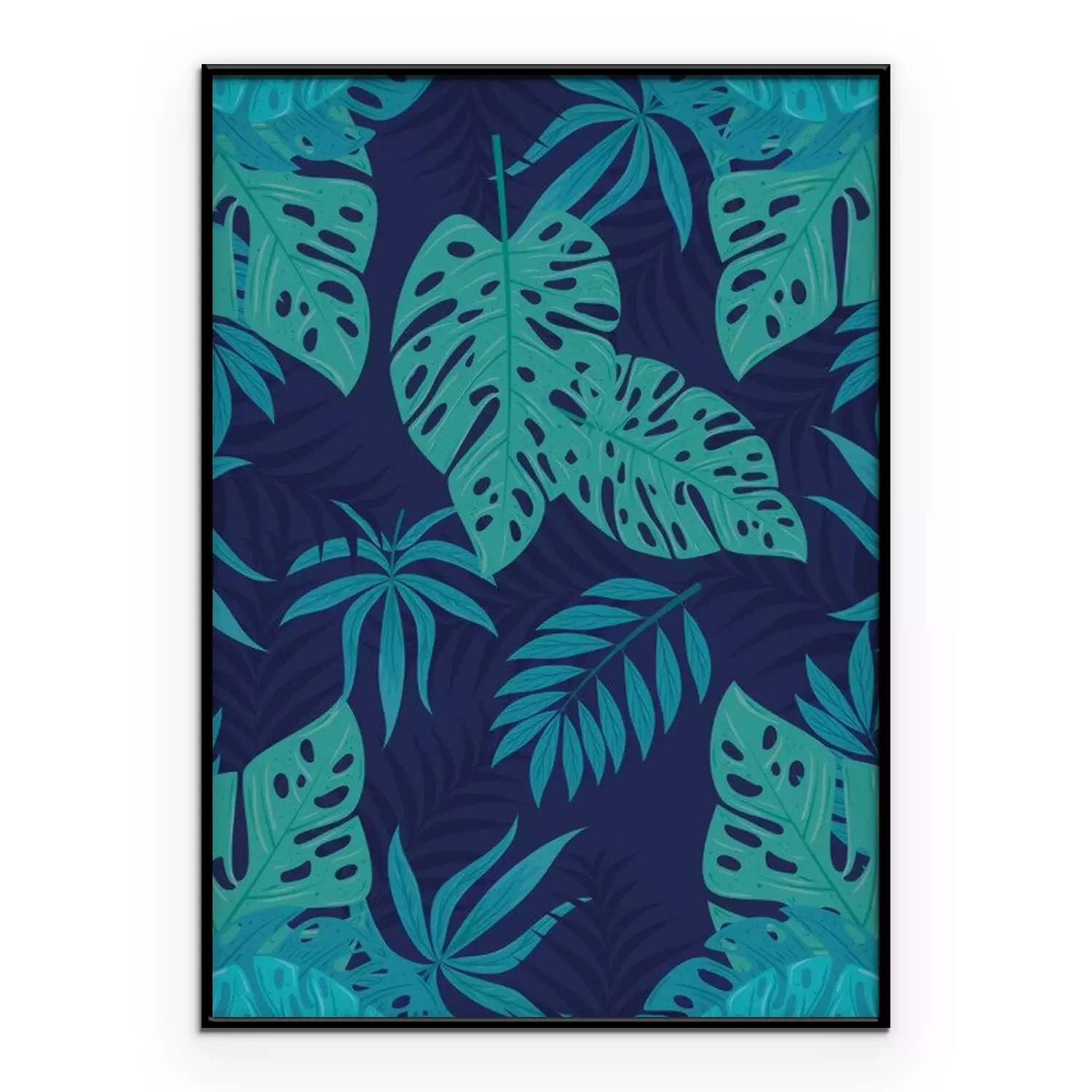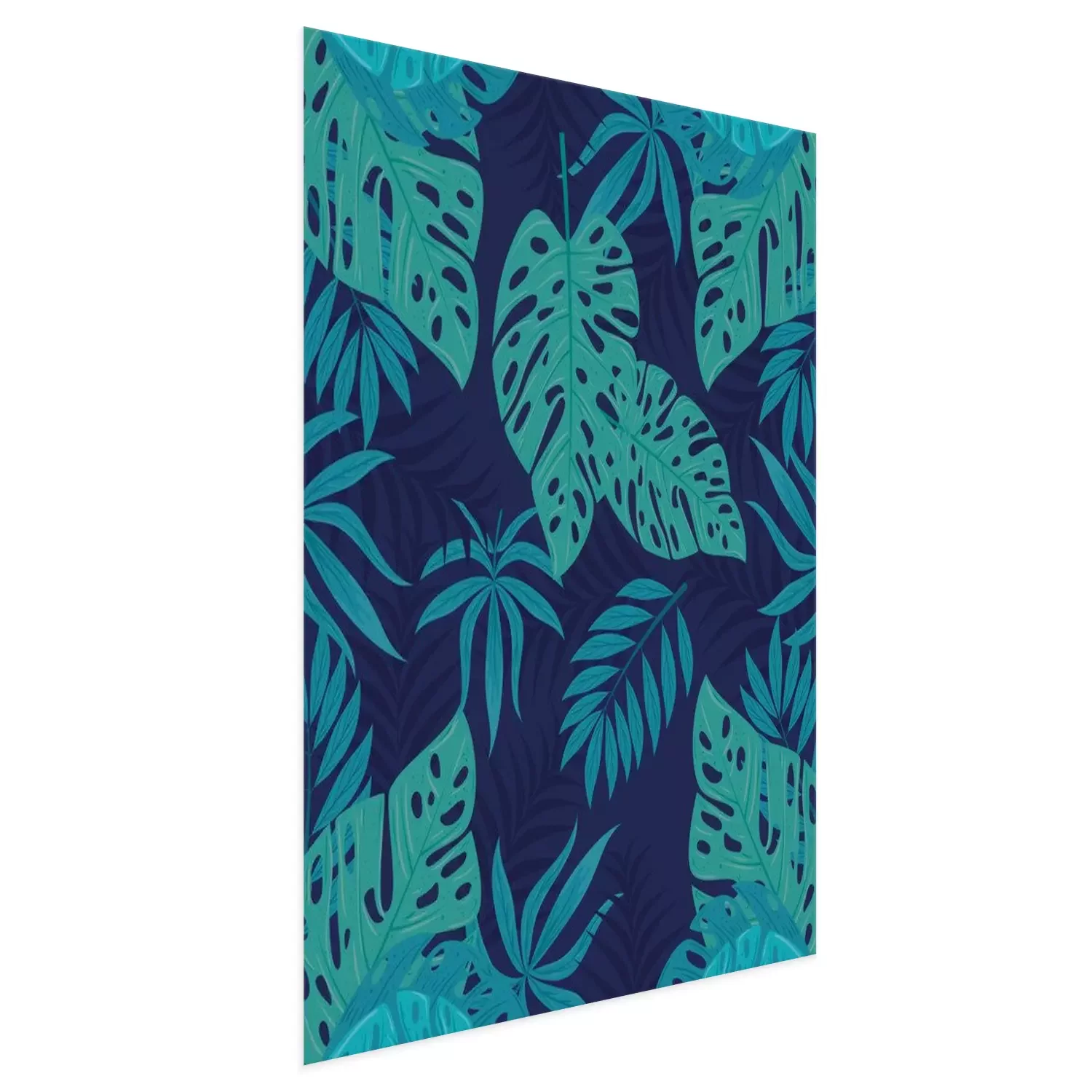Poster: Blaue und grüne Blätter auf dunkelblauem Hintergrund